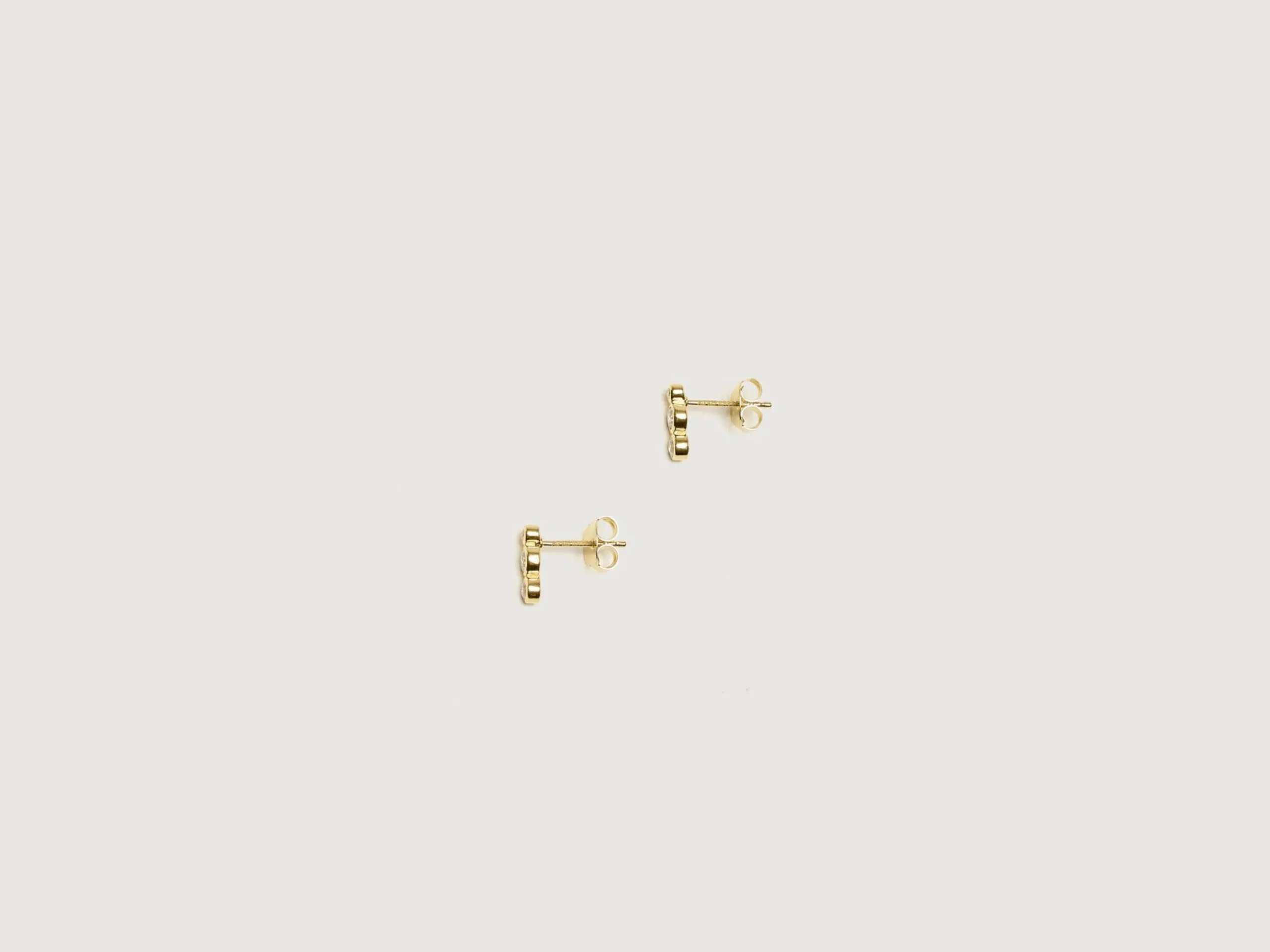 De RAGBAG N°12010 oorknopjes zijn voorzien van witte cubic zirkonia stenen, gezet in 18k verguld zilver.
