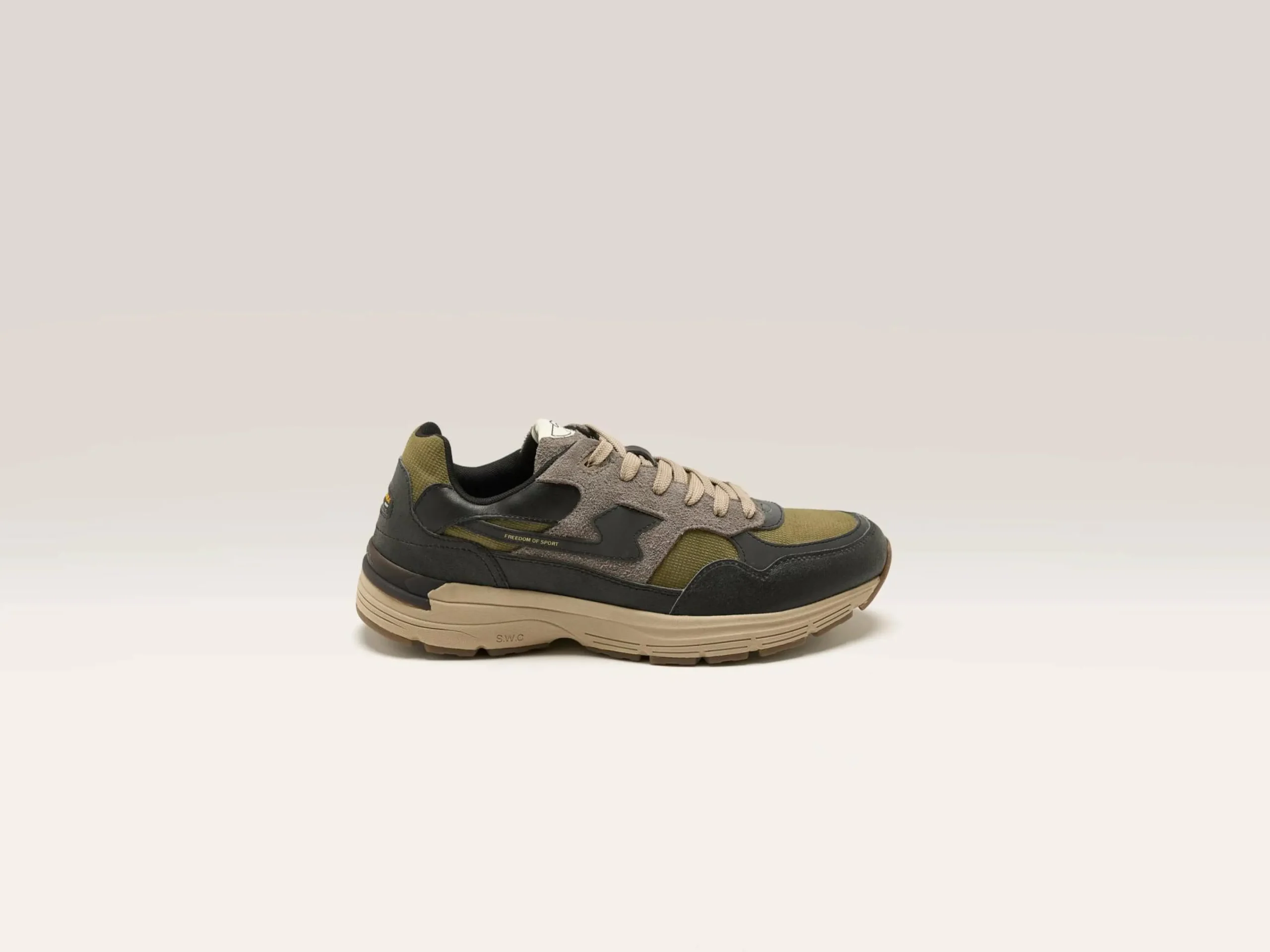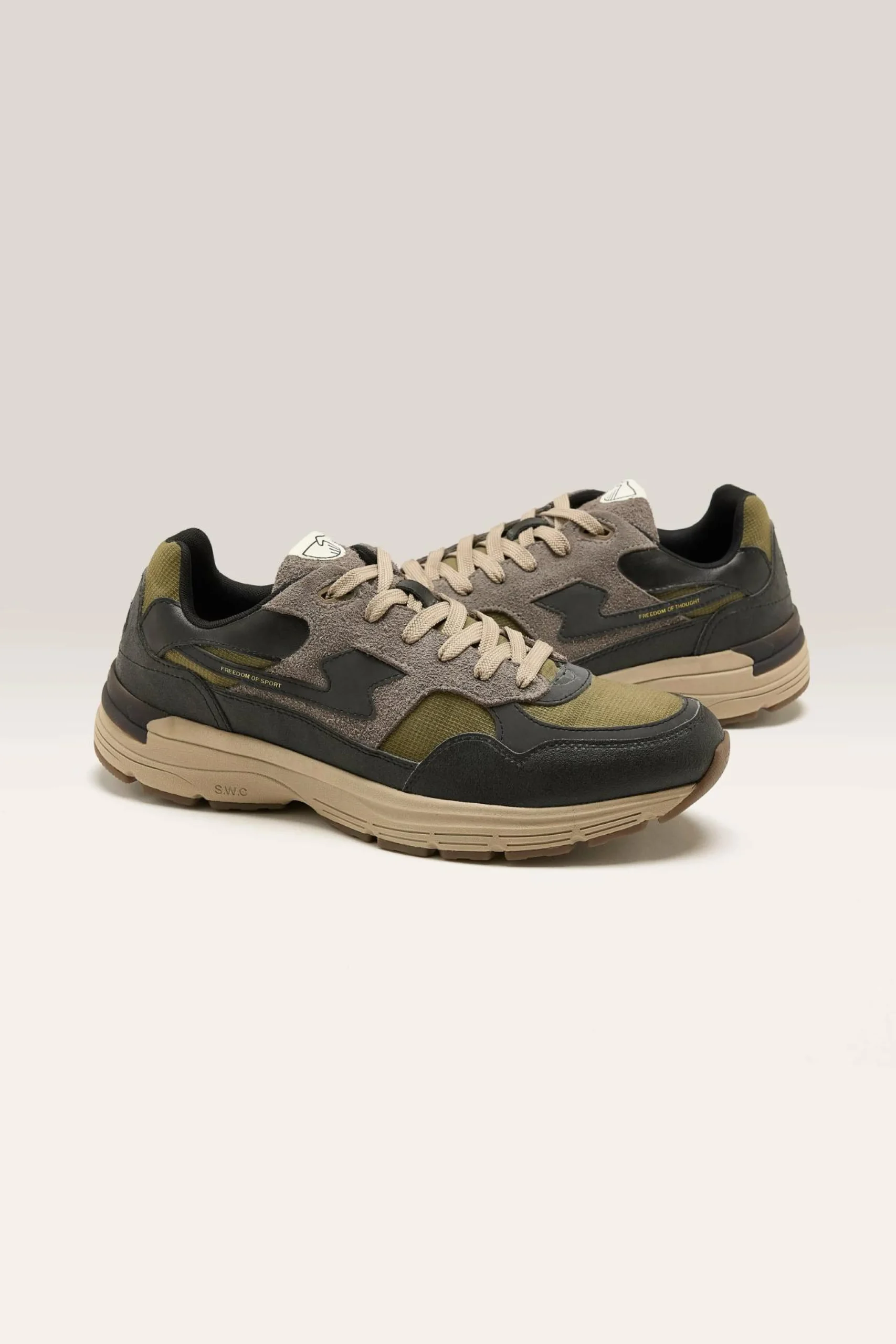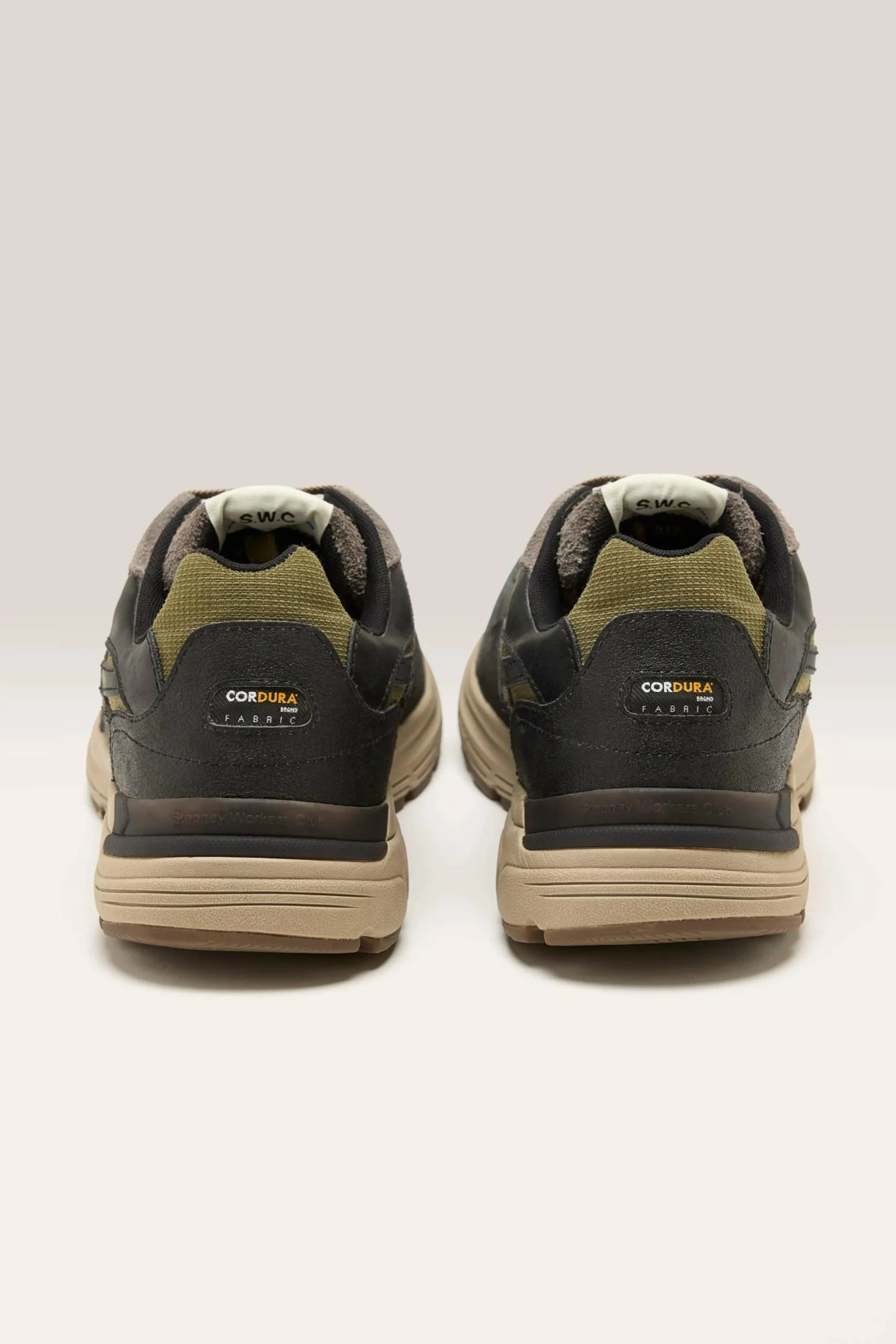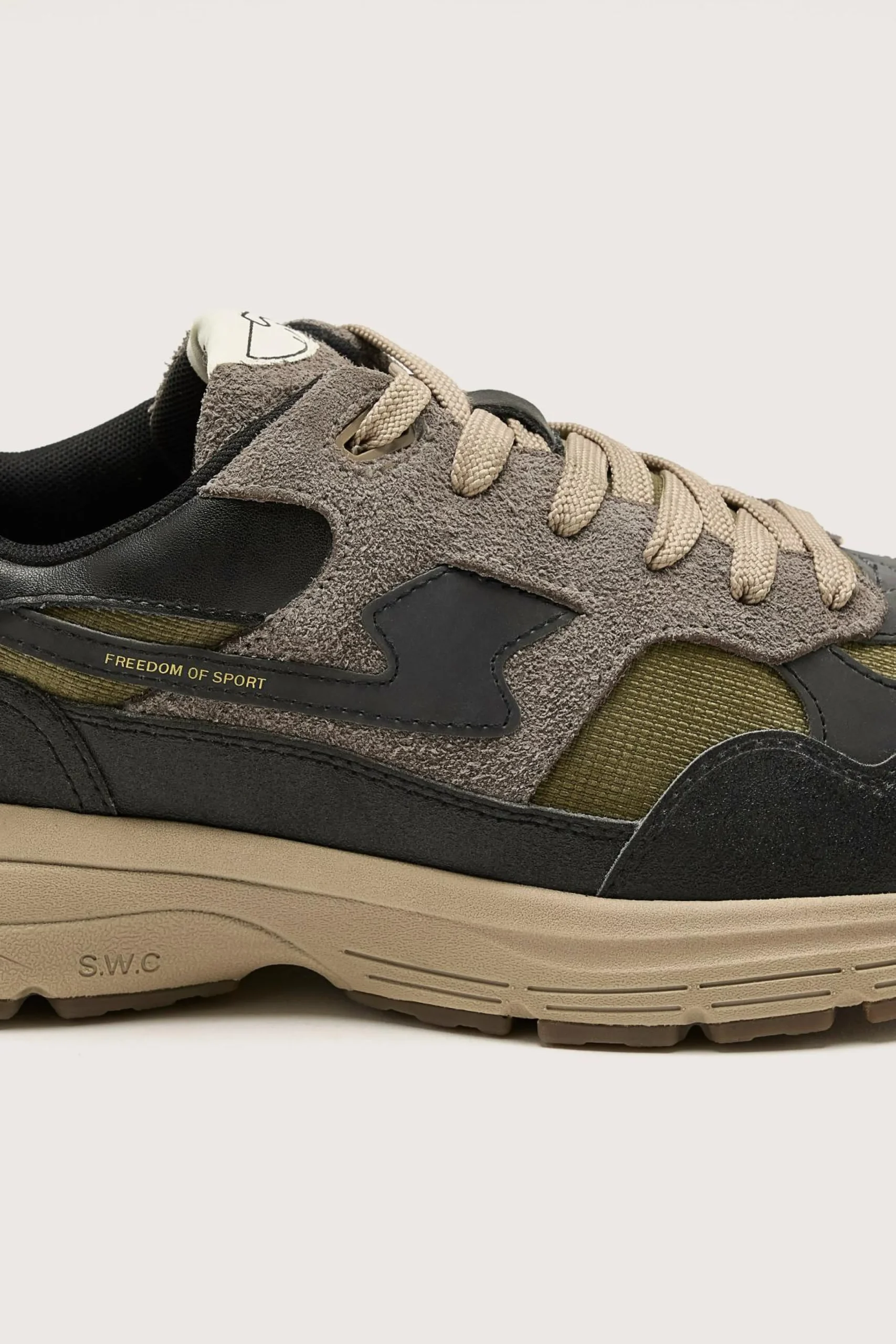 The Stepney Workers Club Amiel S-Strick Geo-Merged water-proof sneaker features a lightweight running silhouette.