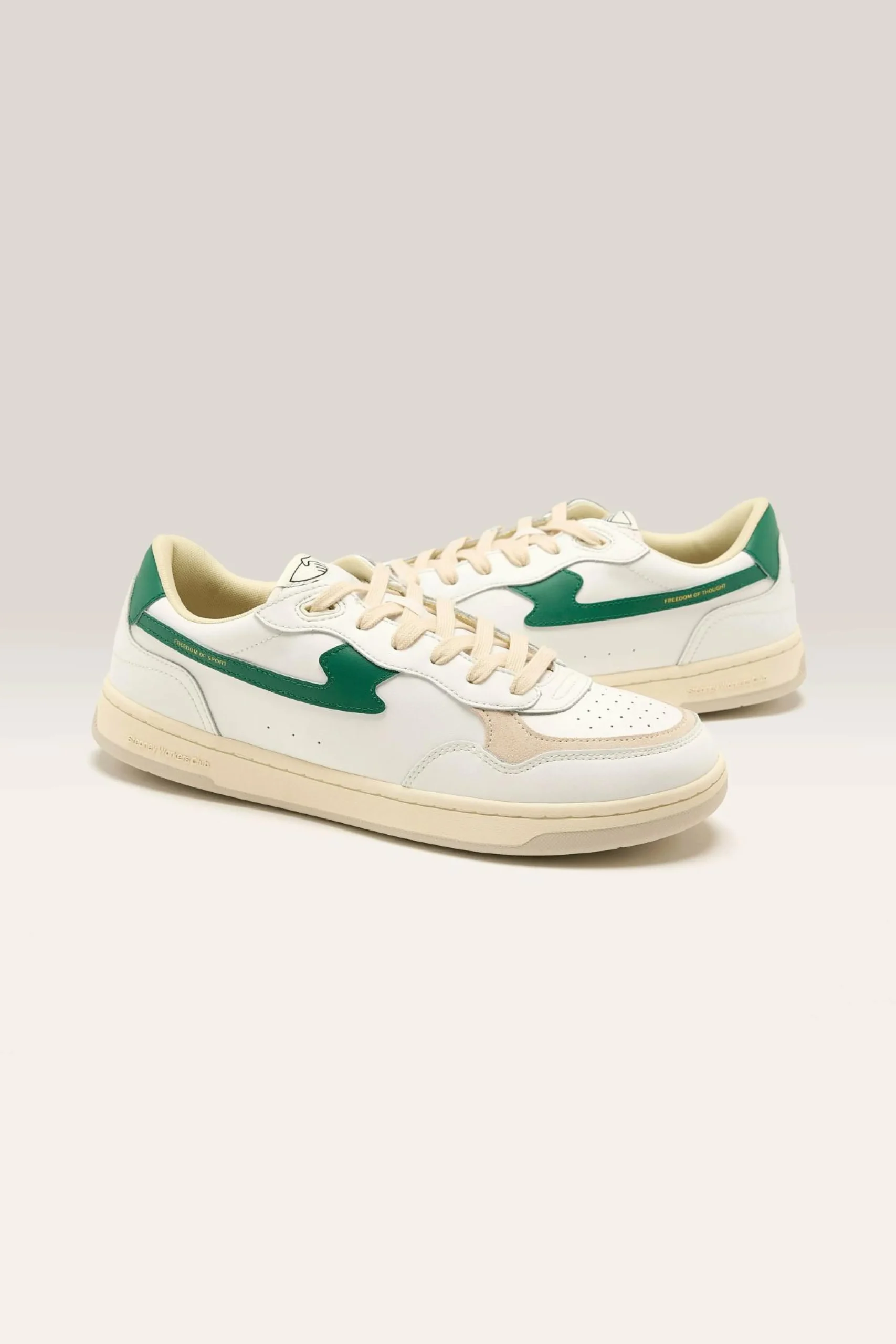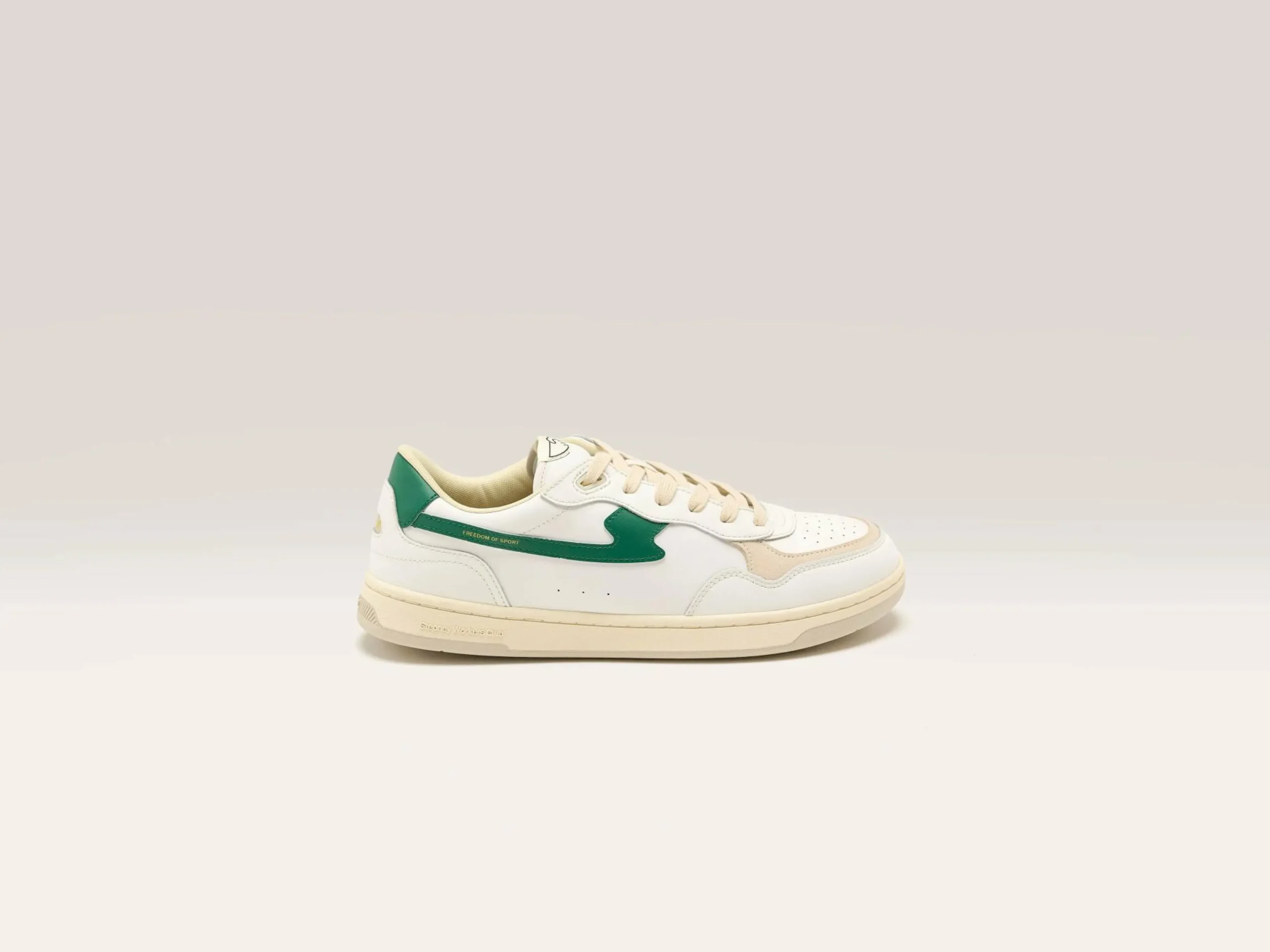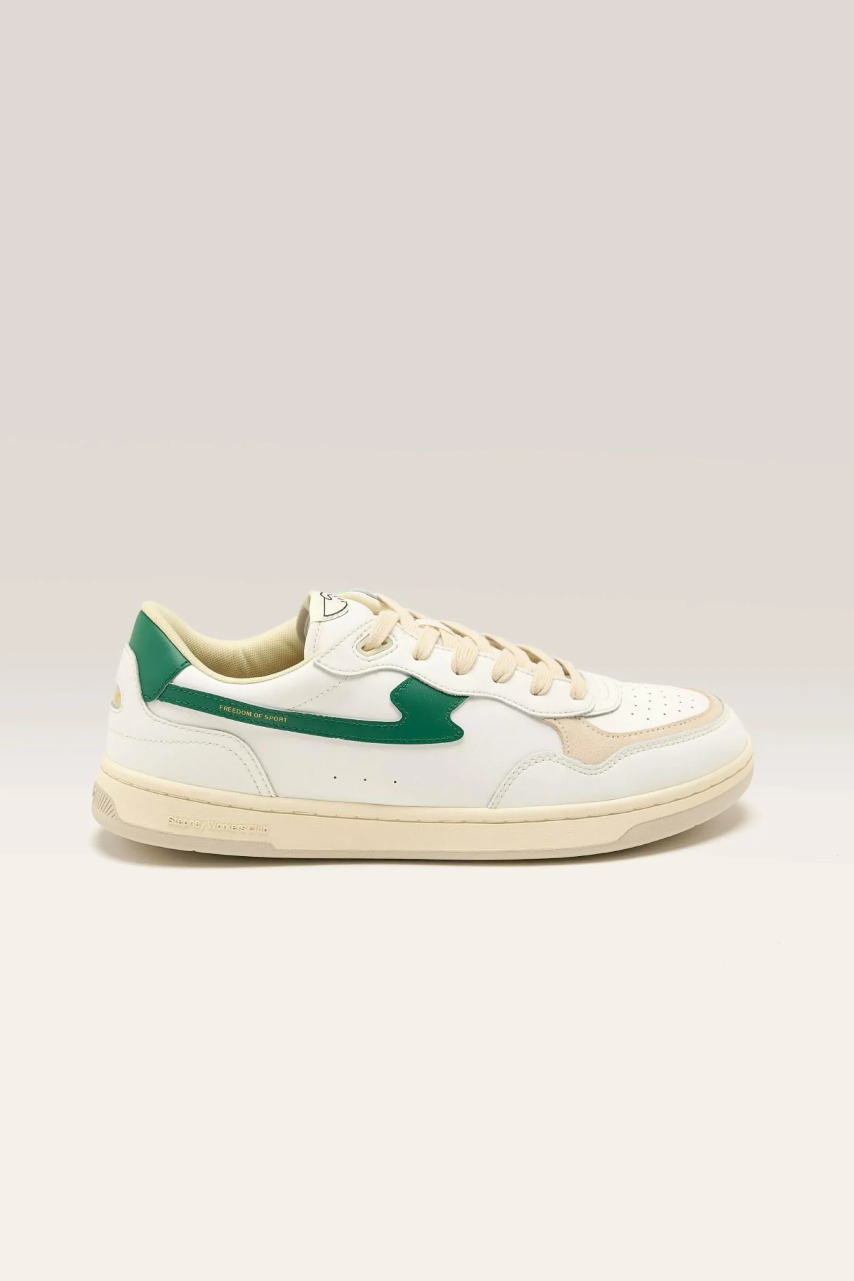 The Stepney Workers Club Pro-Cup 01 everyday sports sneaker features a white leather paneled upper and cupsole construction.