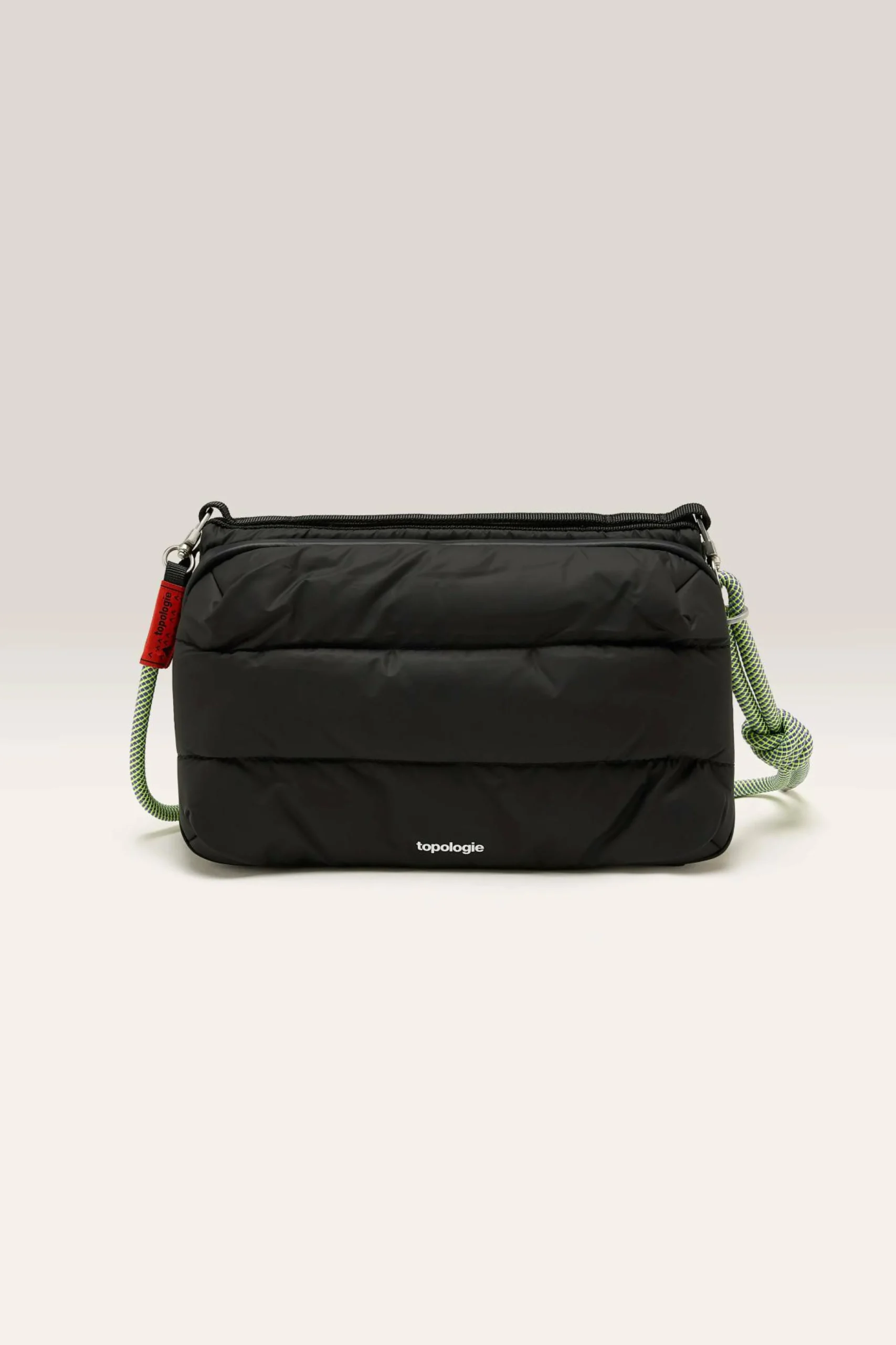 The Topologie Bottle Sacoch in black puffy nylon is a versatile daily sling bag with enhanced storage. Each element is sold separately, allowing you to mix and match bags, phone cases, and straps.