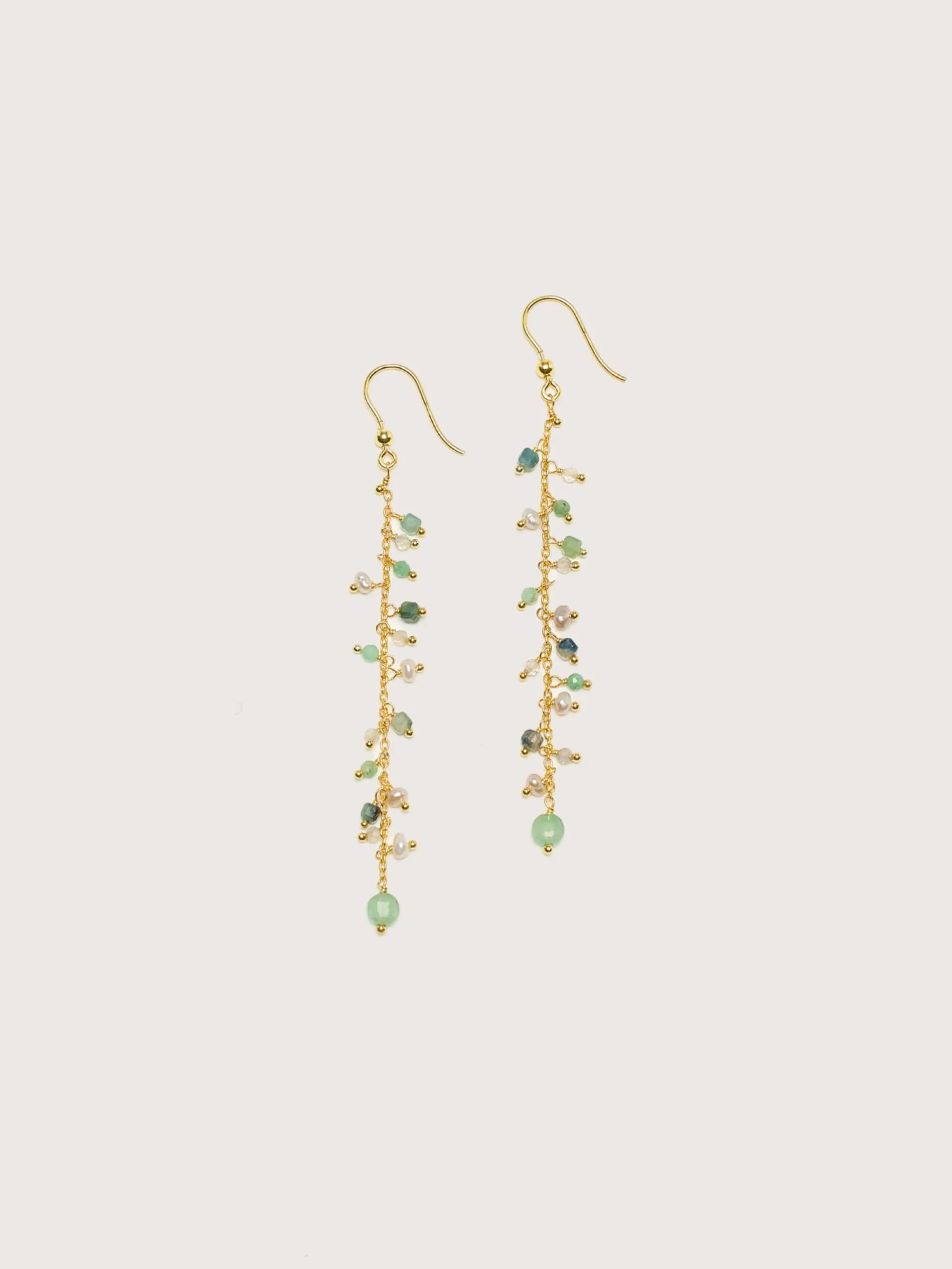 De Untitledition Ribes oorbellen zijn prachtige lange vermeil gouden kettingen met zoetwaterparels en edelstenen.