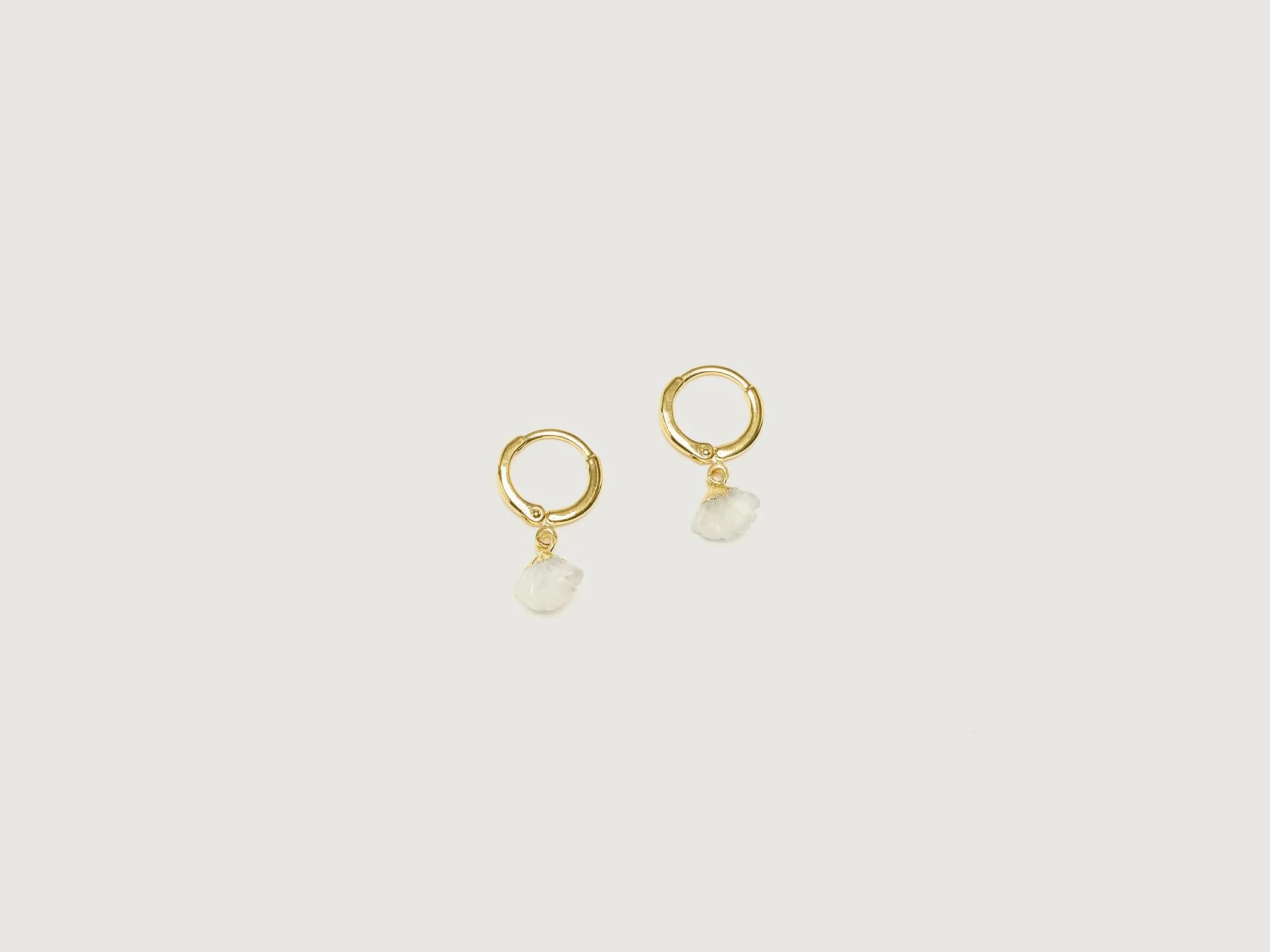 The Vadi Jewels Daya Hoop earrings are gold-plated small hoops with shell-shaped mother of pearl charms.