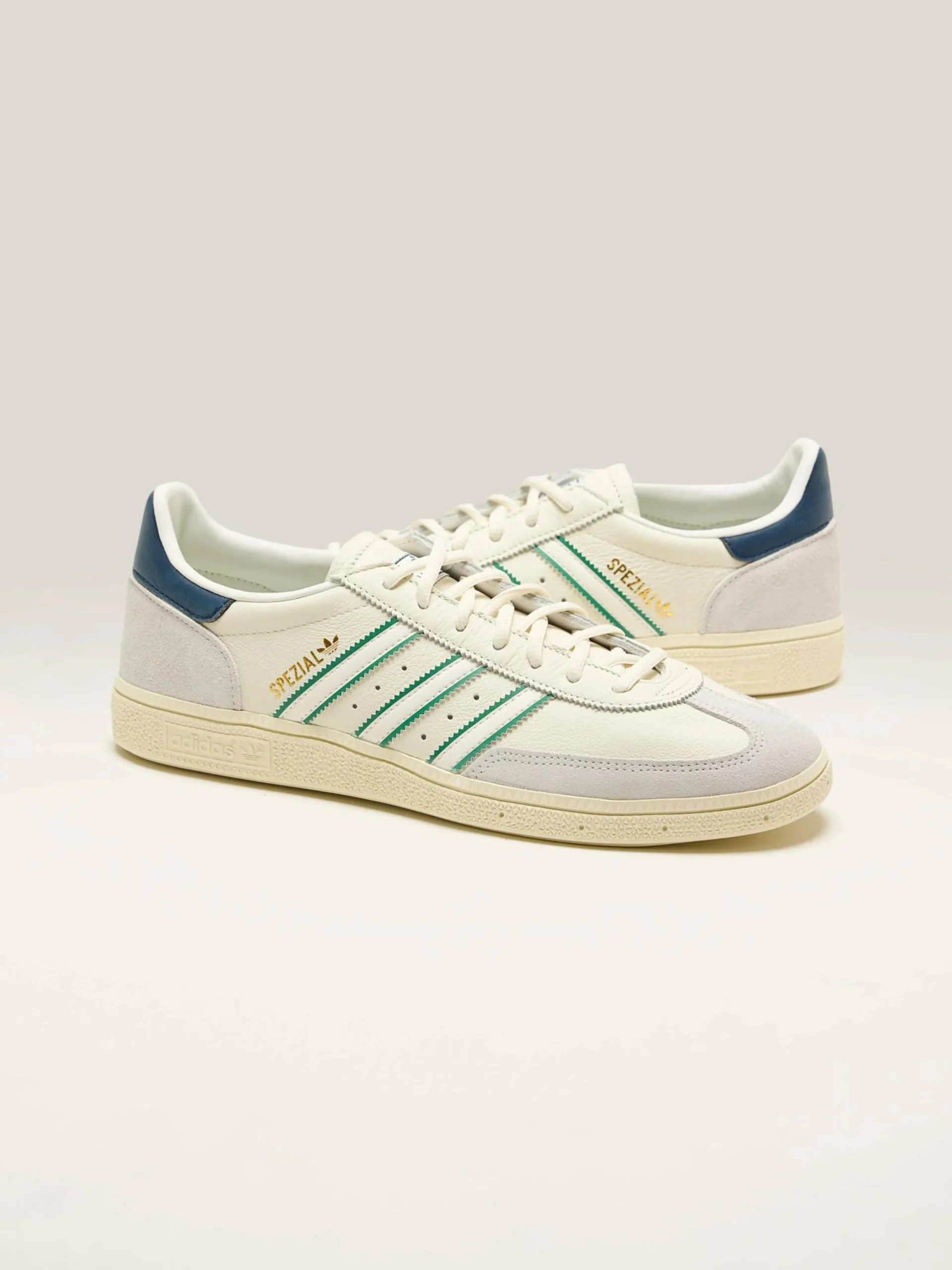 De low-profile Adidas Handball Spezial sneakers hebben een premium suède bovenwerk, opvallende details en een T-neus.
