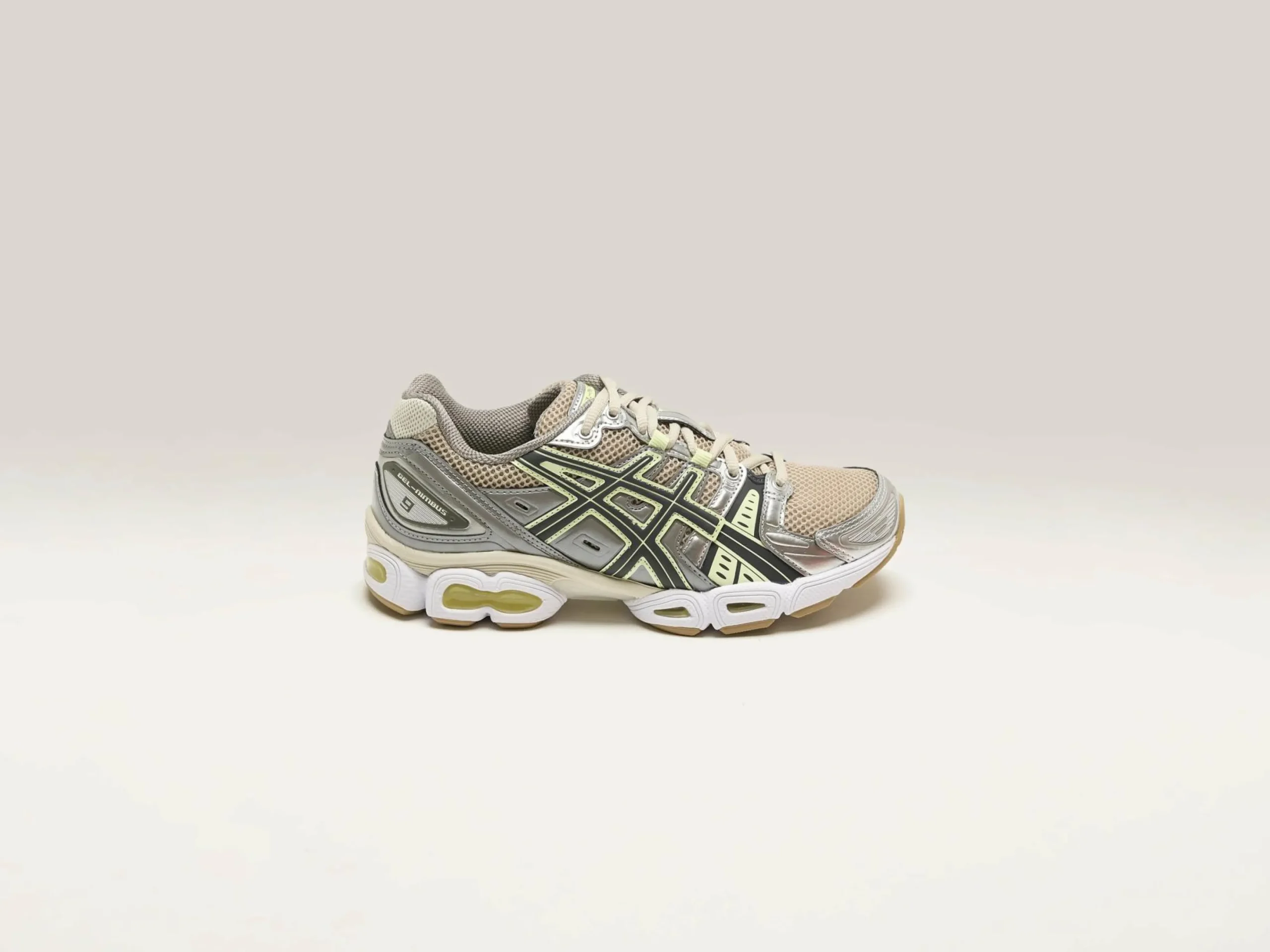 De Asics Gel-Nimbus 9 sneakers hebben een industrieel Y2K-silhouet met GEL-inzetstukken voor een zachte en stabiele pas.