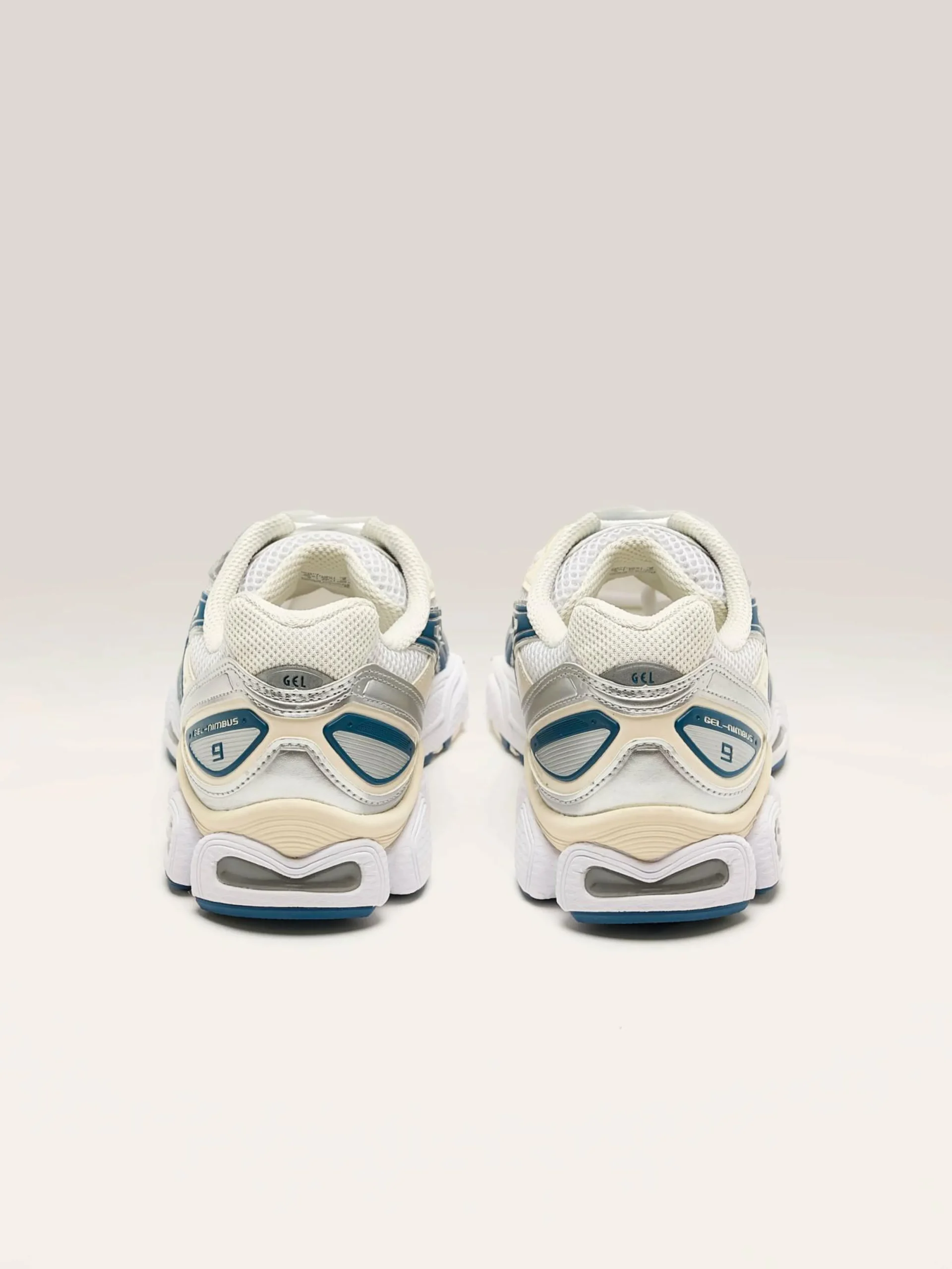 De Asics Gel-Nimbus 9 sneakers hebben een industrieel Y2K-silhouet met GEL-inzetstukken voor een zachte en stabiele pas.