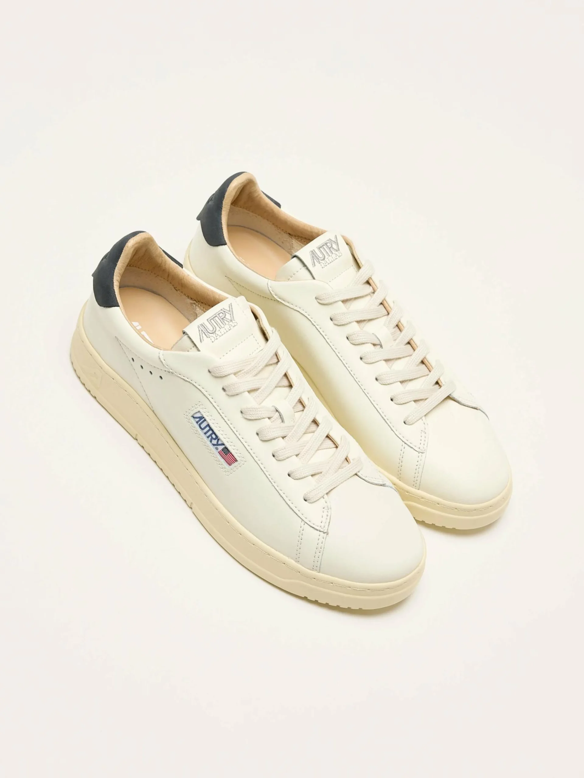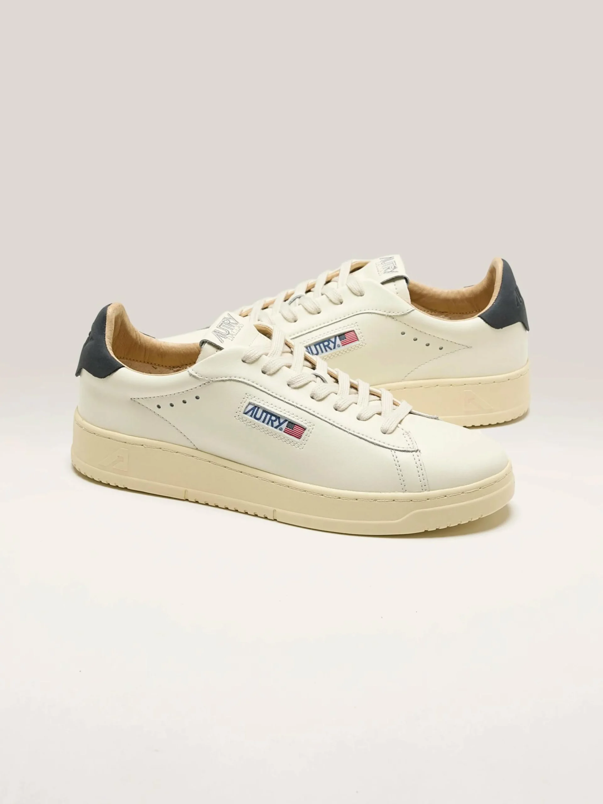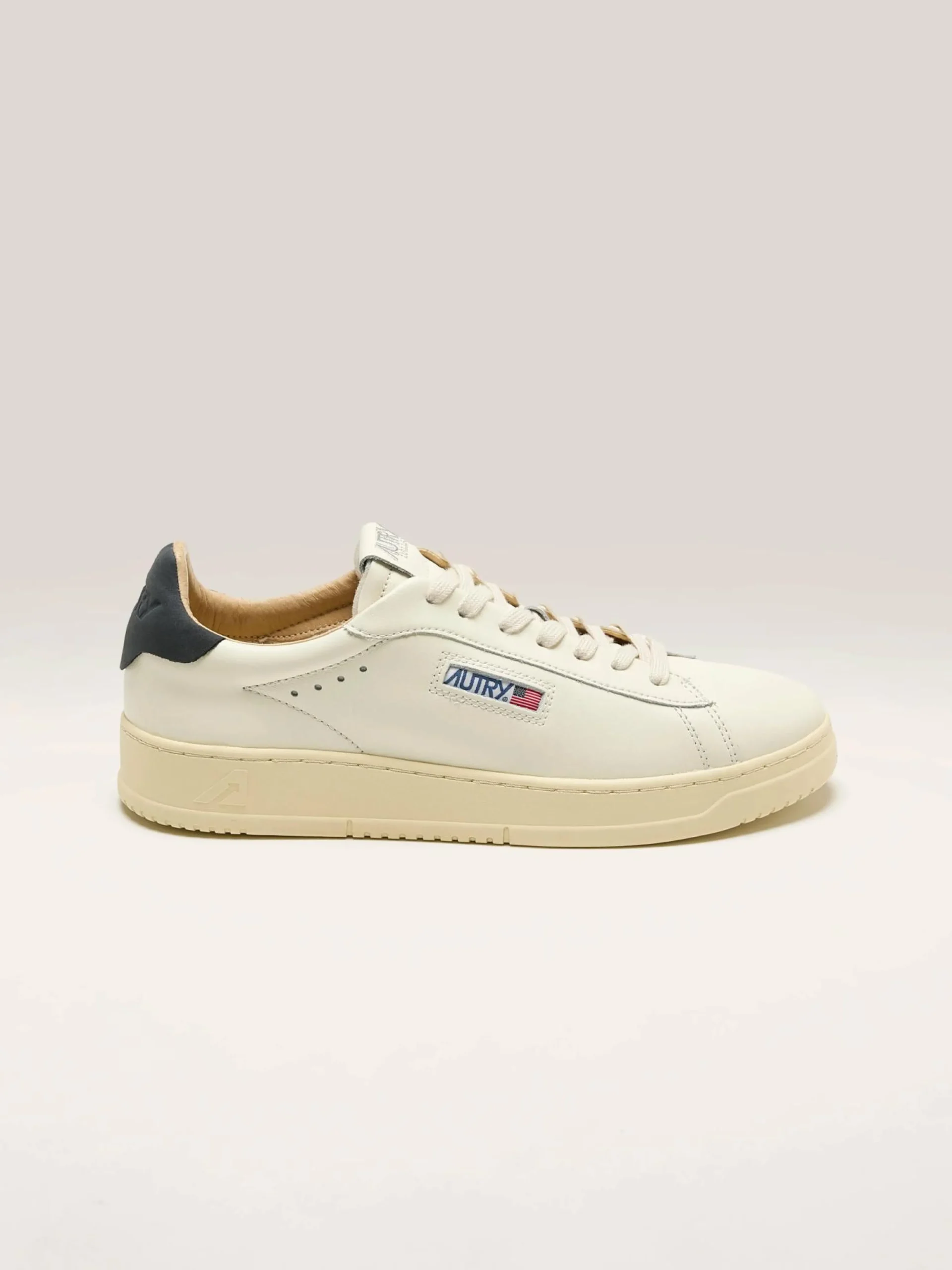 De Autry Dallas Low sneakers hebben een laag, compact profiel gemaakt van wit en blauw zacht nubuckleder.