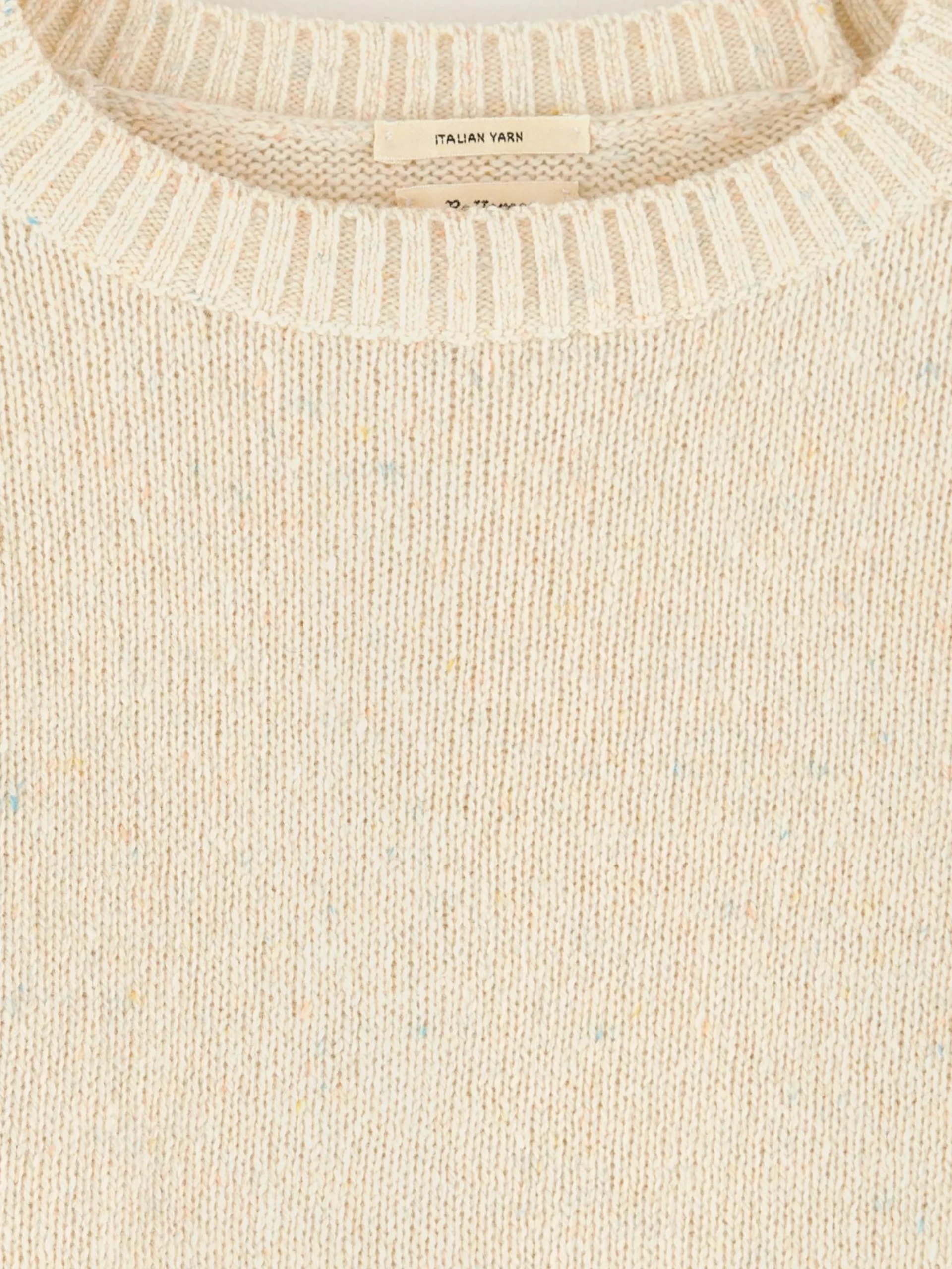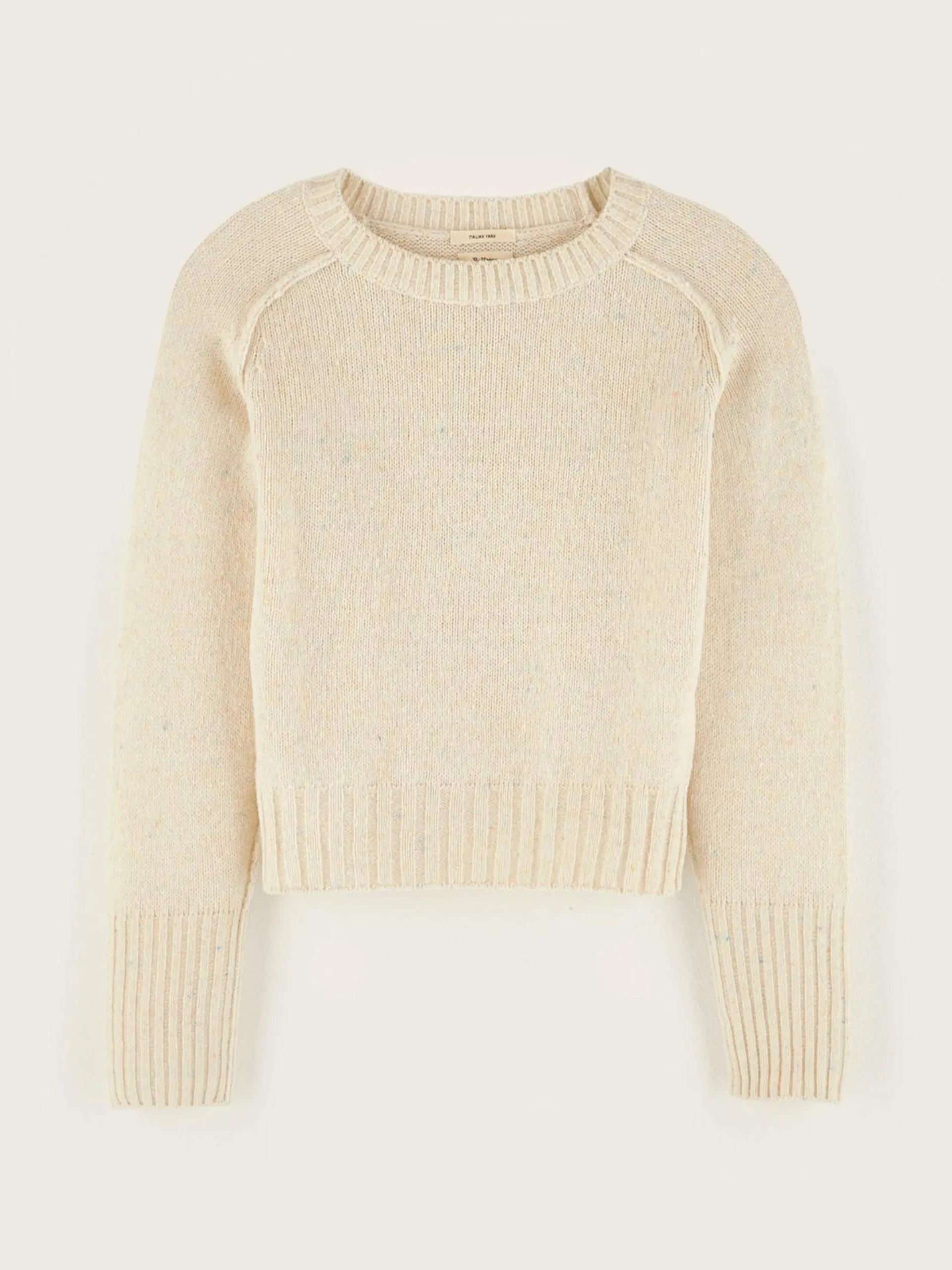 Beige, klassieke, aansluitende trui.