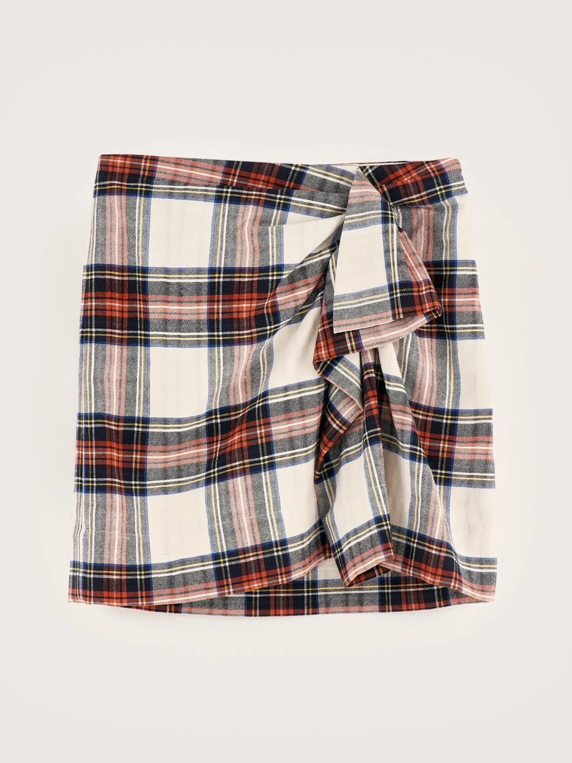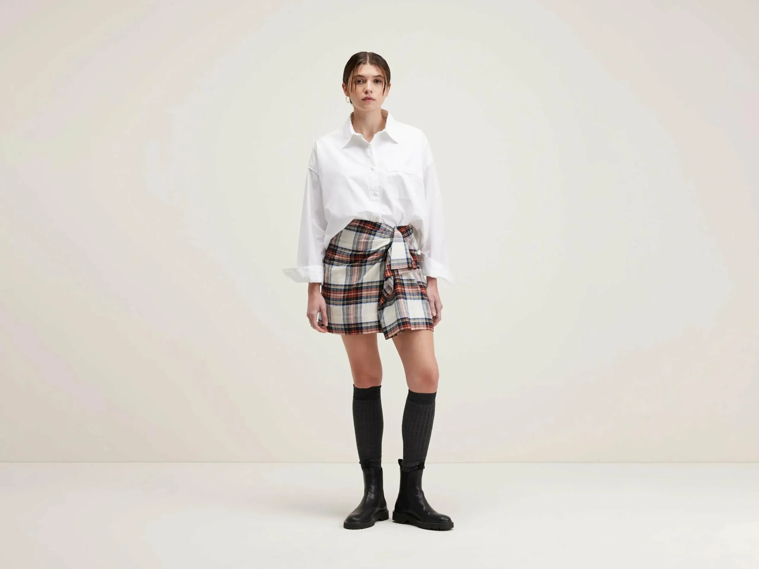 Minirok met gedrapeerd effect en knoop vooraan, van geruit katoen.
