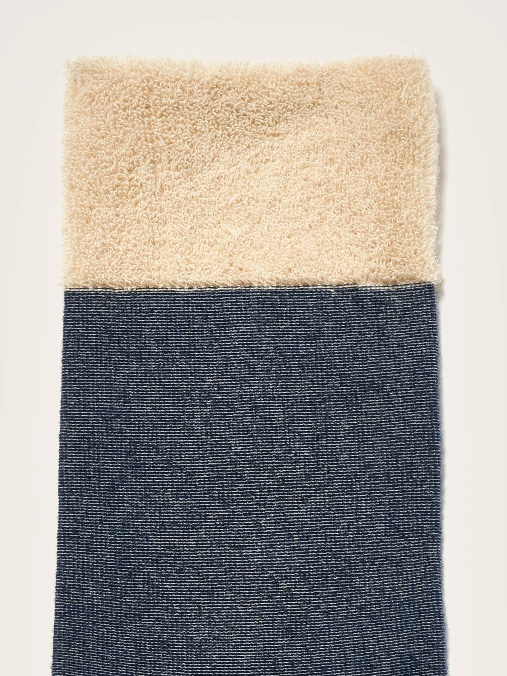 Klassieke, donkerblauwe sokken met Bellerose-signatuur van badstof op de voetzool.