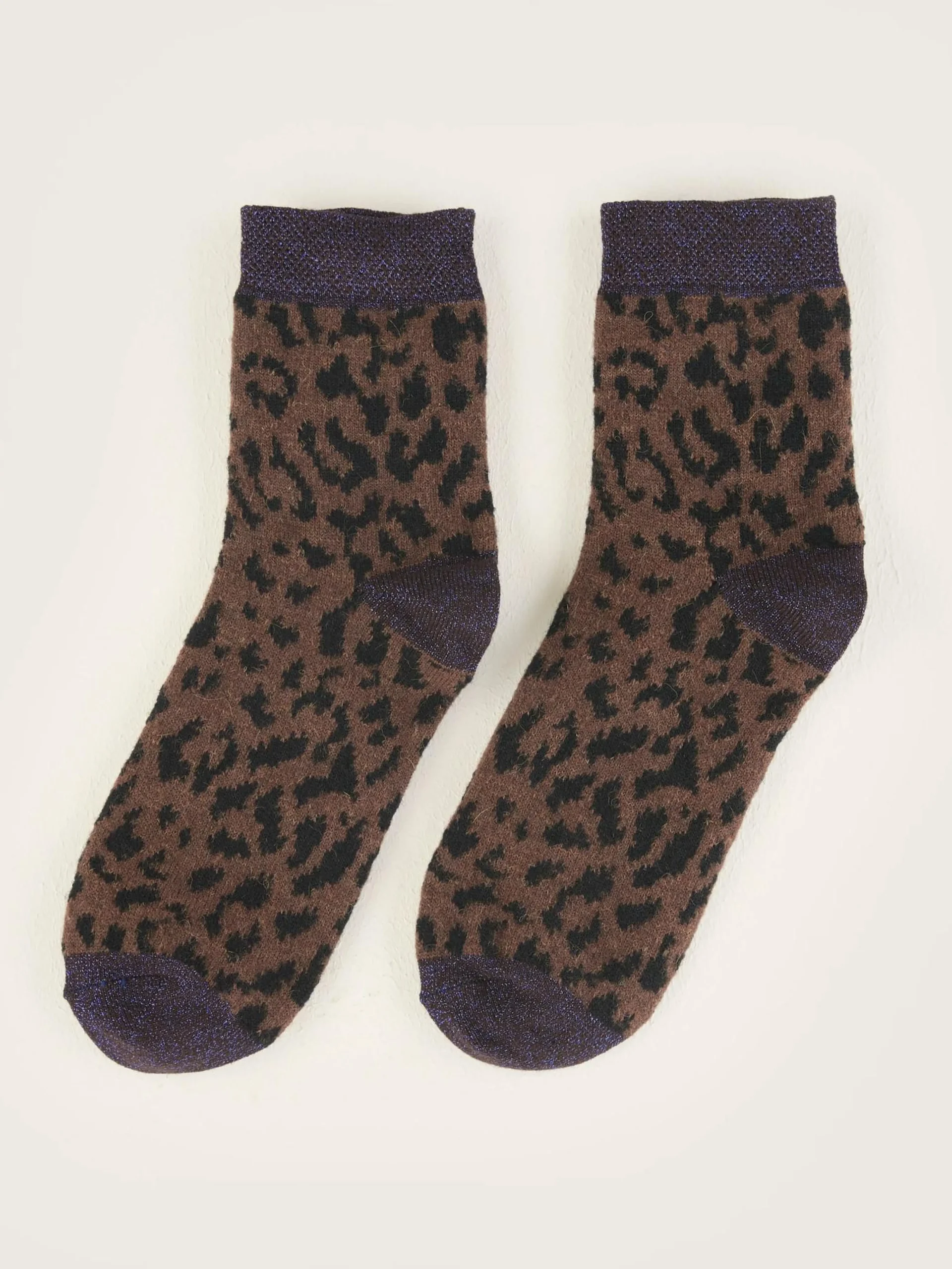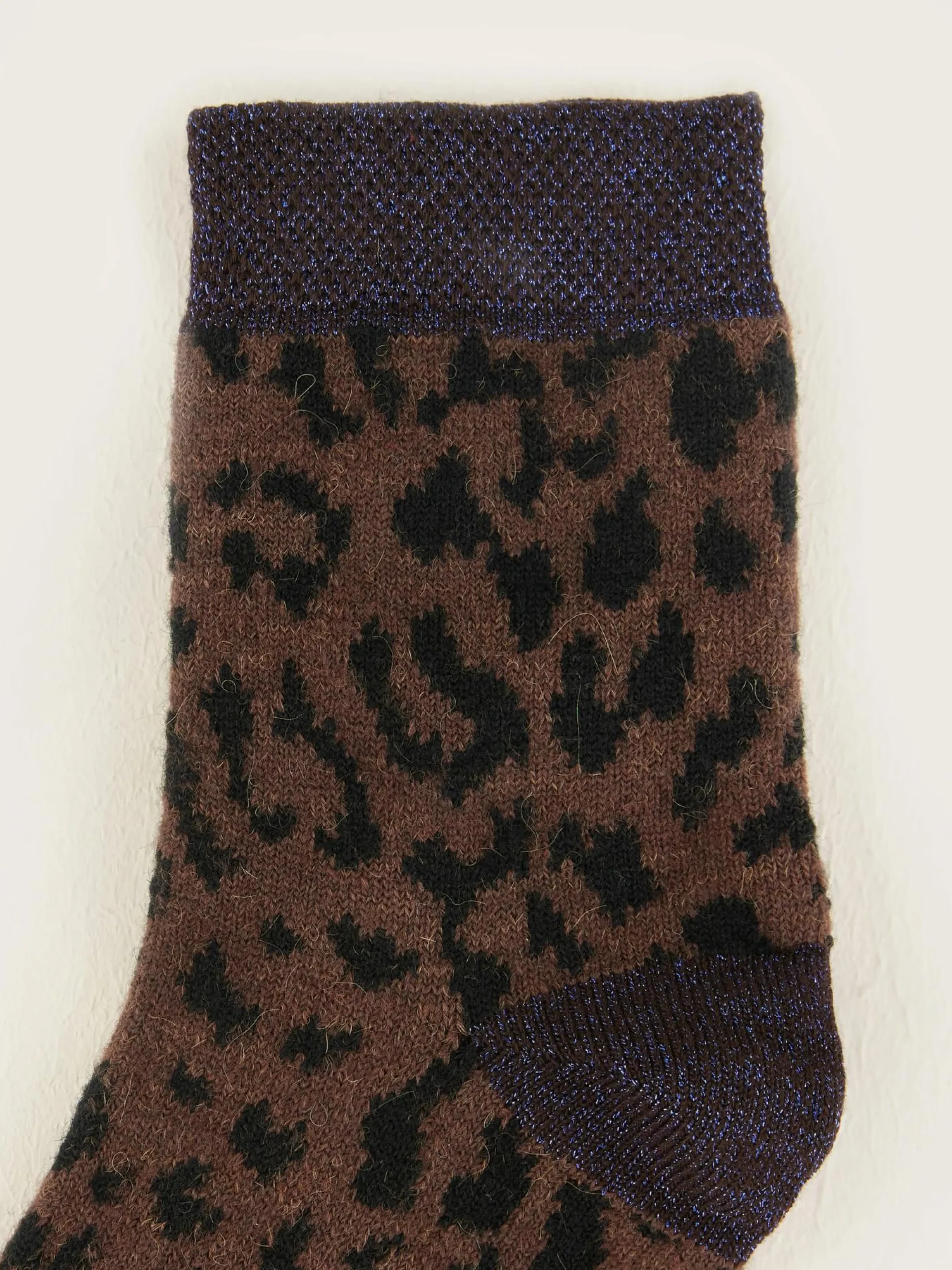 Klassieke sportsokken met luipaardprint en een lichte glans rond de bovenrand, tenen en hiel.