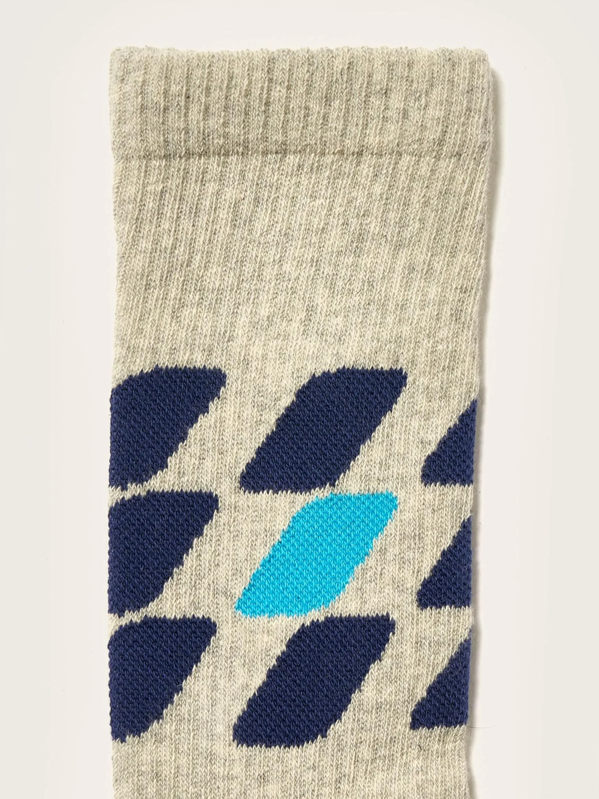 Klassieke halfhoge sokken met heidegrijze, schuine streepdetails rond de enkel.