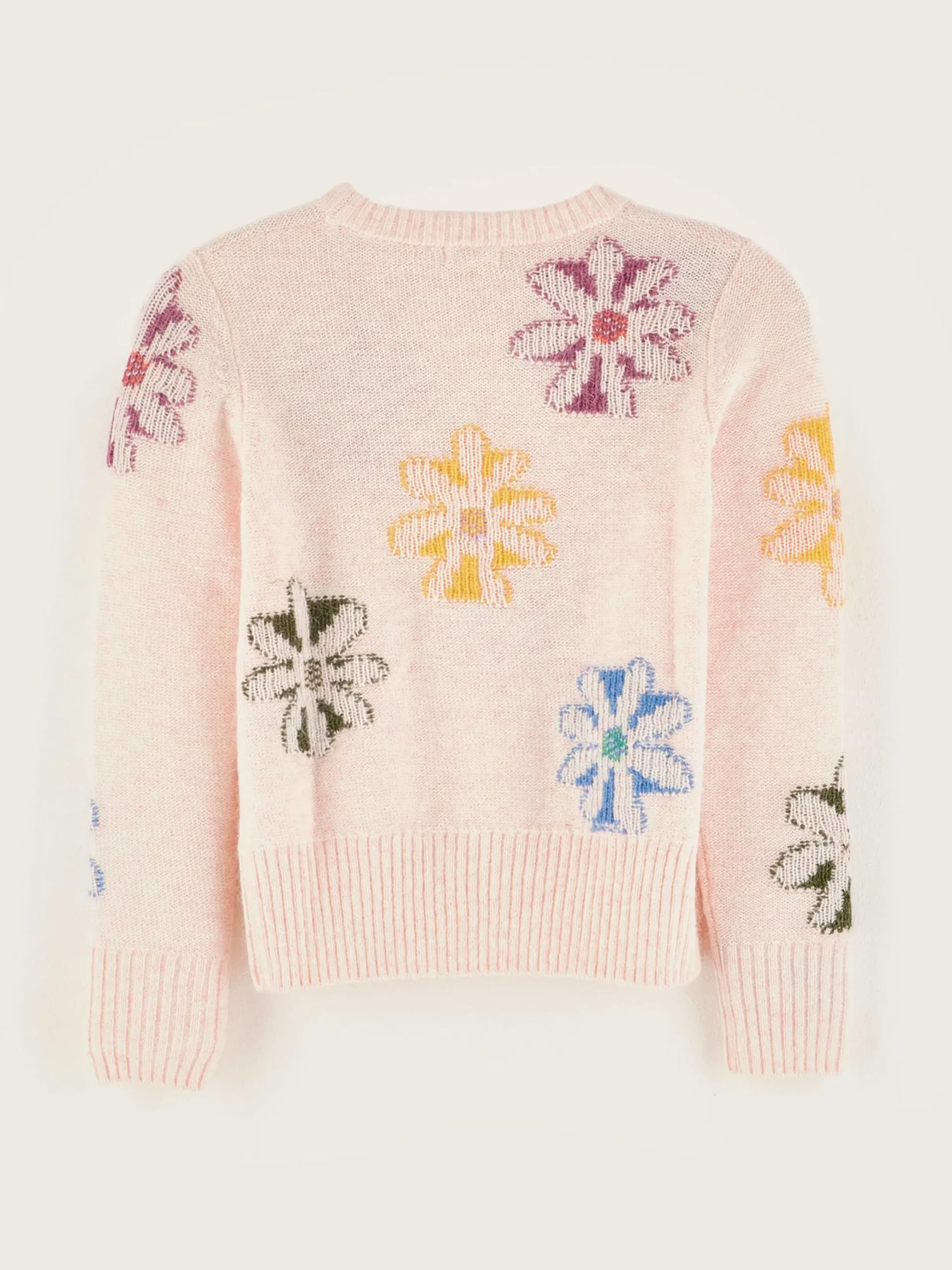Klassieke trui met ronde hals, van dubbele jacquard en met bloemenmotief.