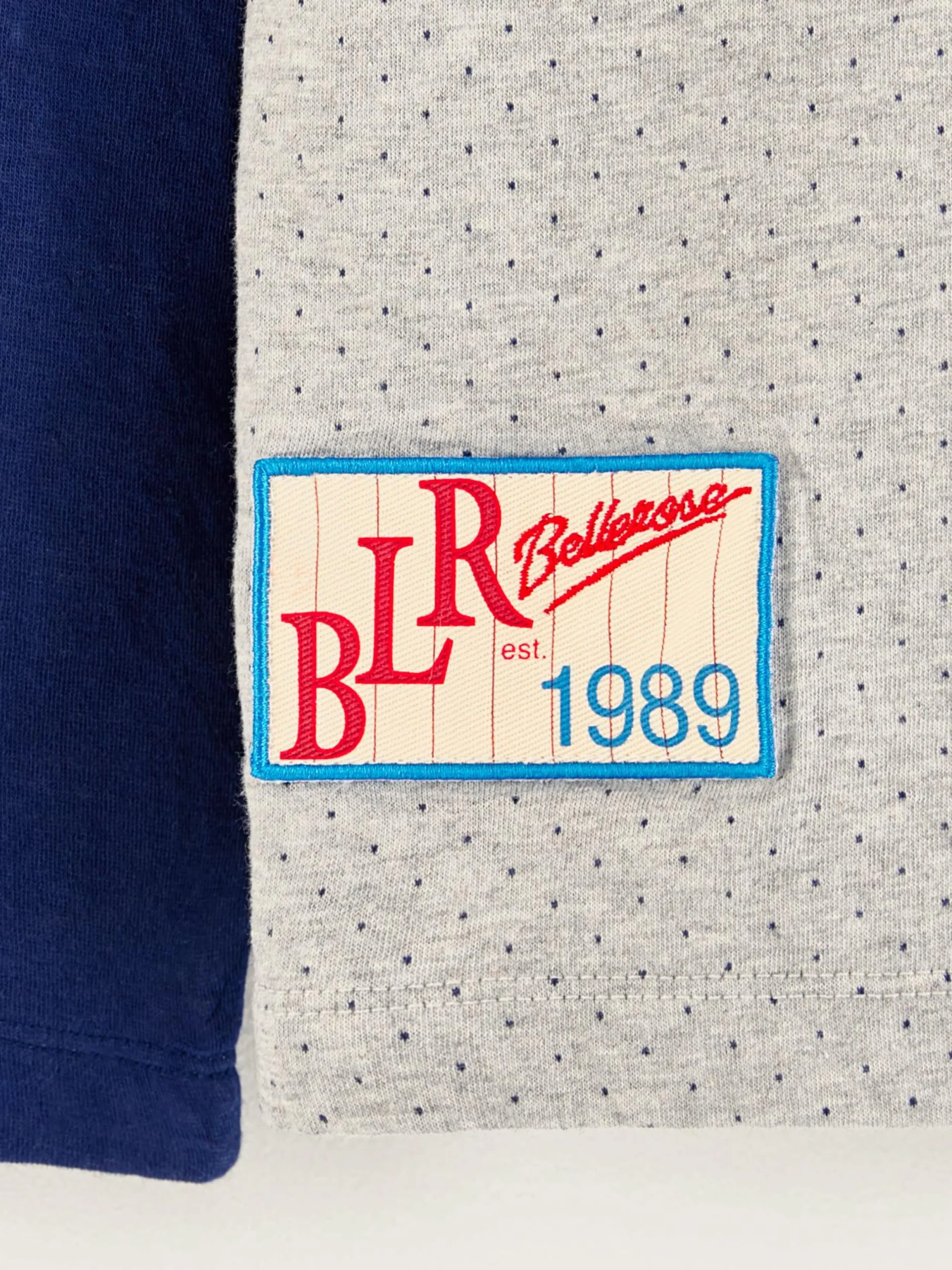 Recht T-shirt met raglanmouwen van tweezijdig heidegrijs kartoenjersey, met “Rhythm” print op de voorkant.