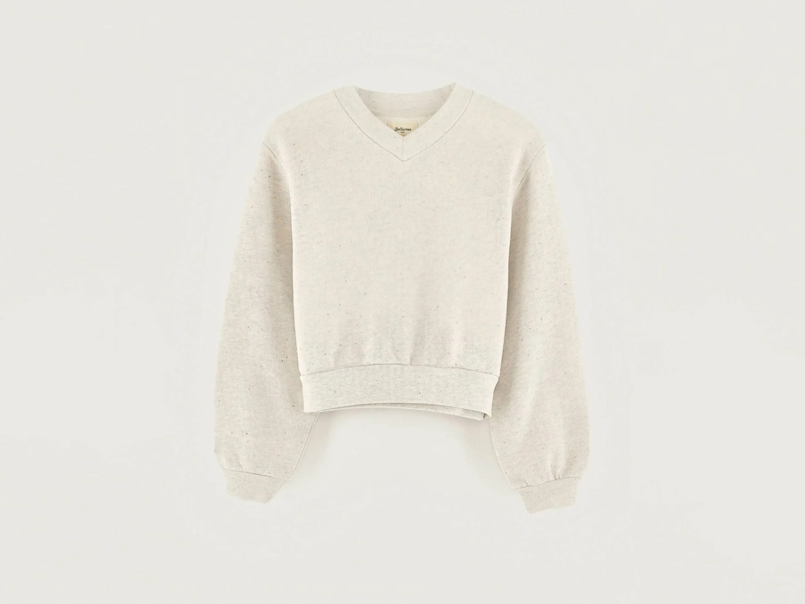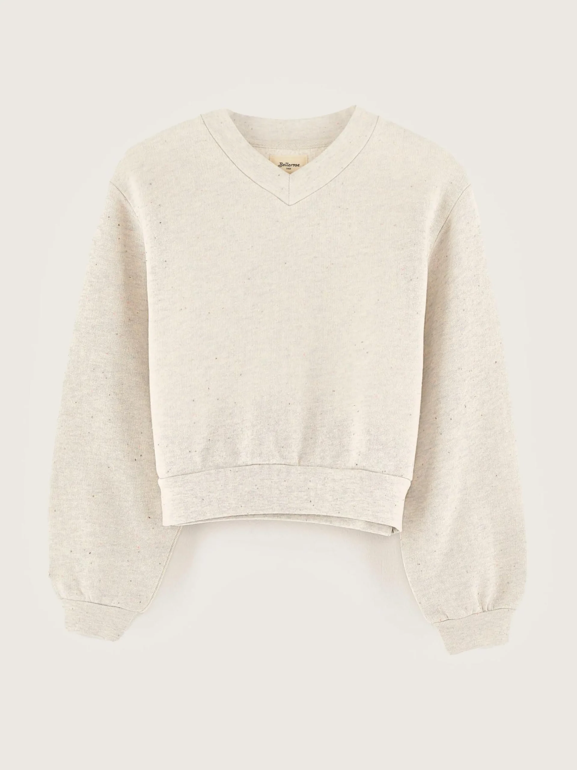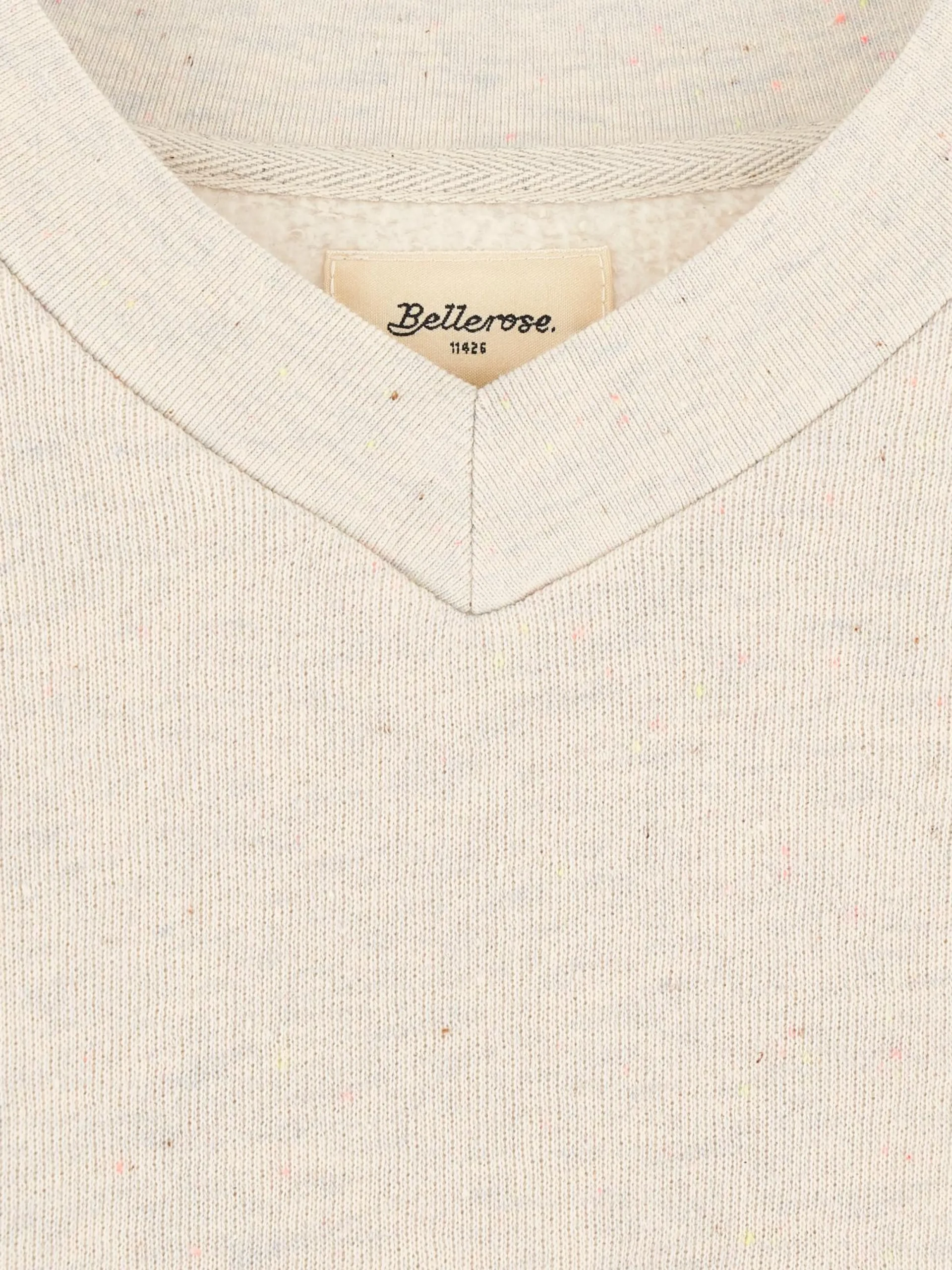 Heidegrijs, comfortabel sweatshirt met V-hals, van lichte fleecestof en met veelkleurige spikkels.