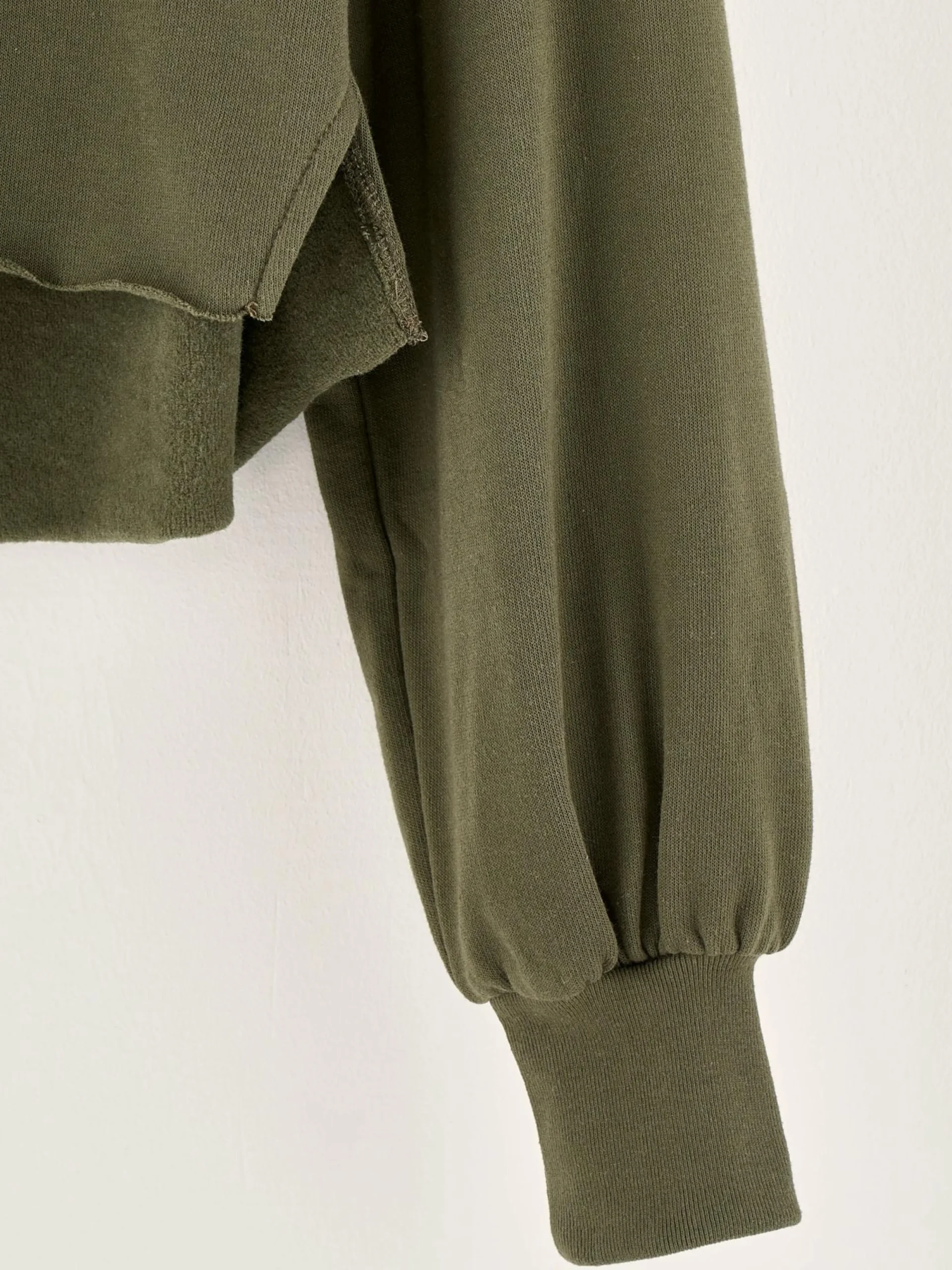 Losse, mosgroene cropped hoodie van sponsfleece.