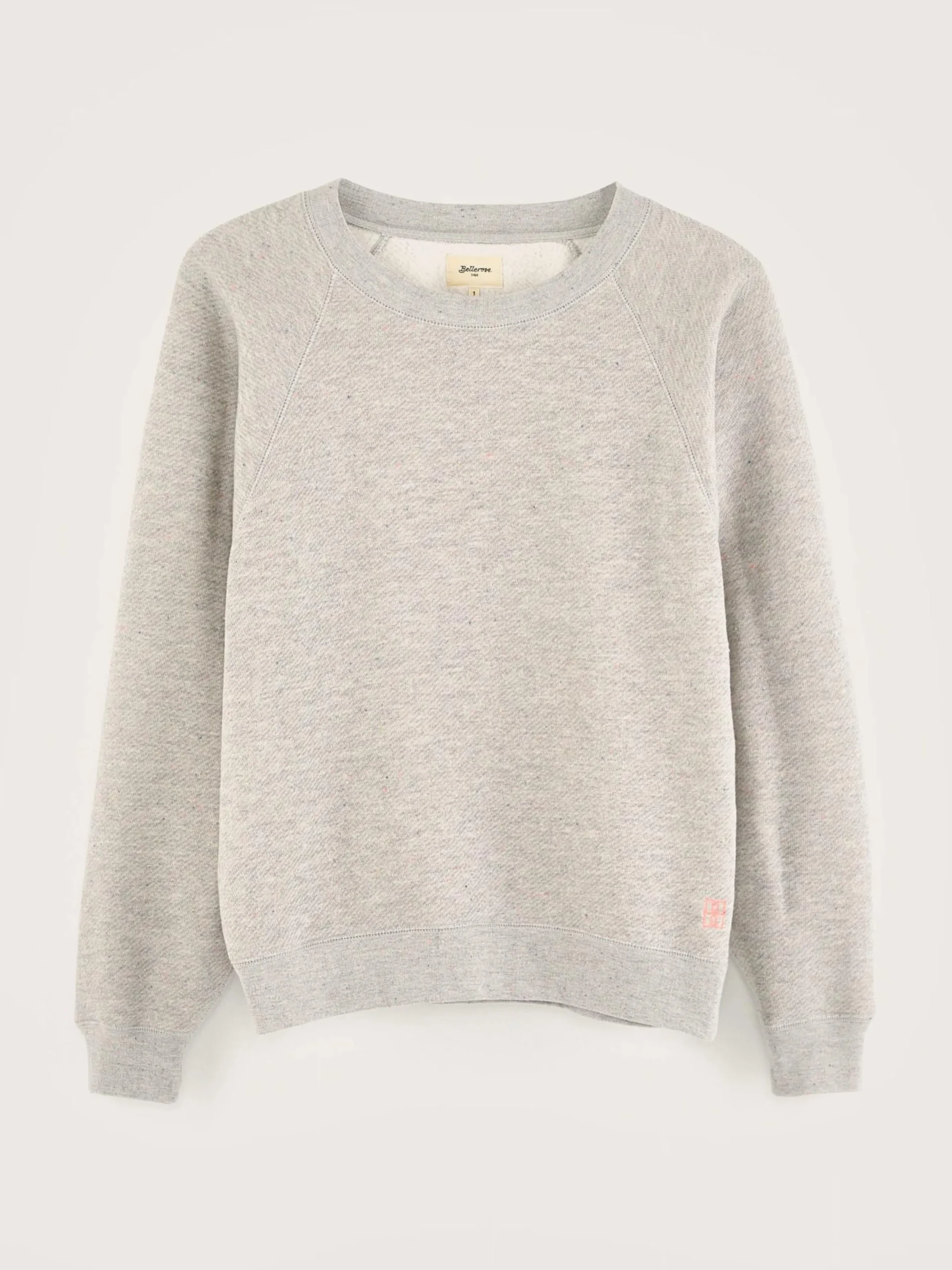 Relaxed sweatshirt van lichtgrijze fleecestof met kleurige spikkels, met raglanmouwen.