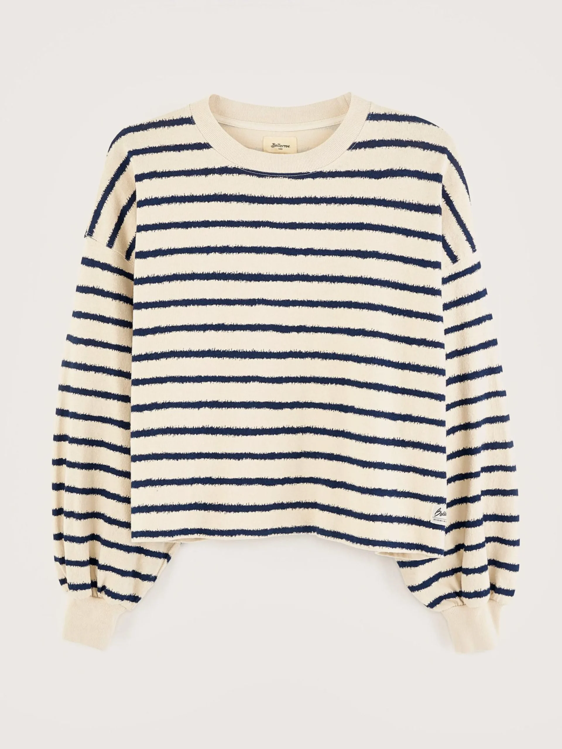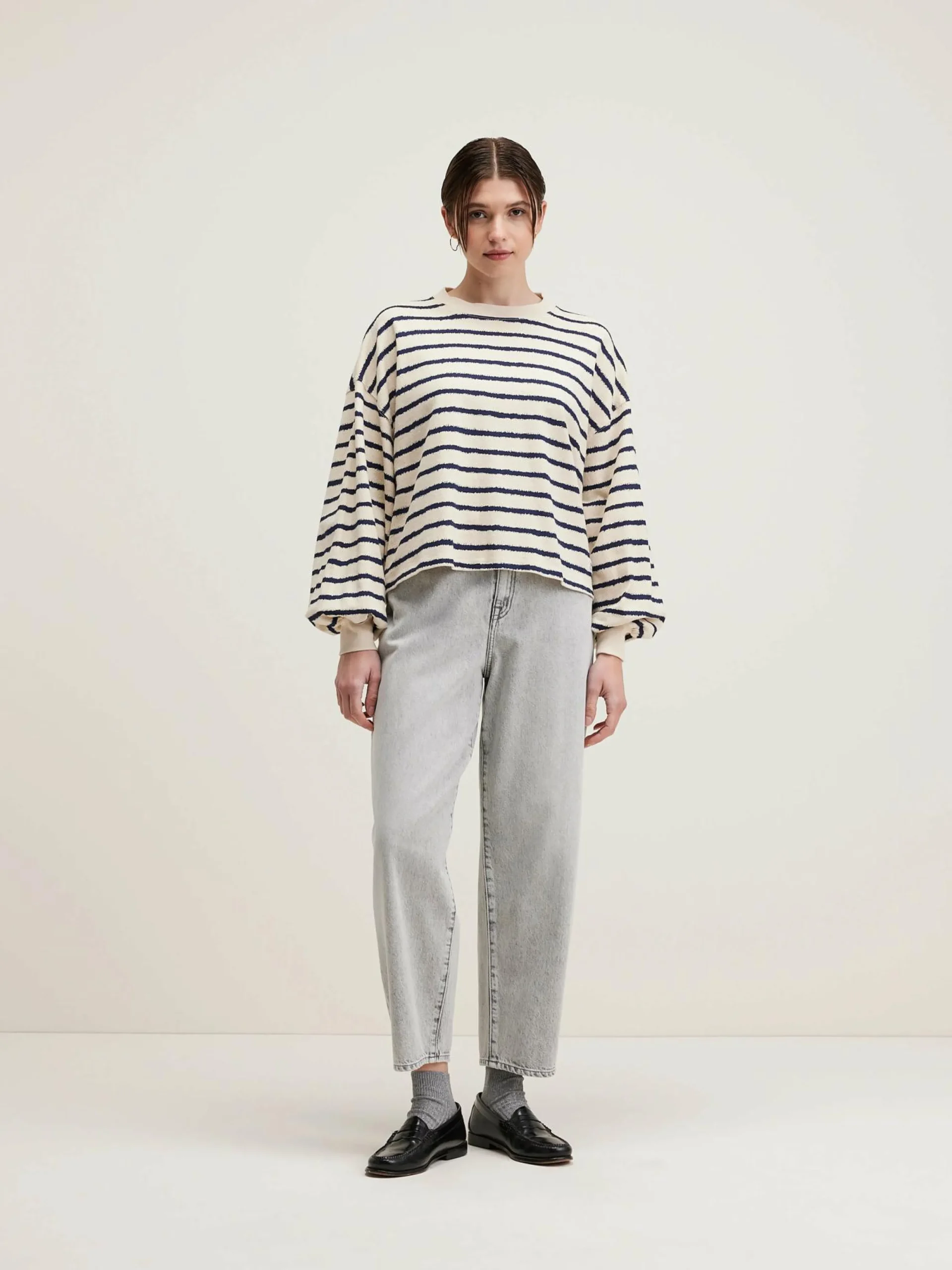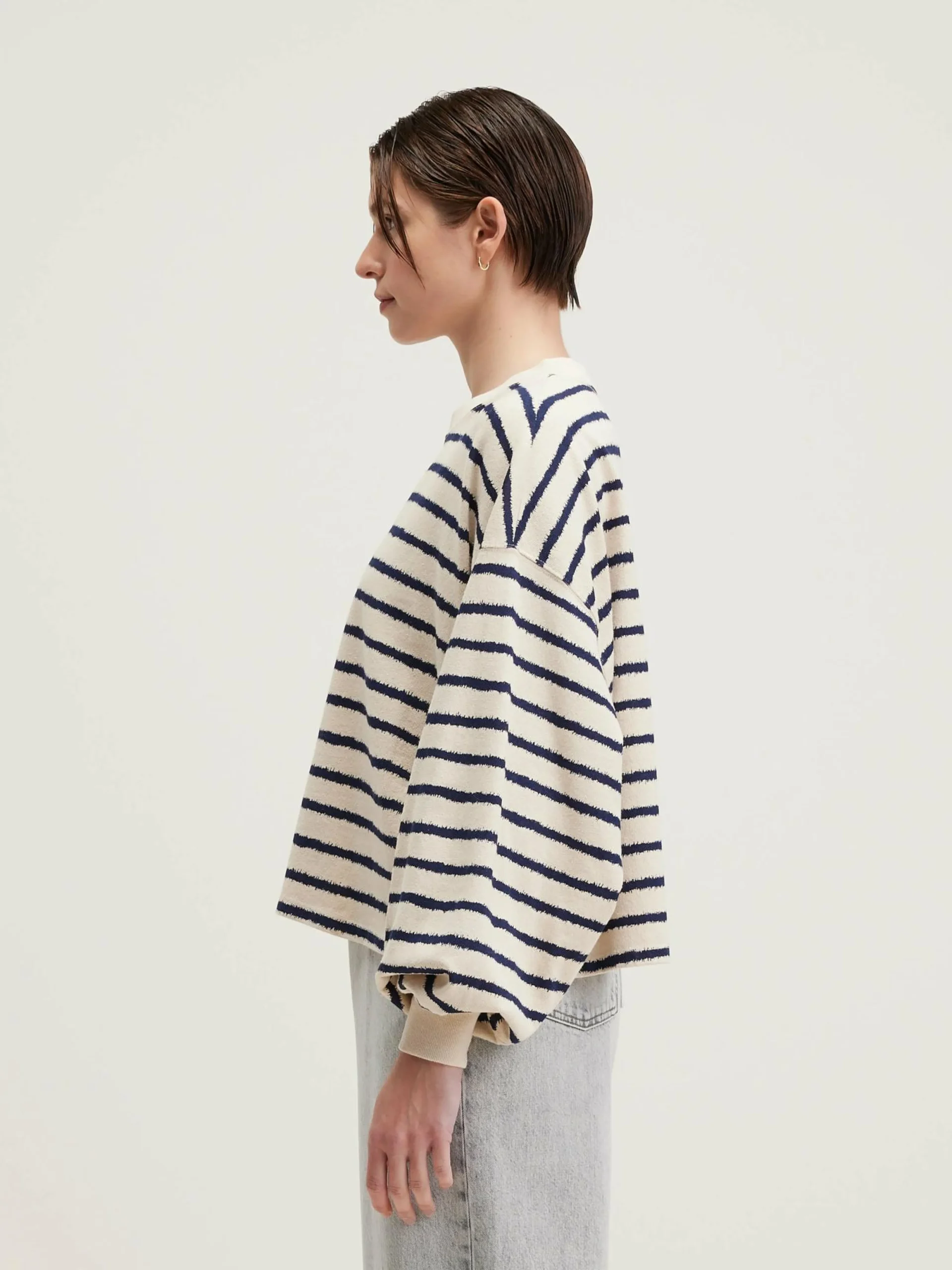 Oversized katoenen T-shirt met lange mouwen en zinderende matrozenstrepen.