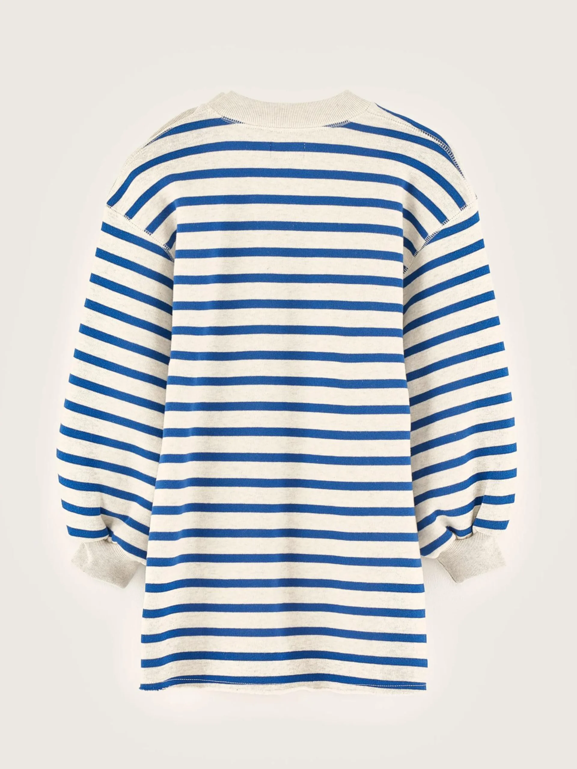 Sweatshirtjurk van fleecestof met marinestrepen.