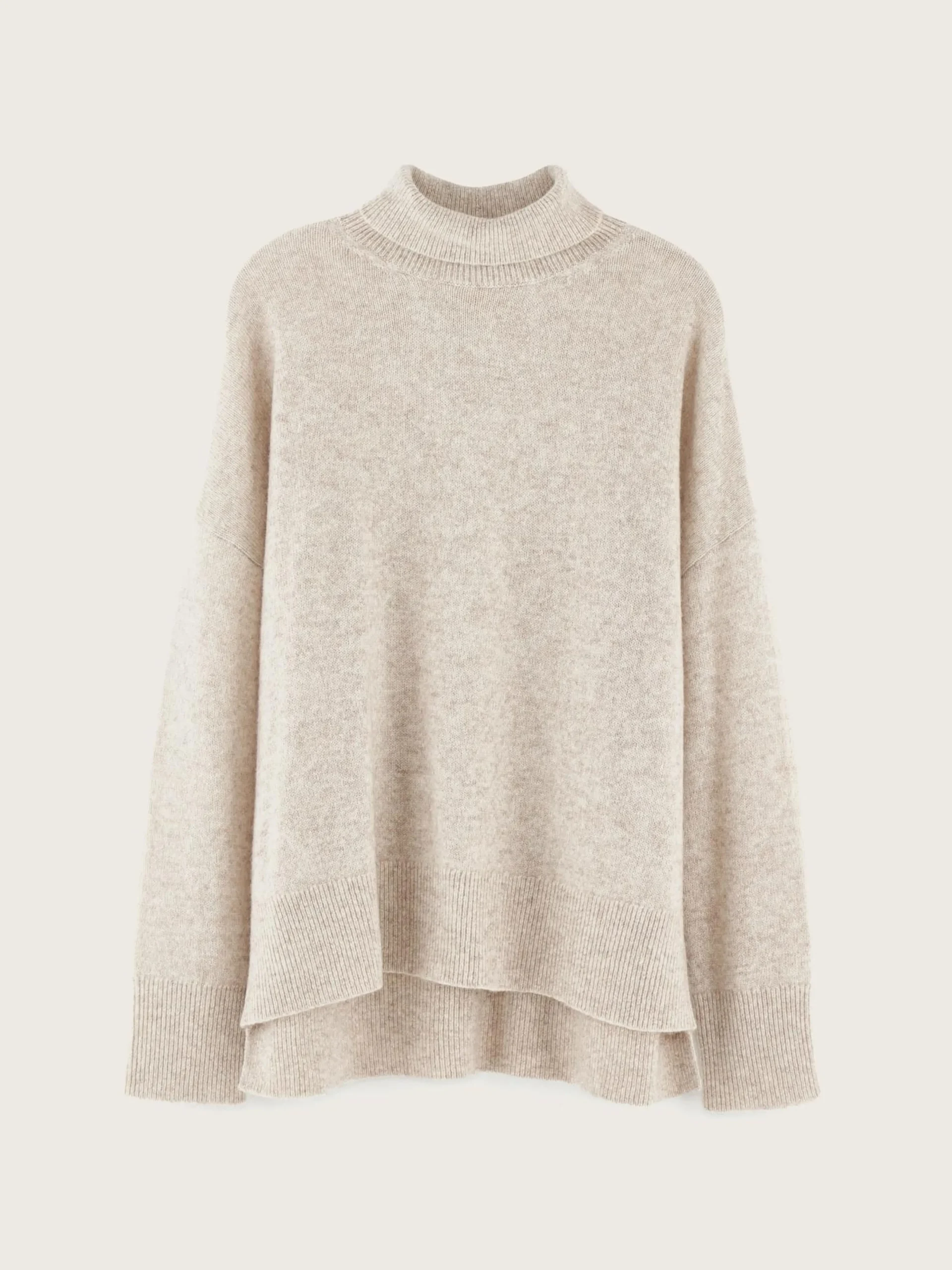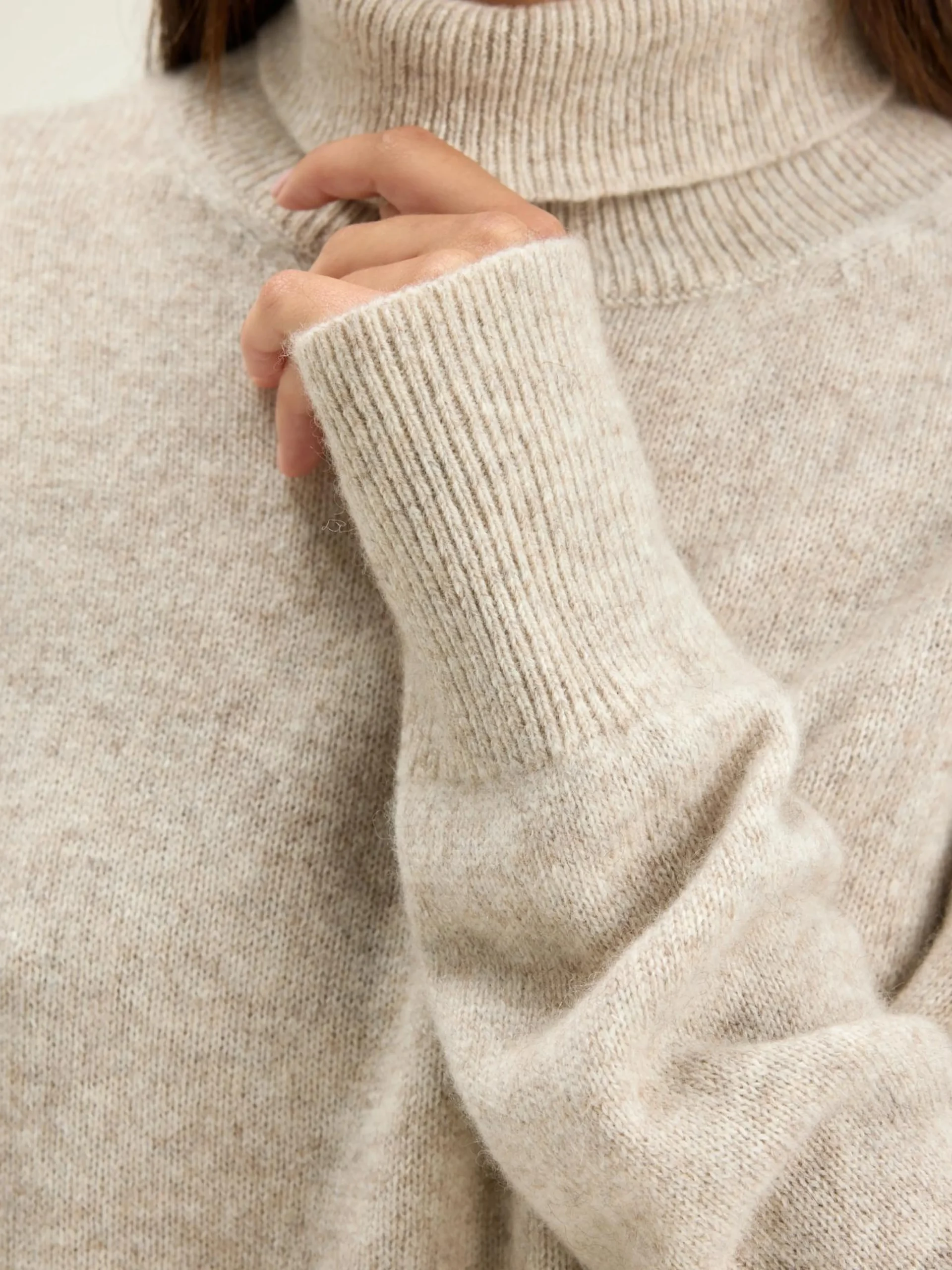 Grijs gemêleerde, oversizede trui met turtle neck en extra lange mouwen.