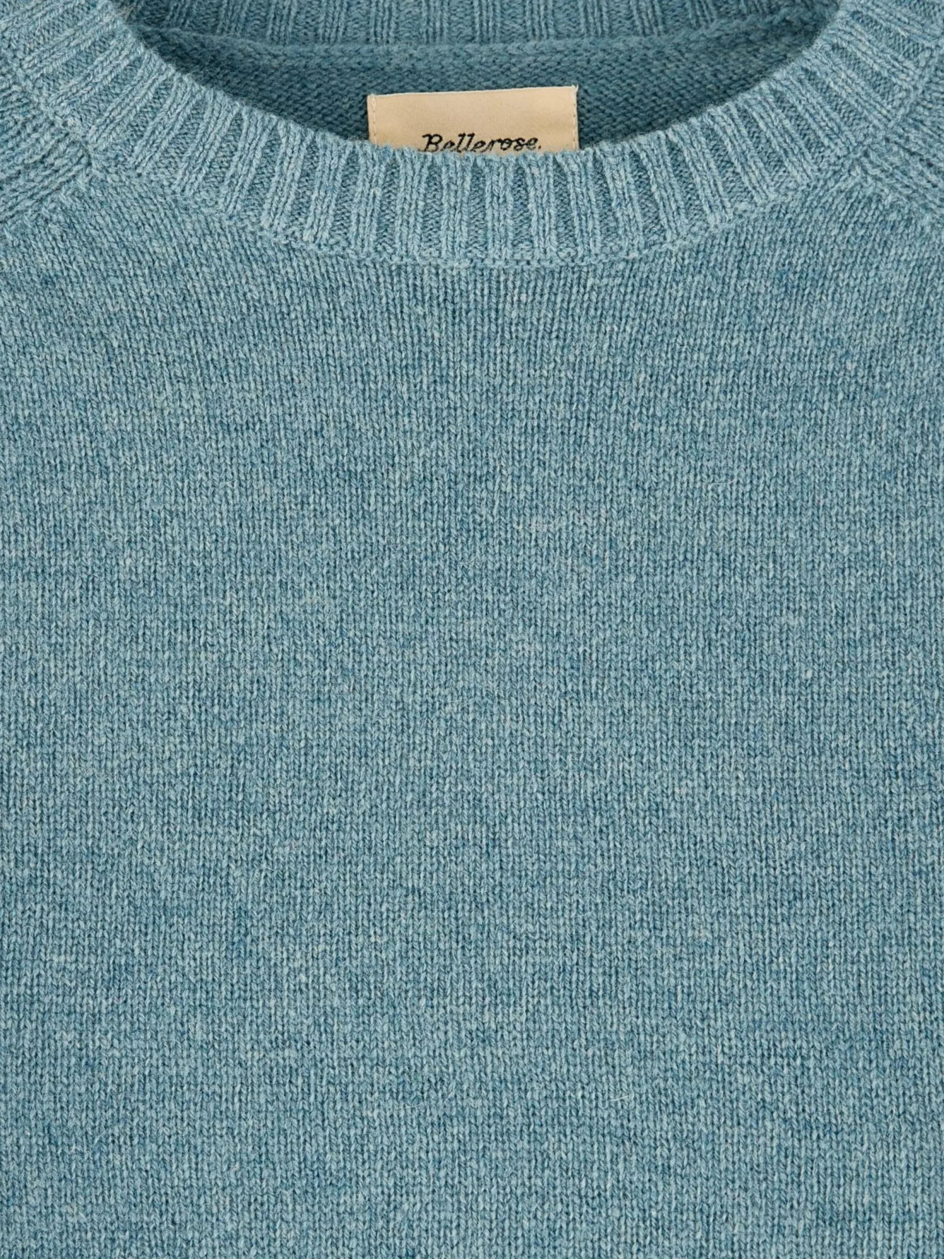 Comfortabele, klassieke sweater met ronde hals, van blauwe merinowol.