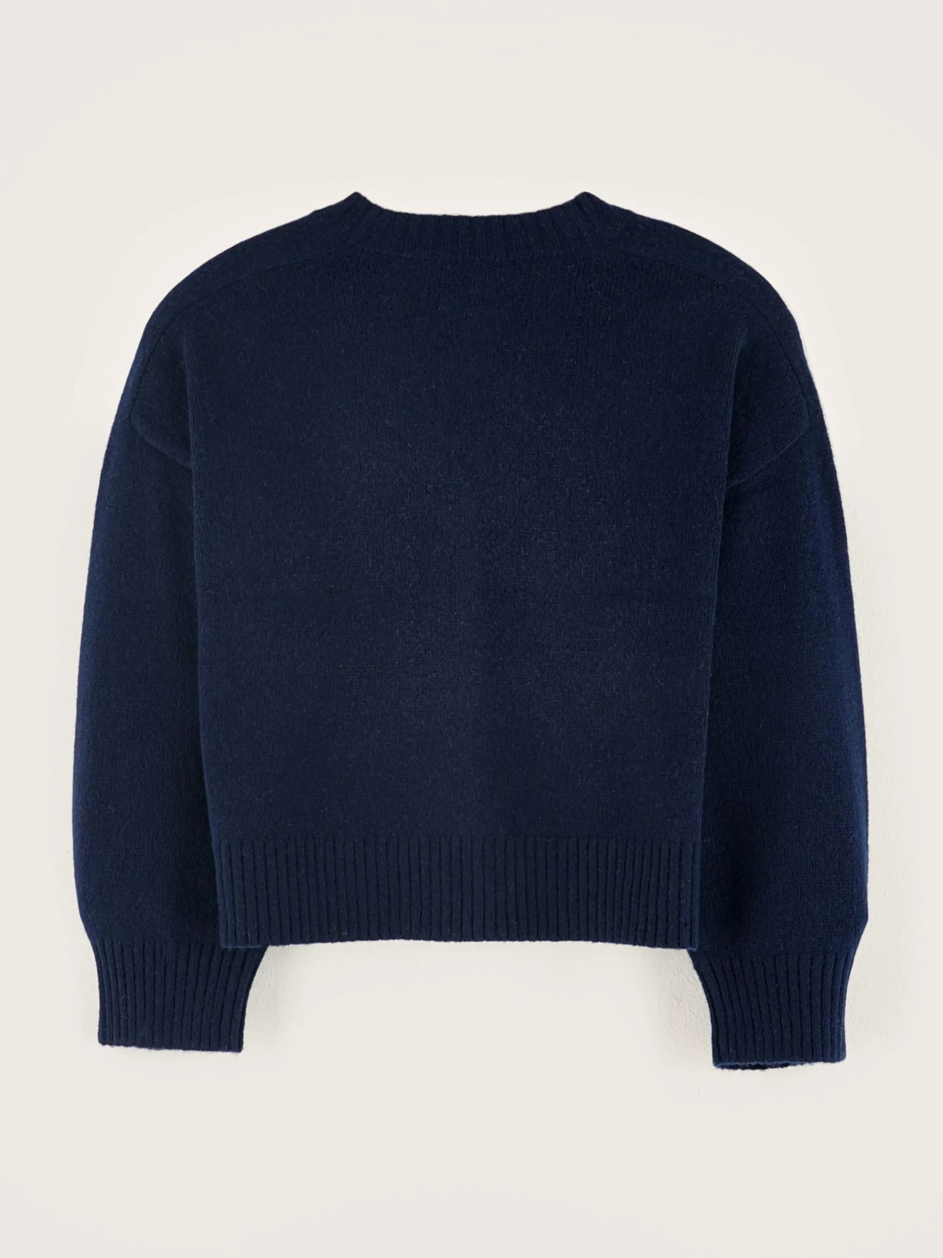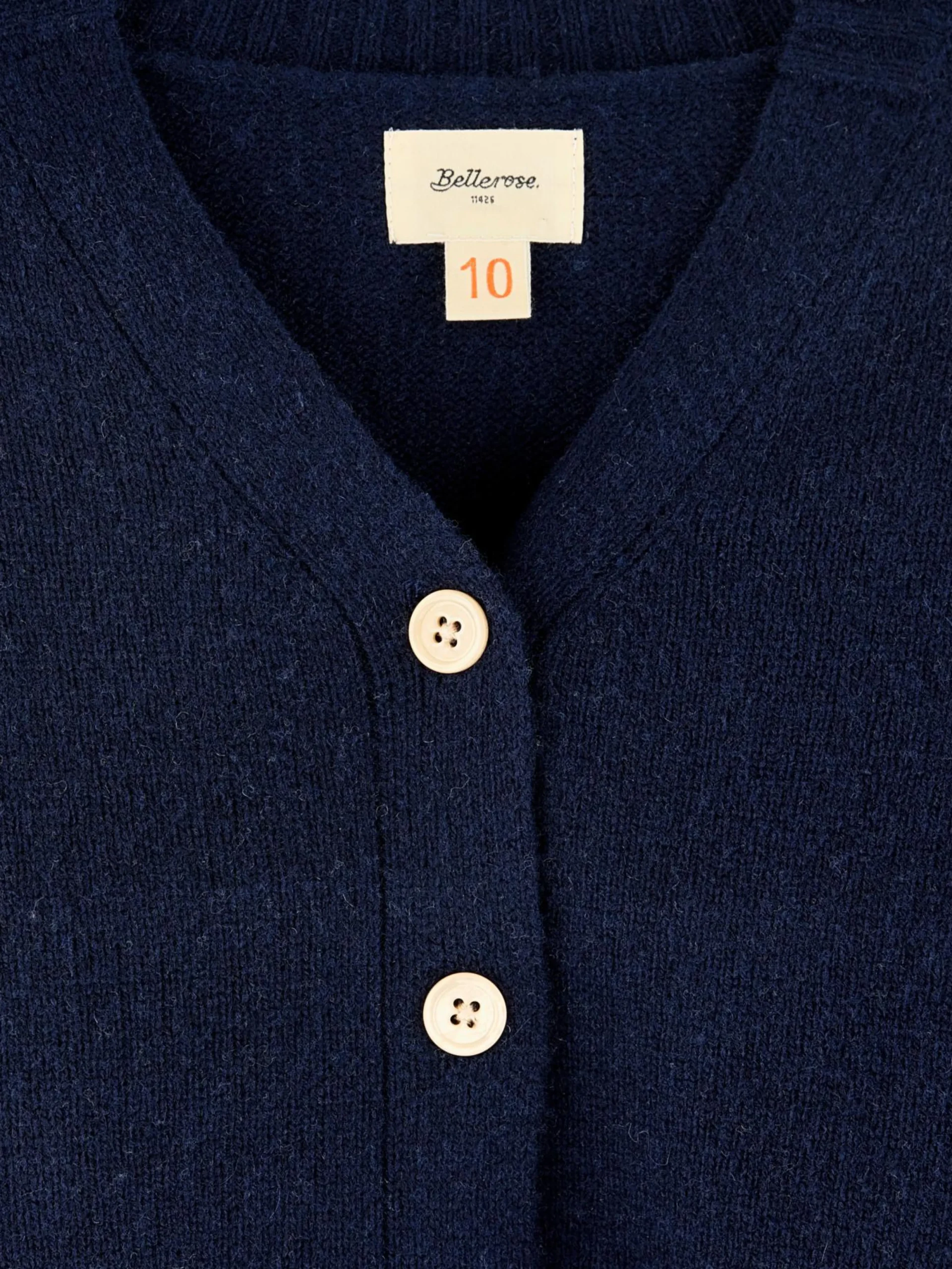 Donkerblauwe, oversizede cardigan met V-hals van een superfijne merinowolmix.