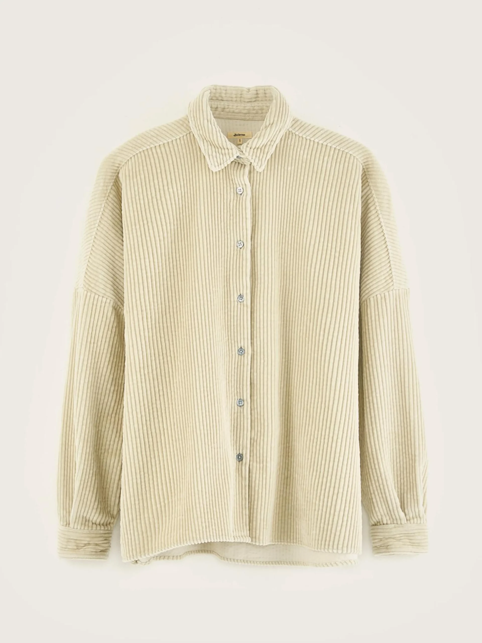 Oversized hemd van ecru corduroy, met klassieke kraag en lage schouderlijn.