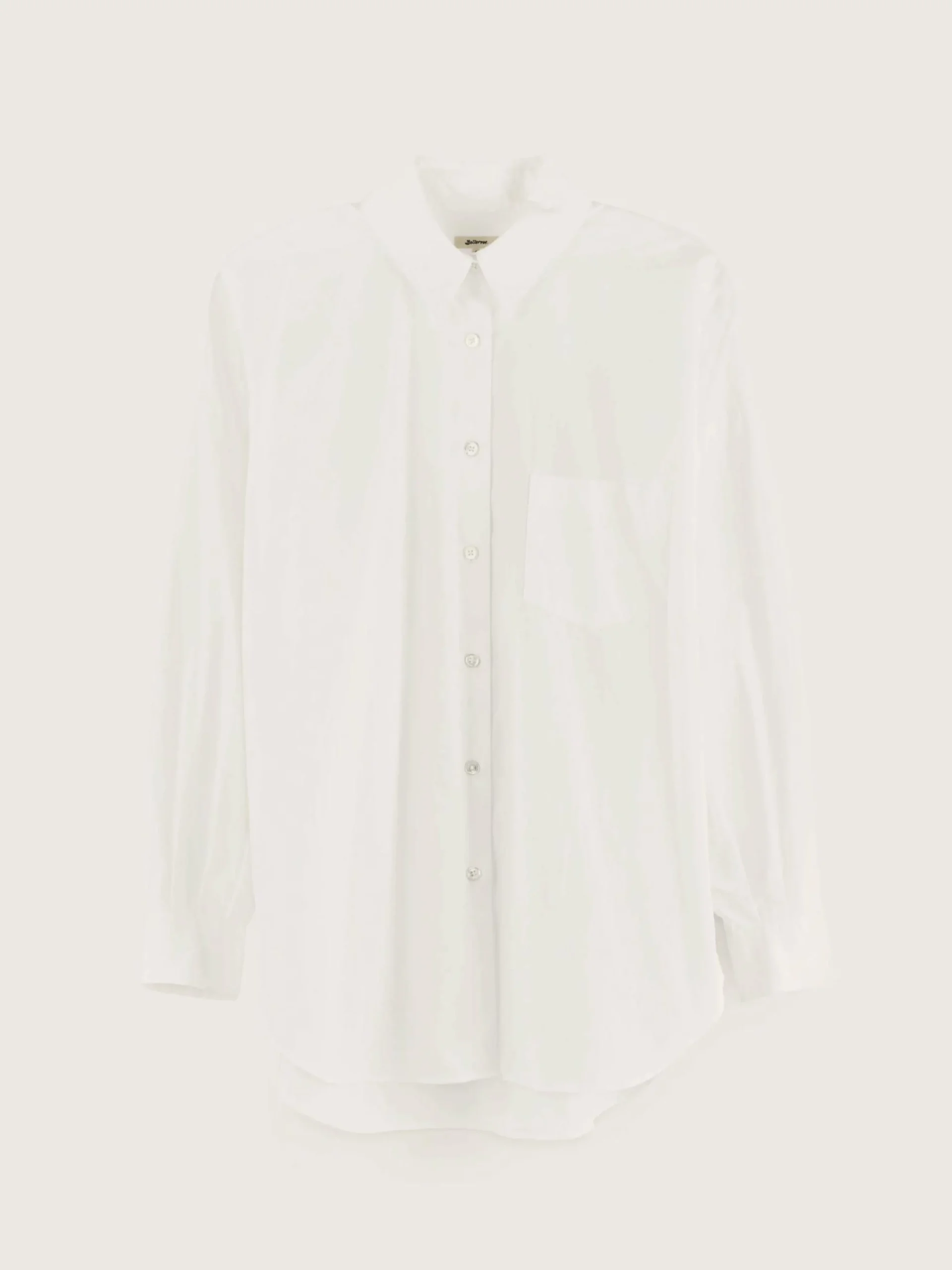 Fris wit oversized hemd met kraag, een lage schouderlijn en een borstzak, van katoenpopeline.