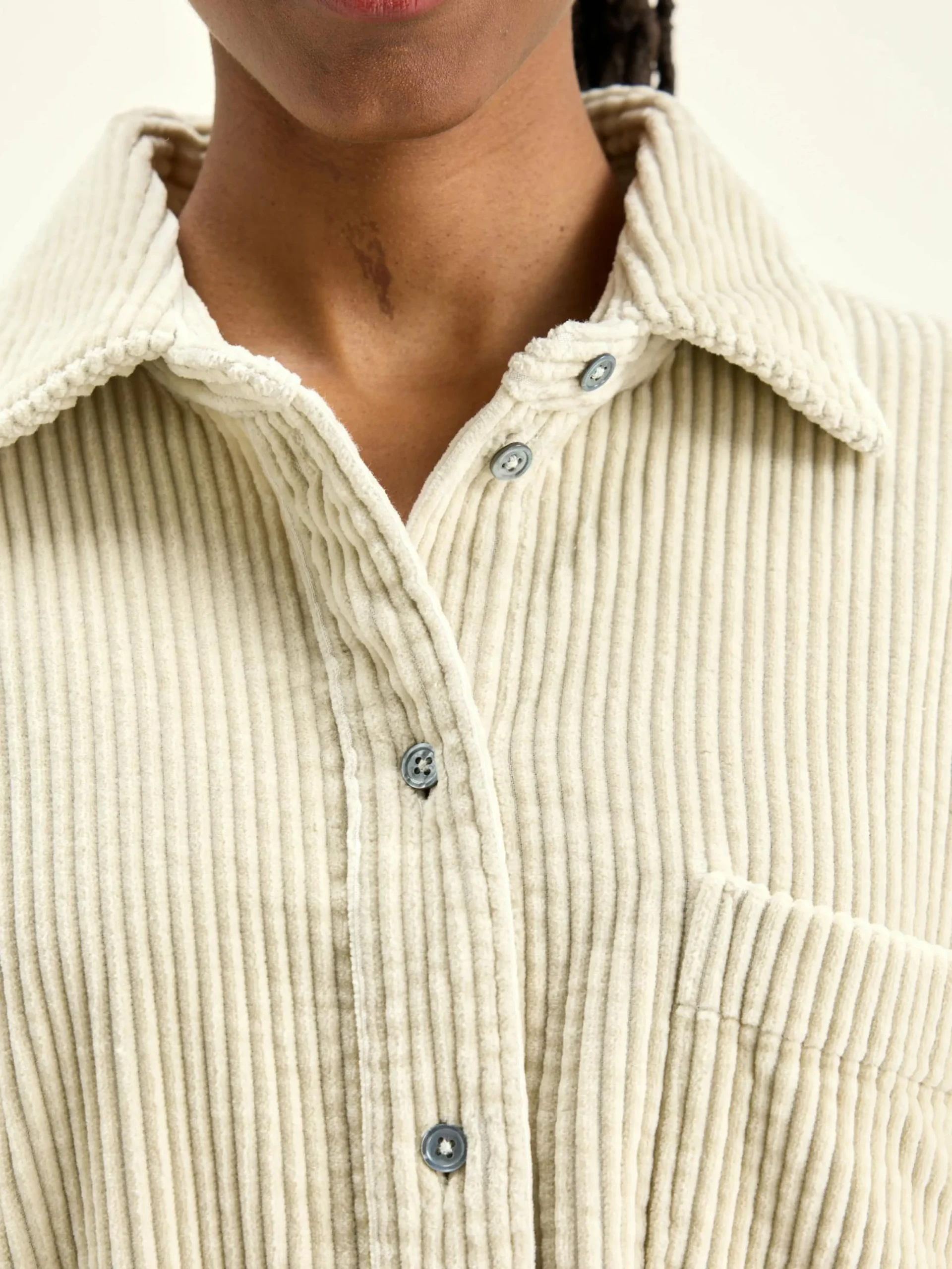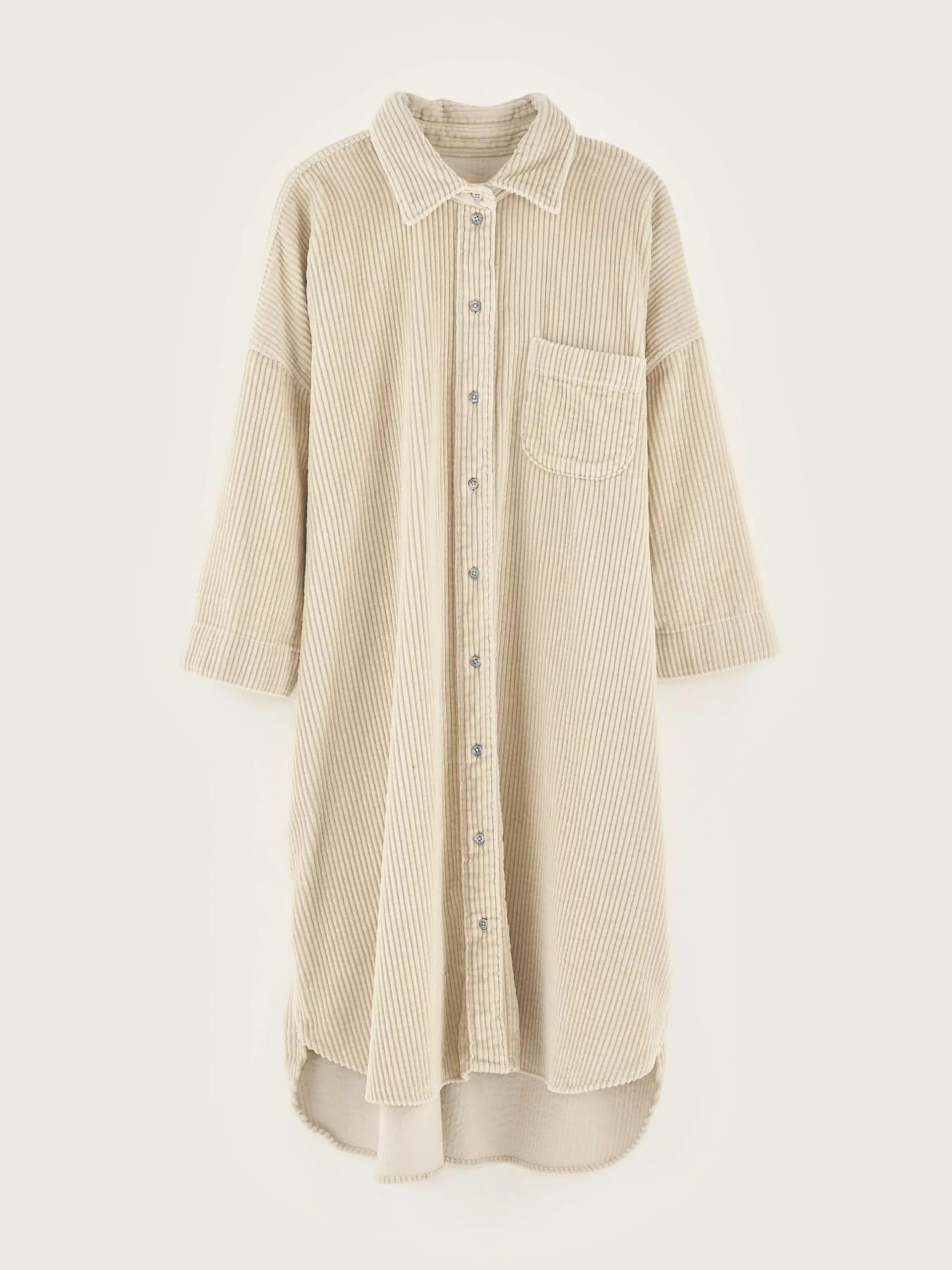 Ecru, oversizede hemdjurk van katoencorduroy met brede rib.