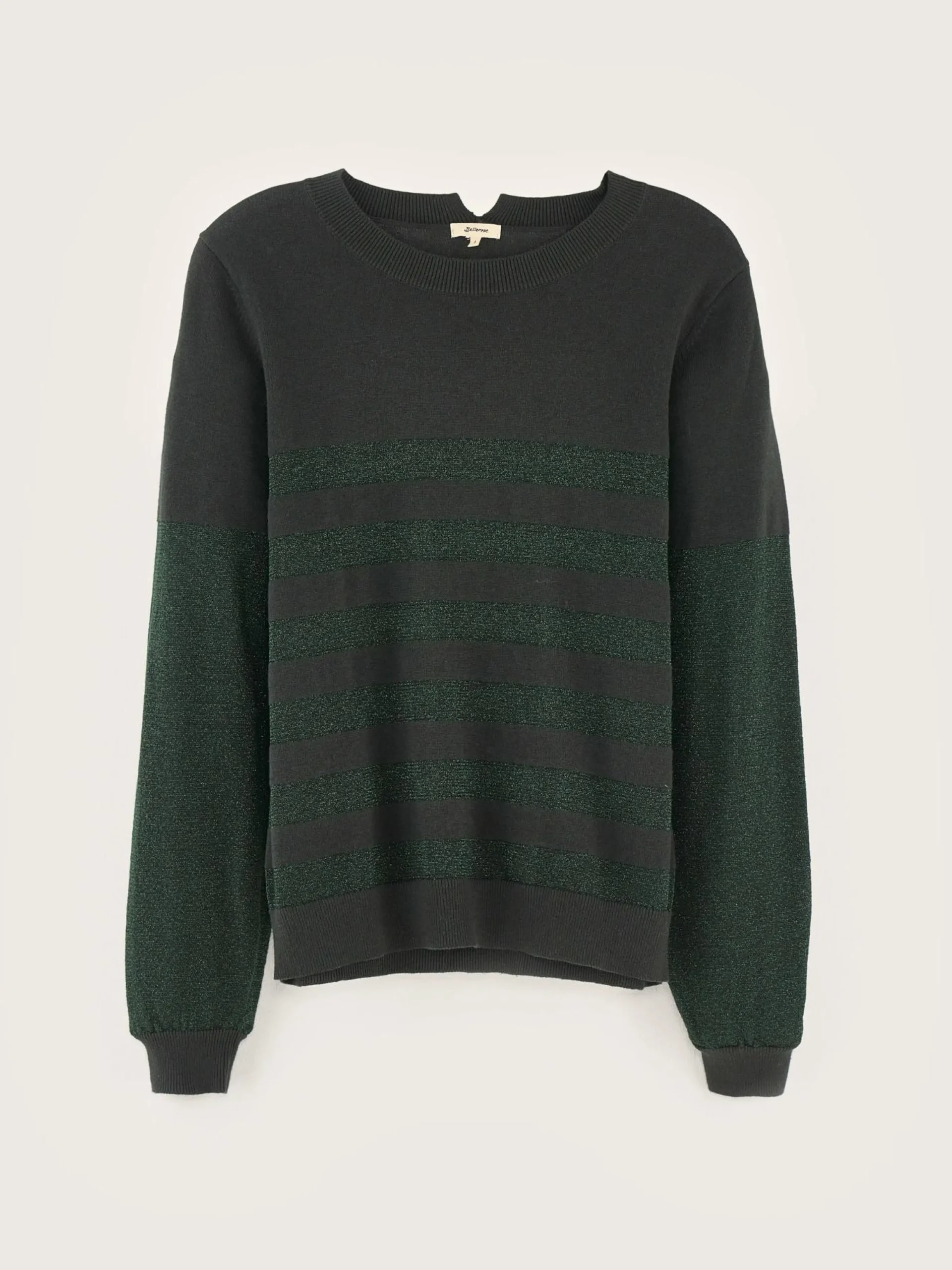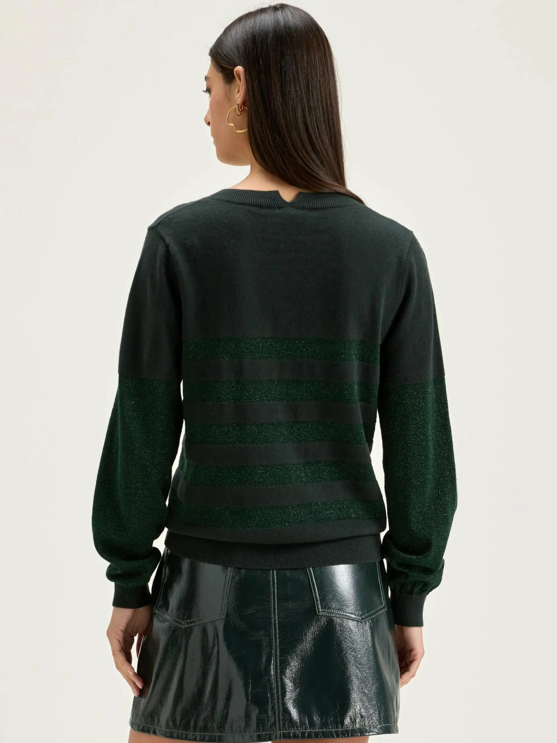 Klassieke trui met lange mouwen en contrasterende lurexstrepen.