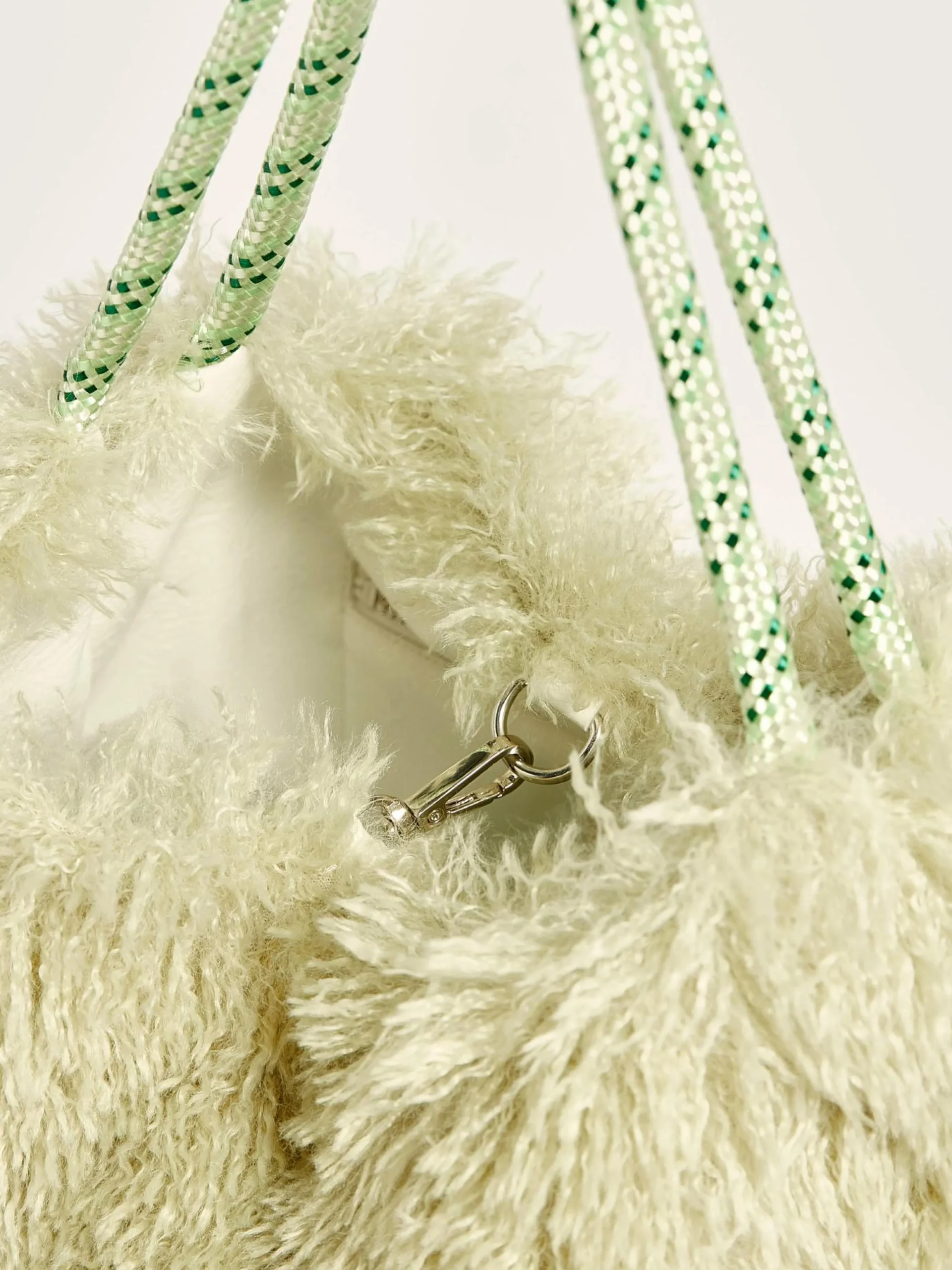 Omkeerbare, kardemomgroene tas van nepleer met twee paar handvaten.