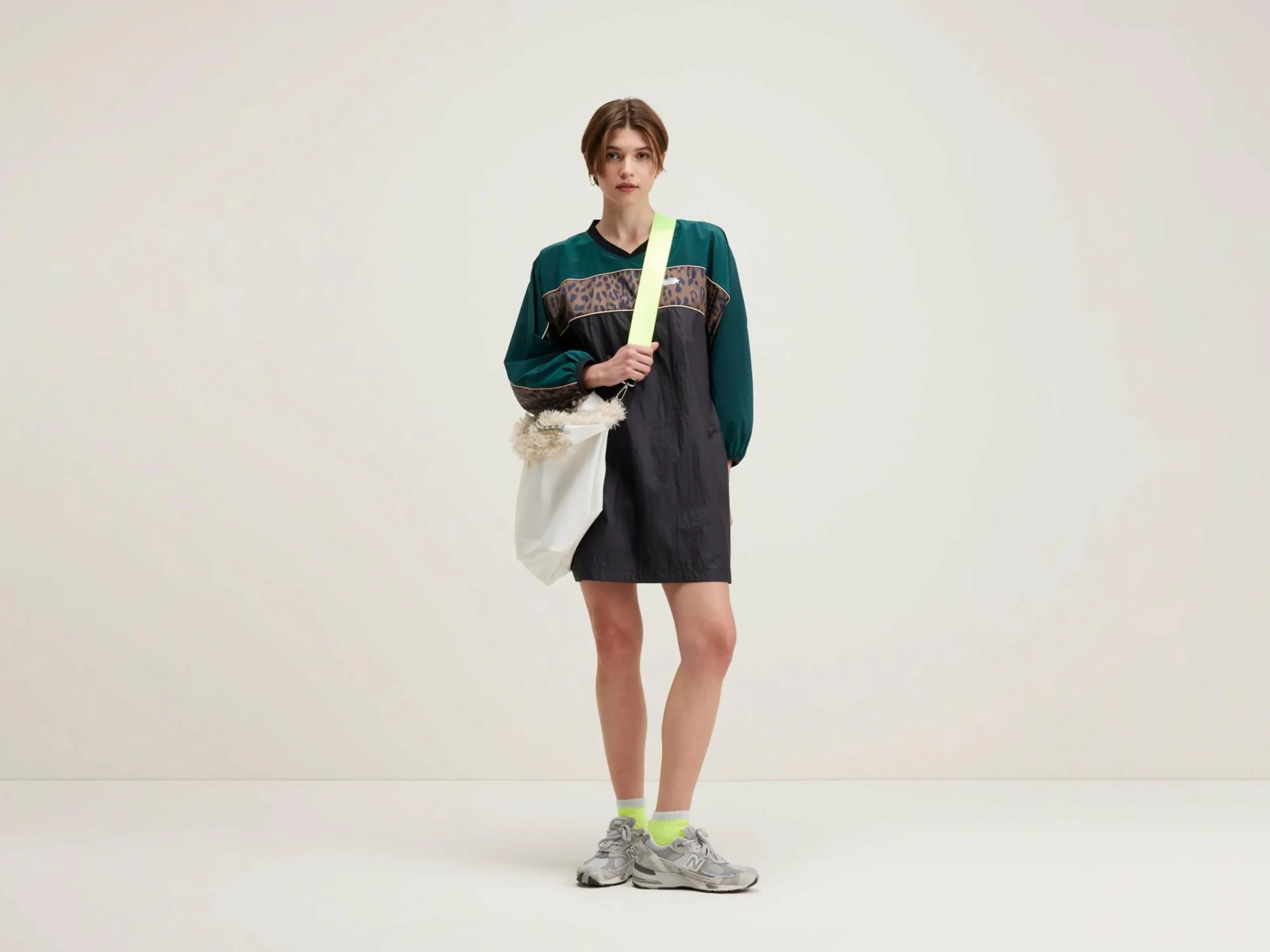 Oversized sportief mini-jurkje, met details in luipaardprint.