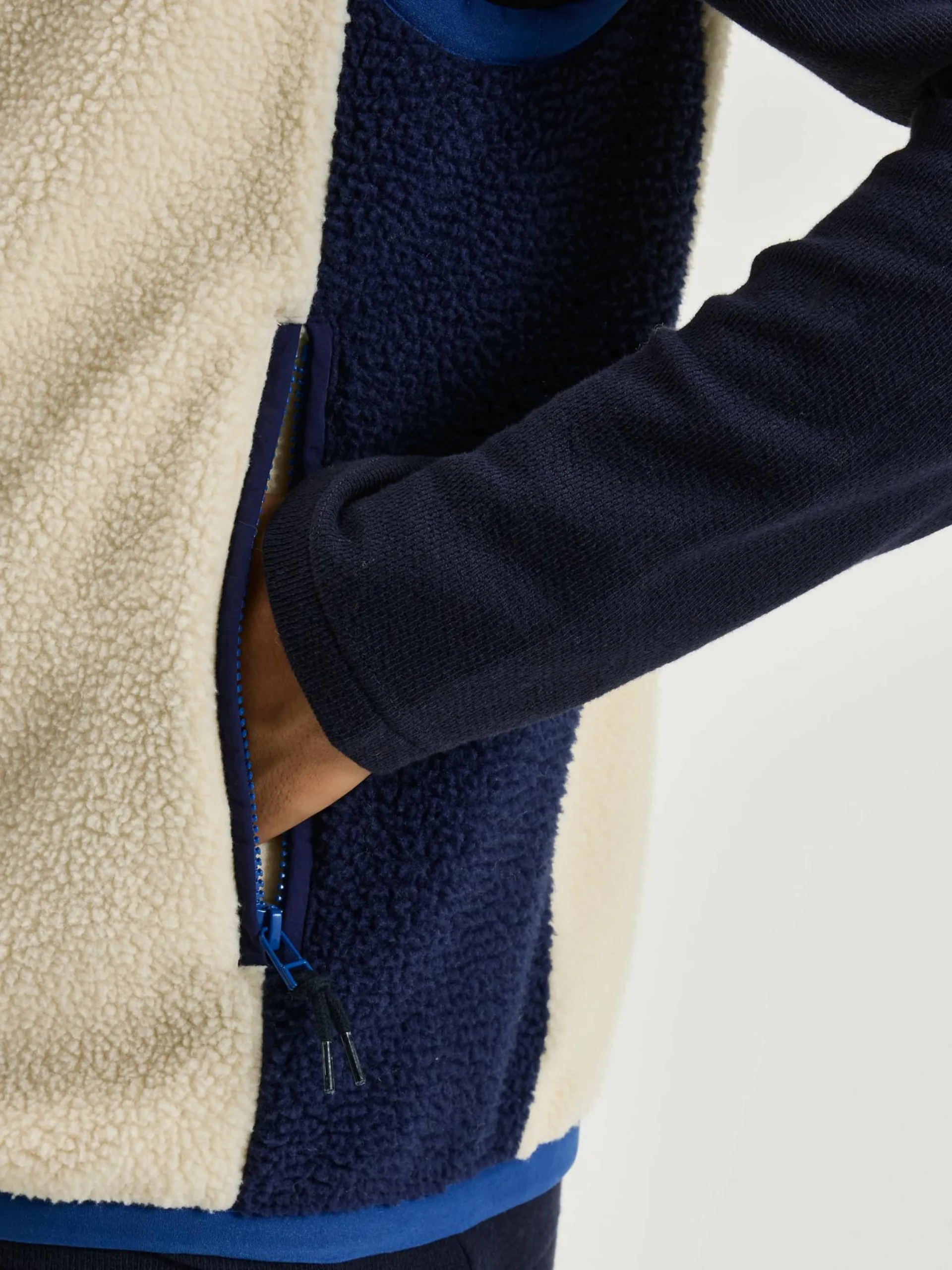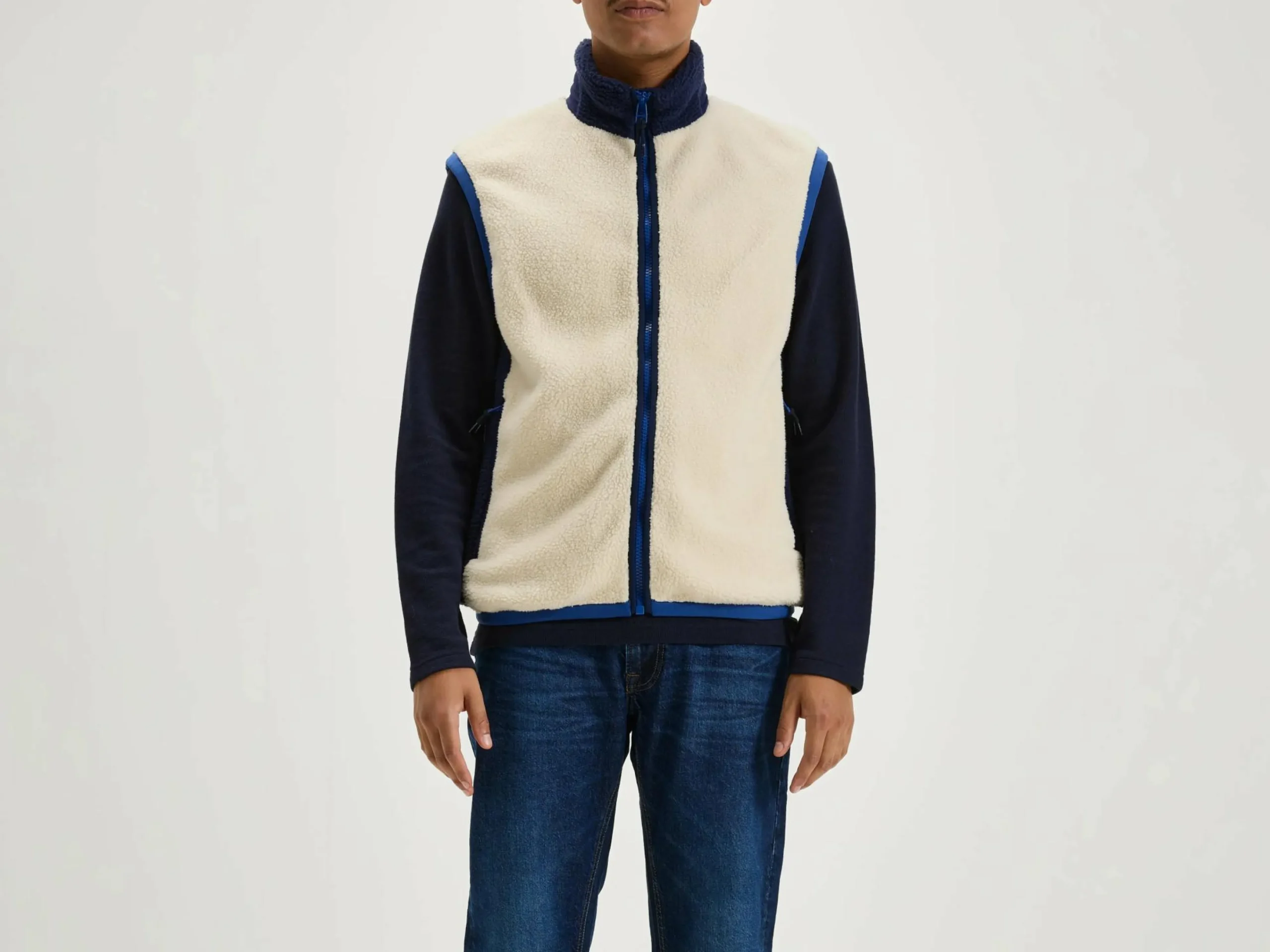 Mouwloos sweatshirt bodywarmer met rechte pasvorm en ritssluiting vooraan, van kalkwitte teddy.