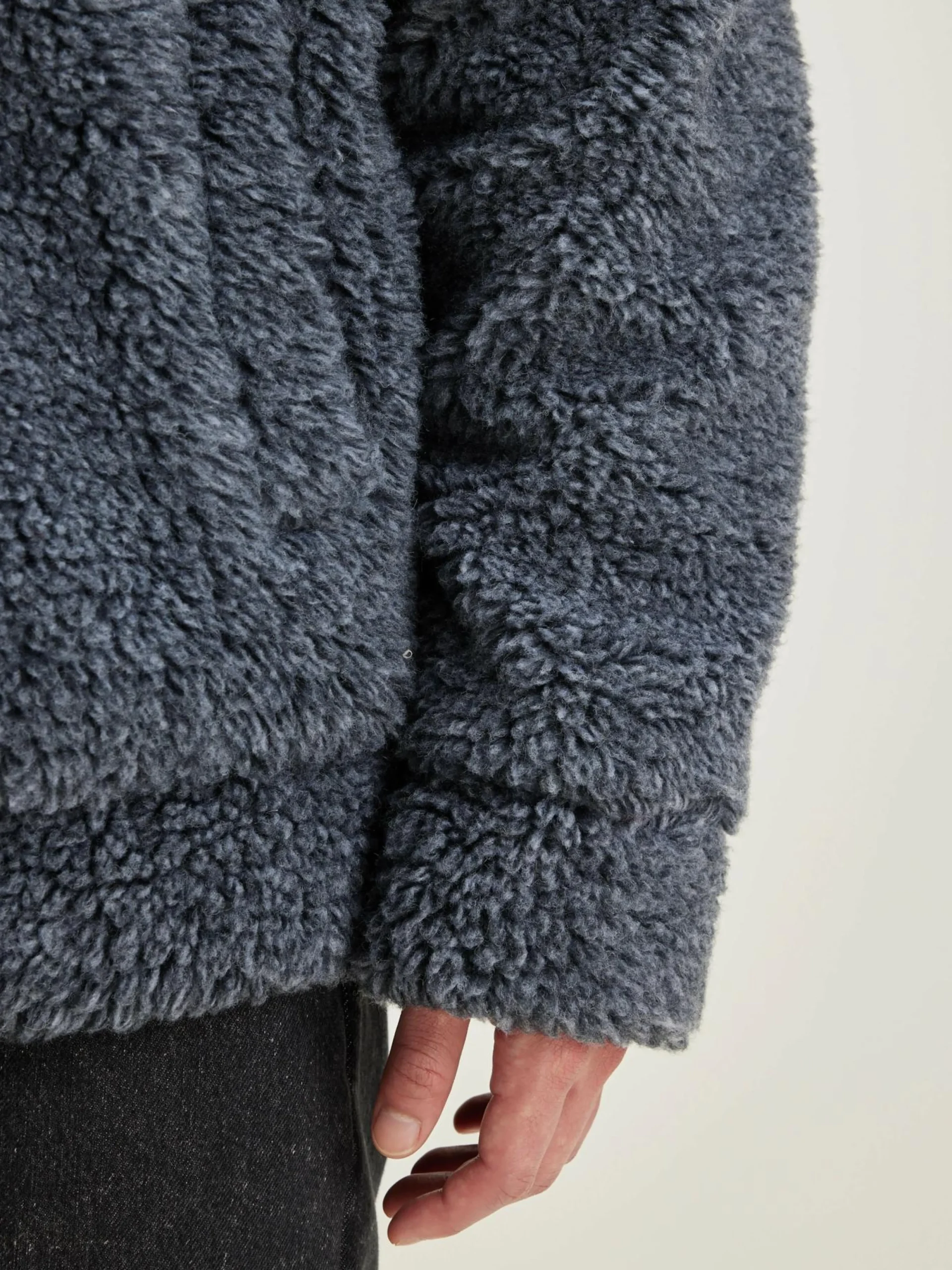 Oversizede jas geïnspireerd door denimjassen, van antracietgrijze chiné teddy.