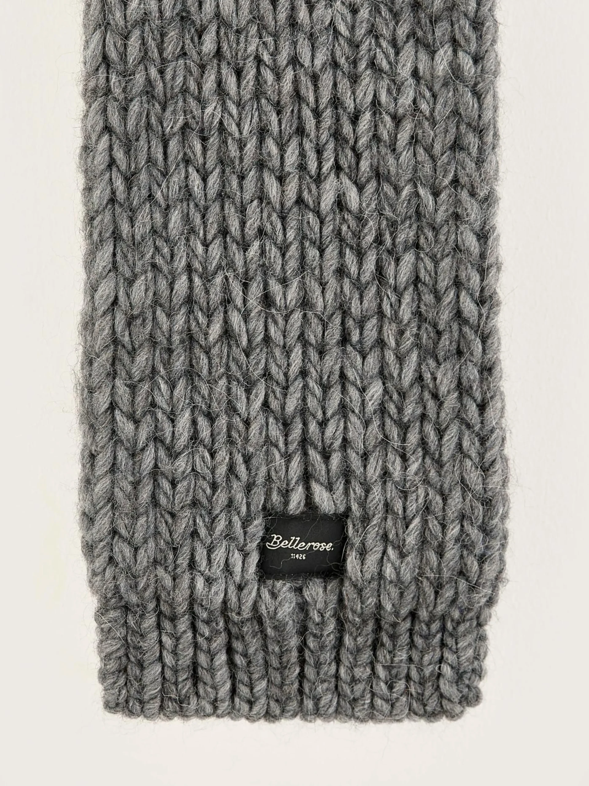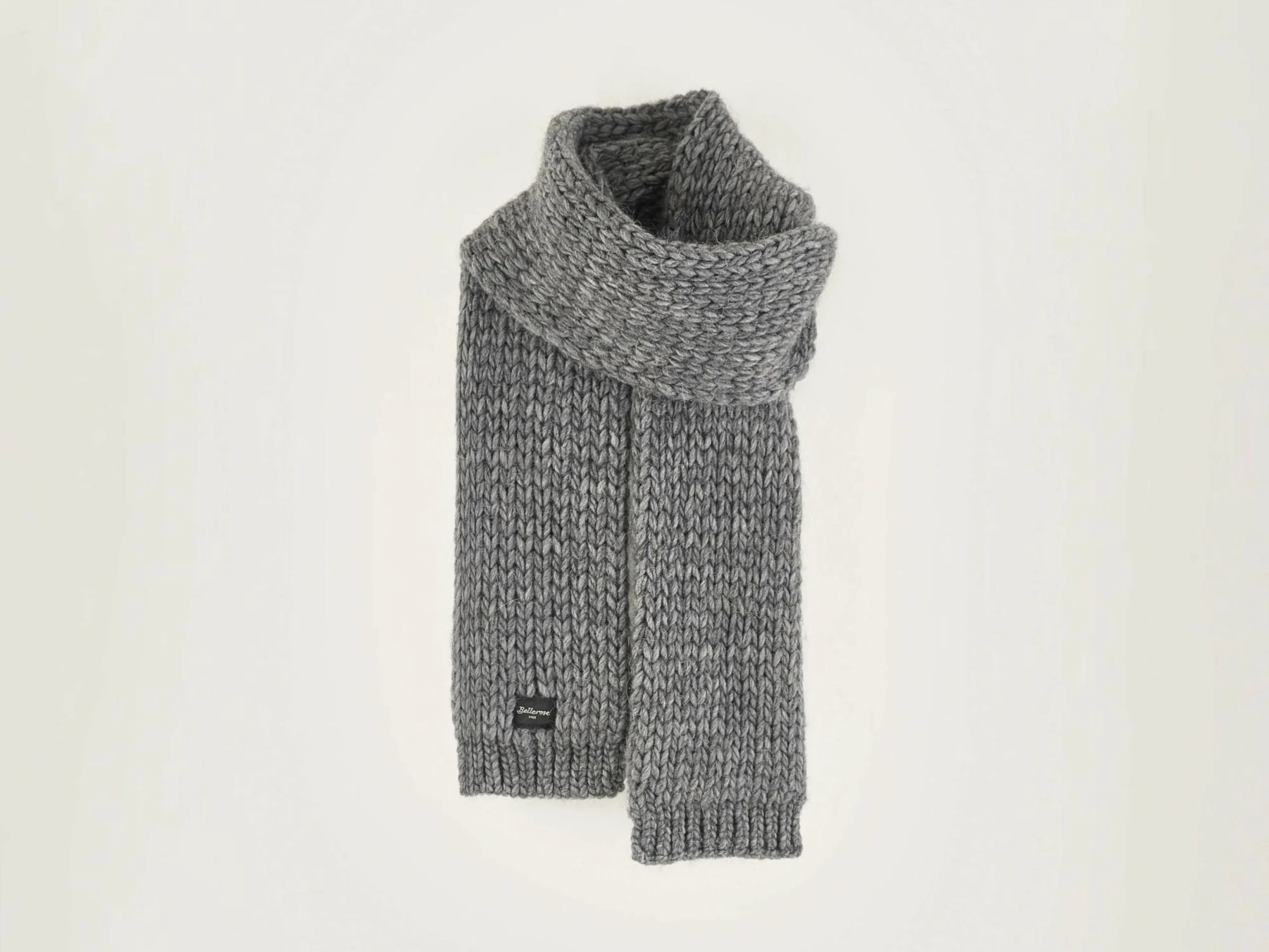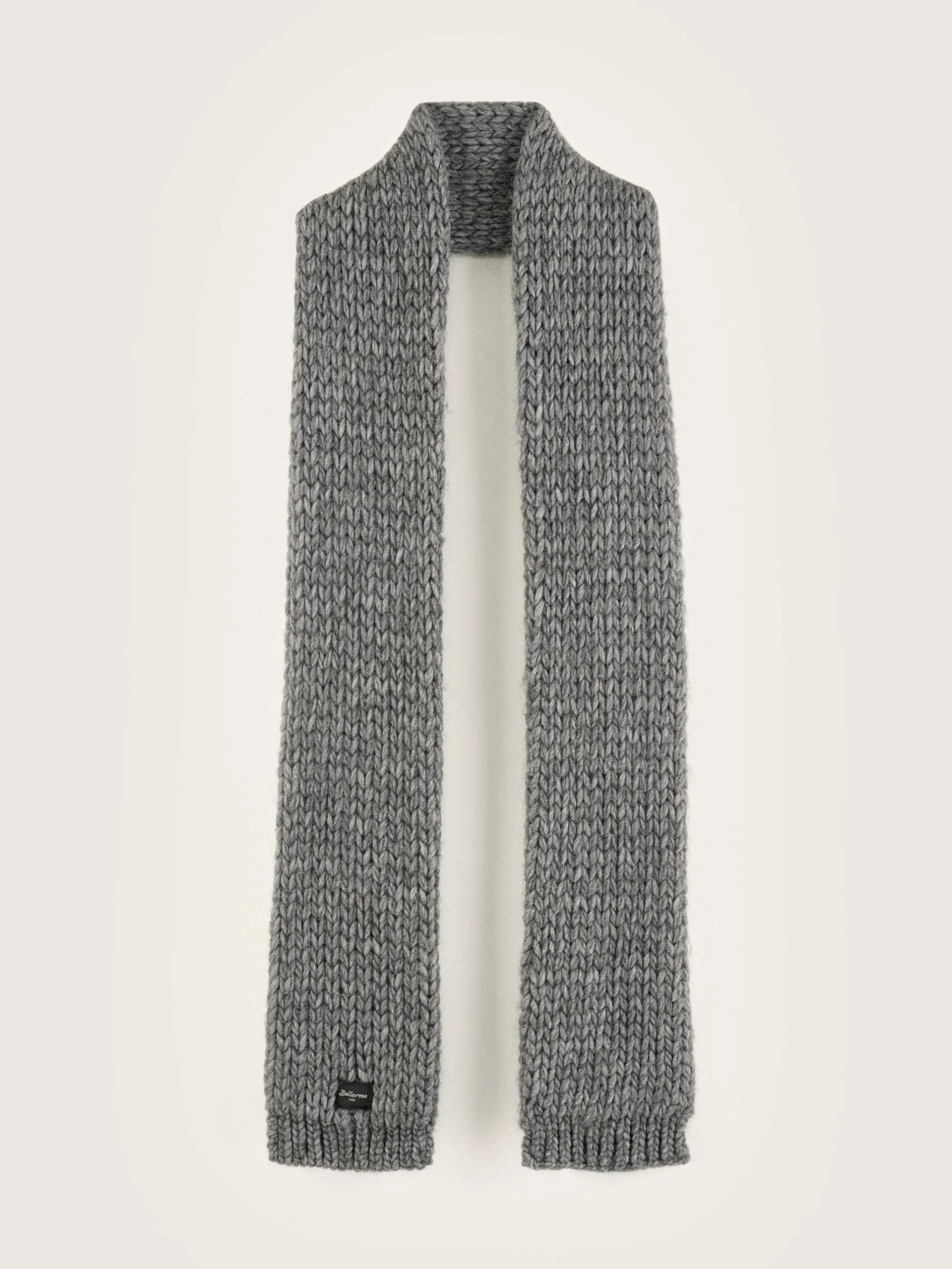 Middengrijze, jersey gebreide sjaal met dik garen.