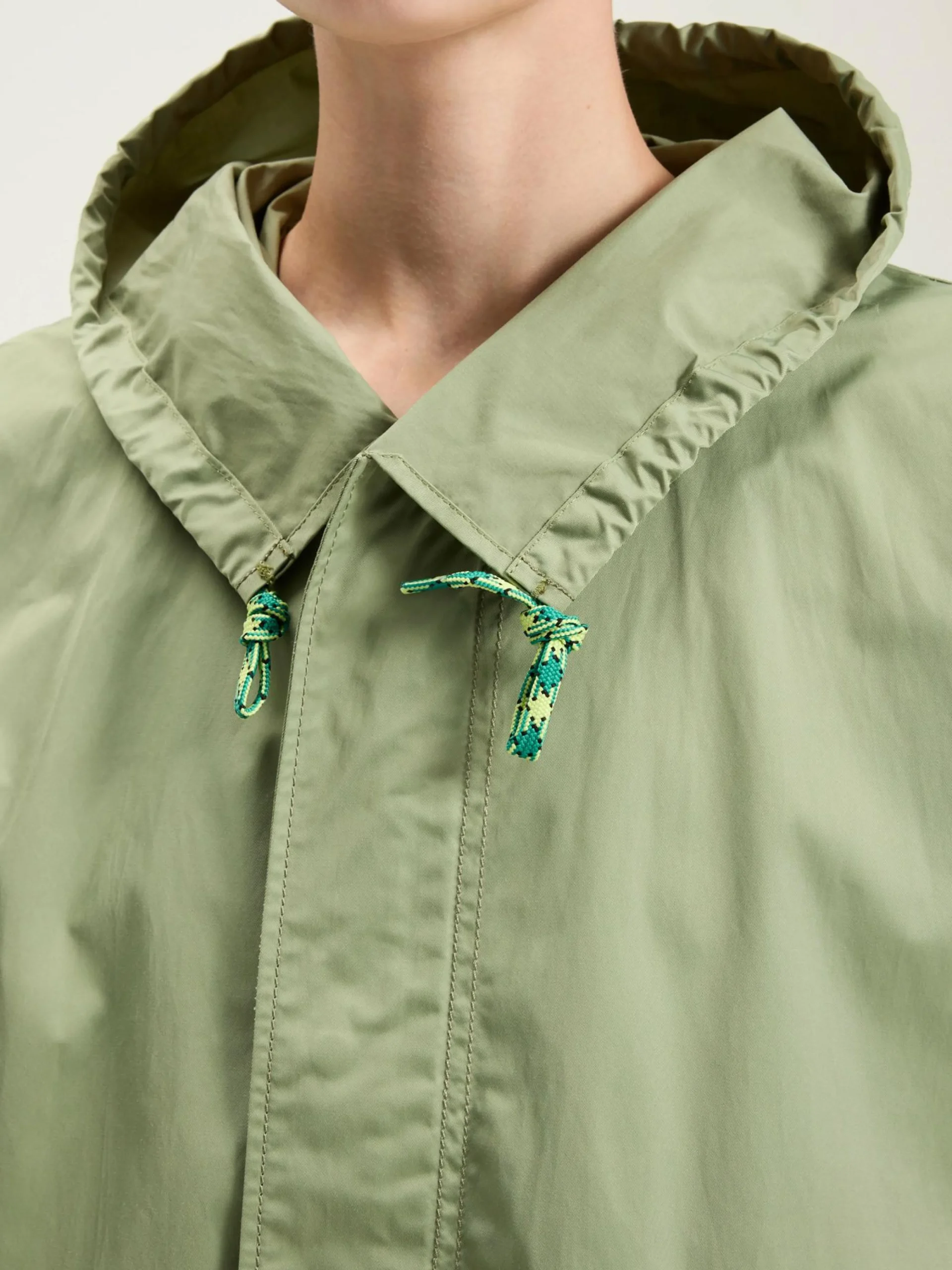 Oversized parka met capuchon in lichtgroen canvaskatoen met raglanmouwen en elastische zomen.