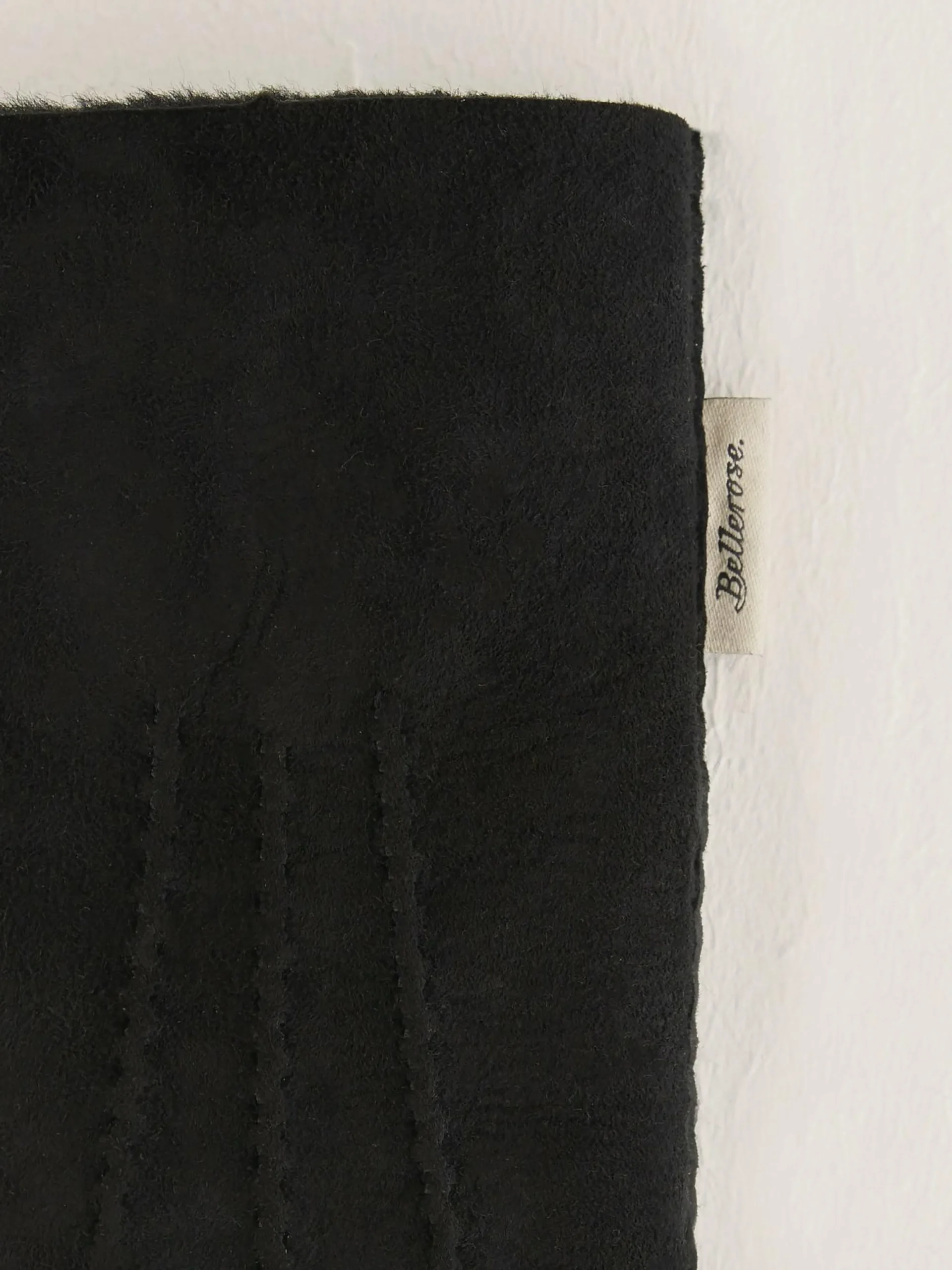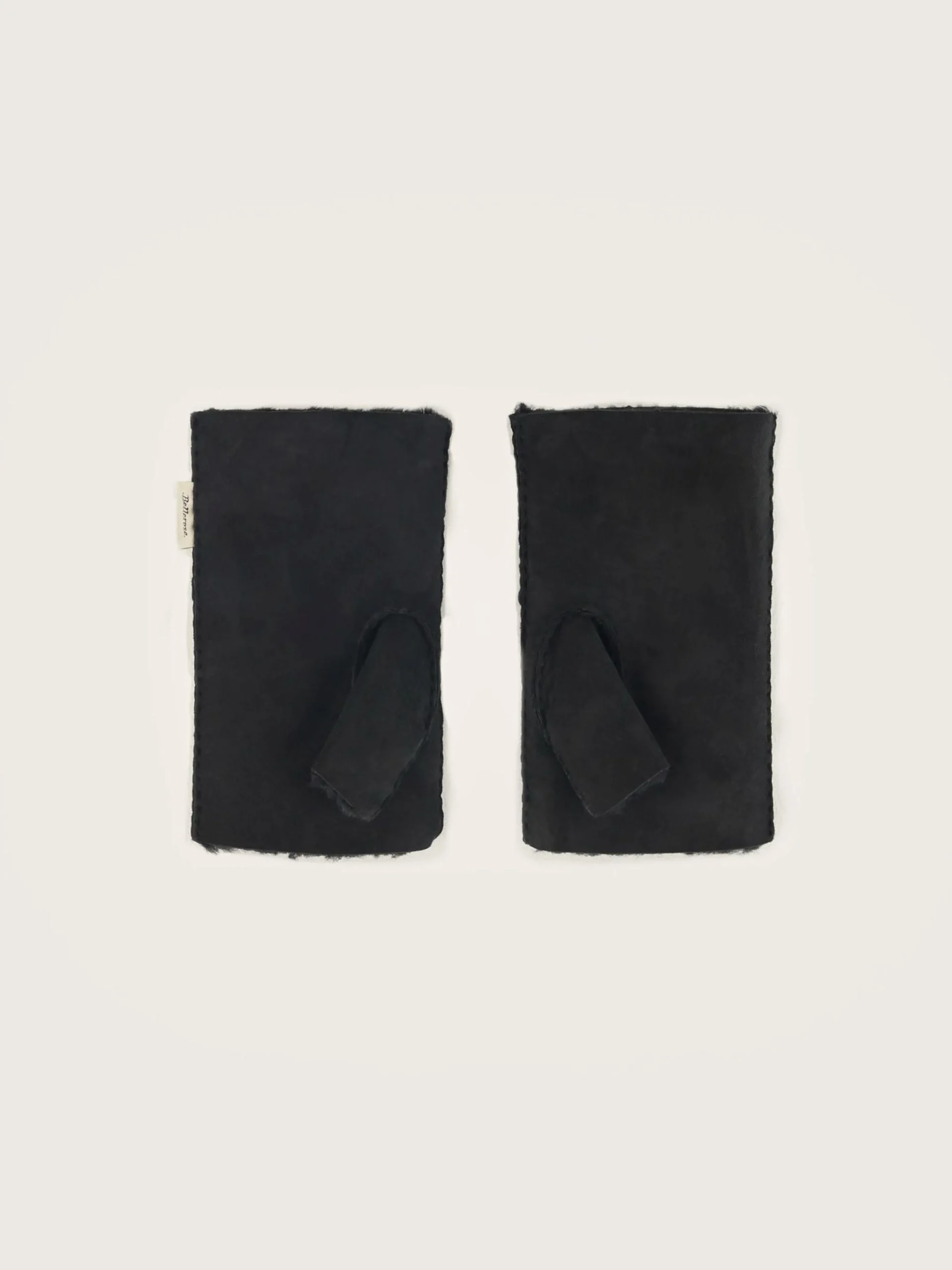 Handschoenen zonder vingers in zwart leer met shearlingwol.