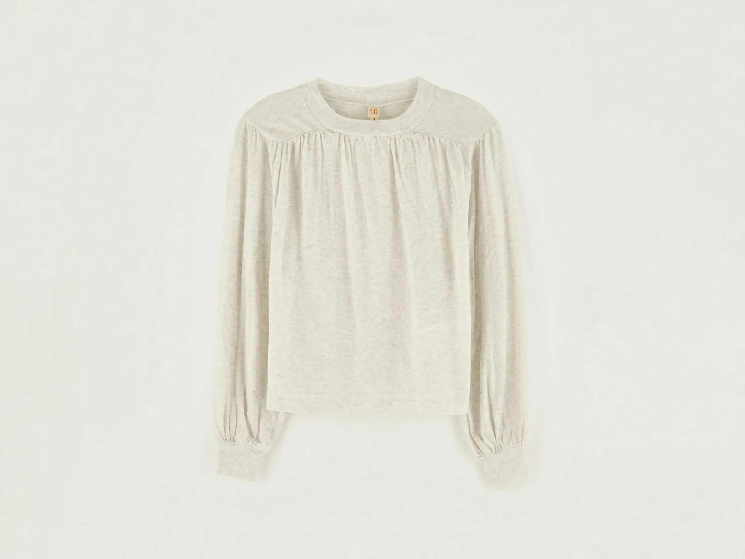 Heidegrijs, comfortabel T-shirt met lange mouwen.