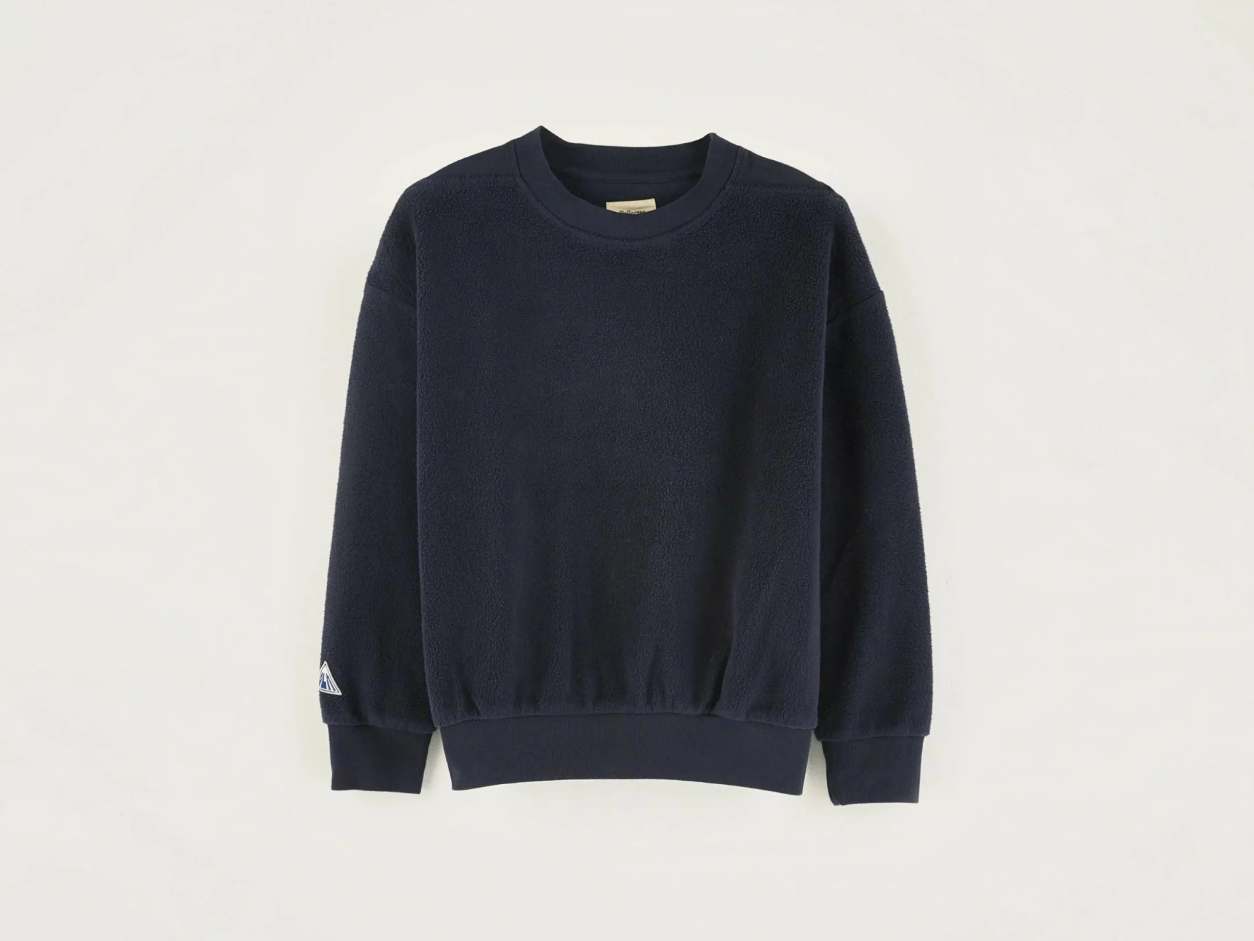 Klassiek, donkerblauw sweatshirt van teddyachtige katoenfleece.