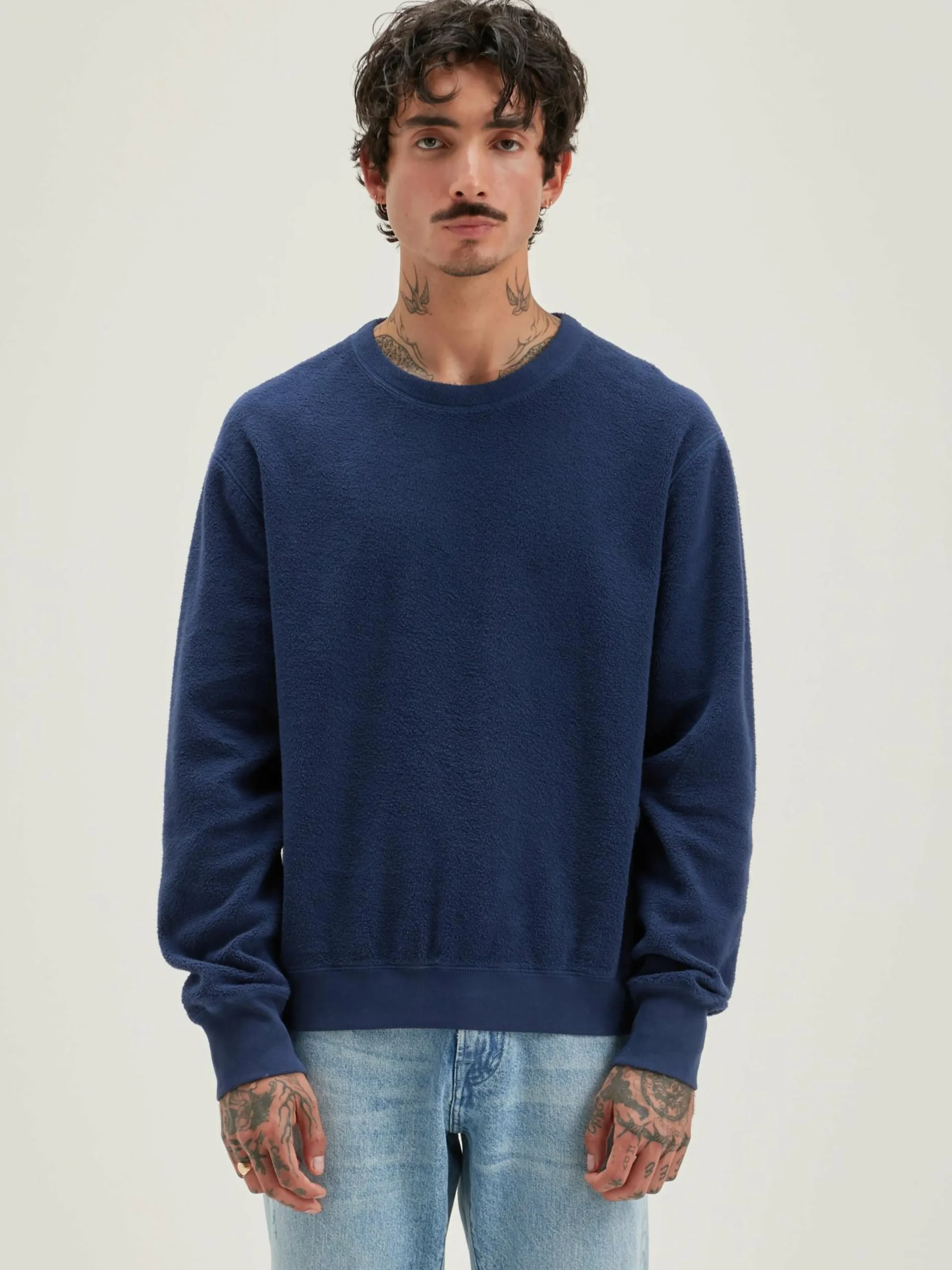 Klassiek sweatshirt met ronde hals, van inktblauwe, geborstelde katoenjersey.
