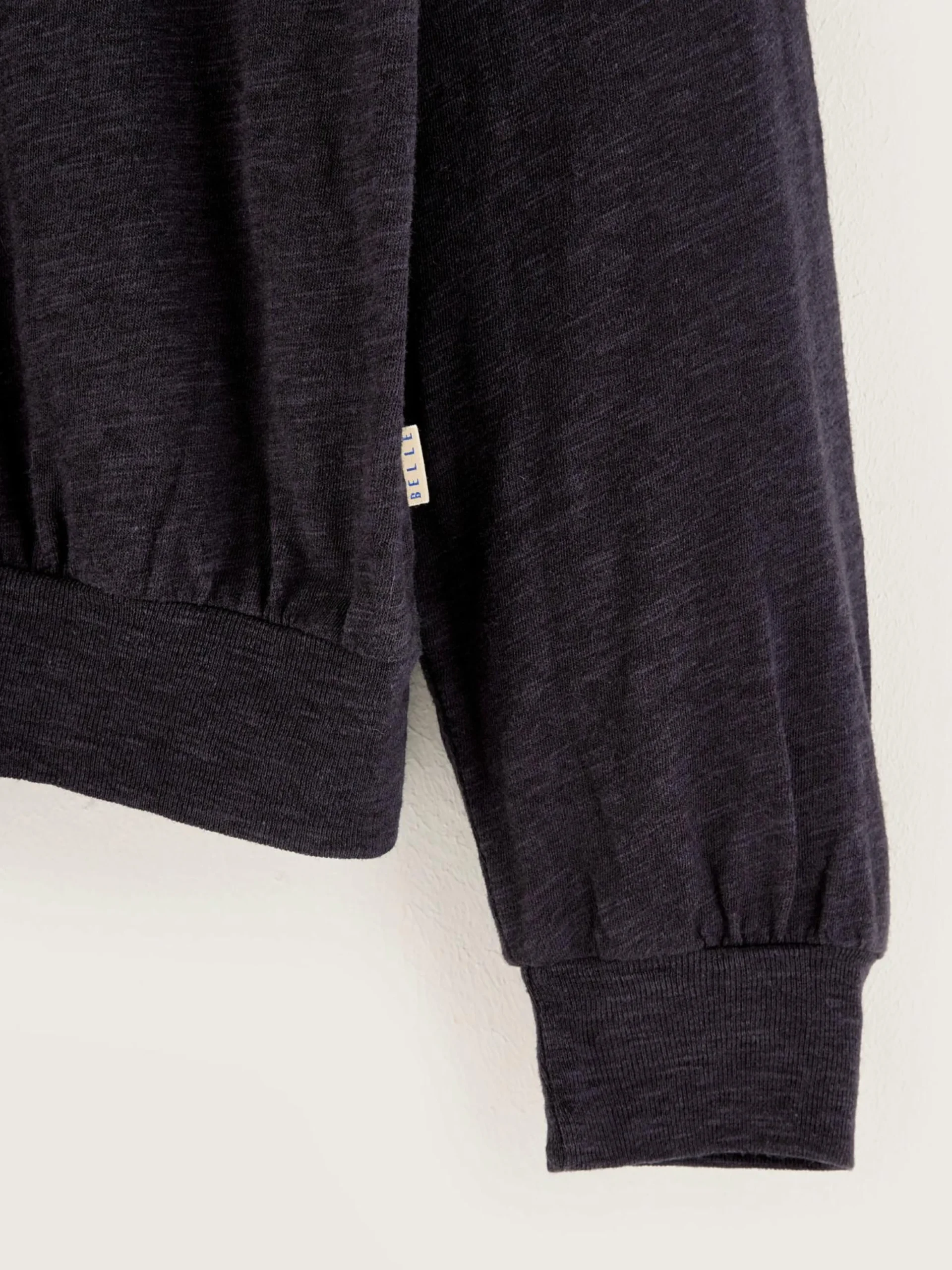 Marineblauw, comfortabel T-shirt met lange mouwen en een rolkraag.