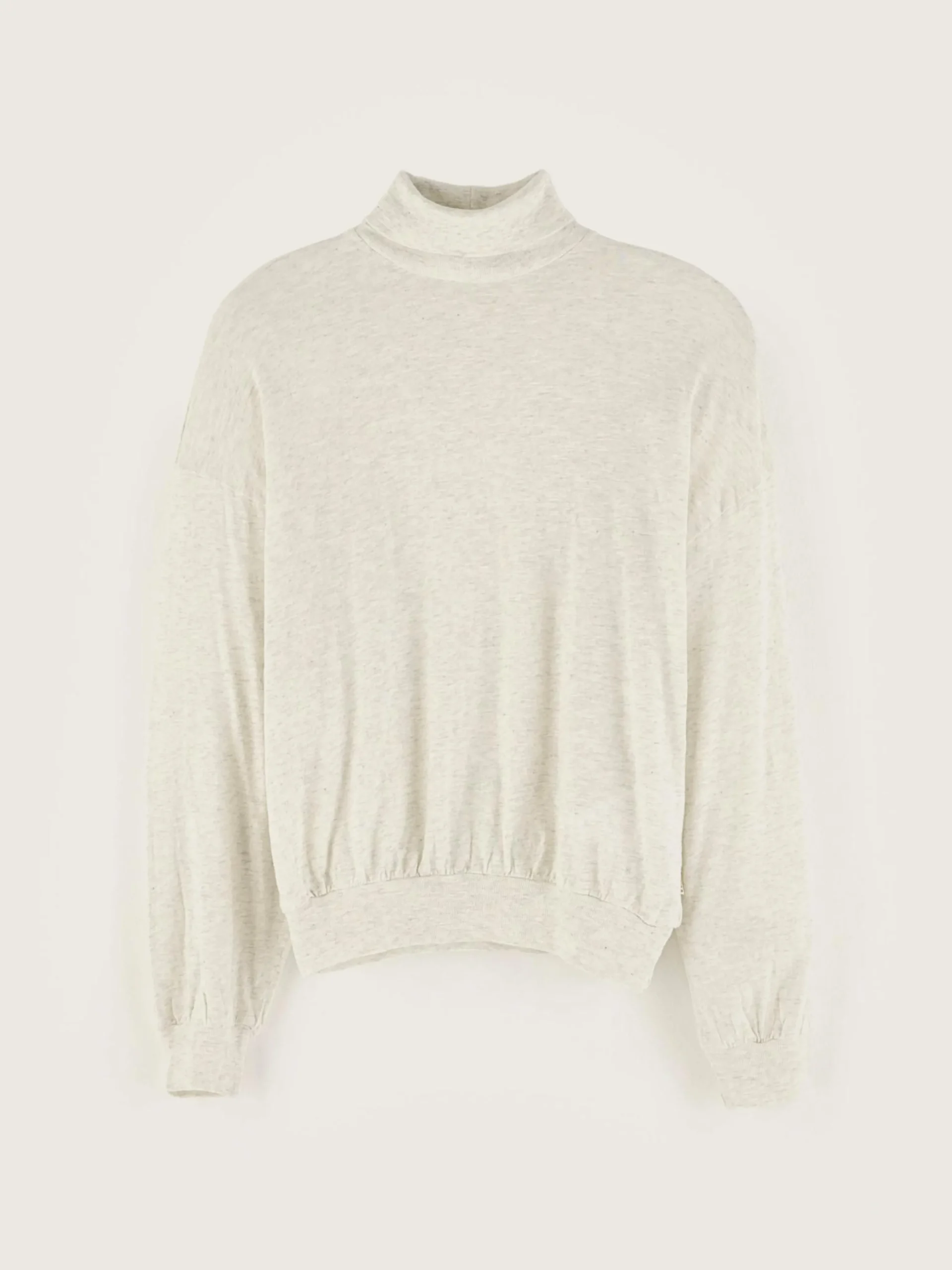 Oestergrijs, comfortabel T-shirt met lange mouwen en een rolkraag.