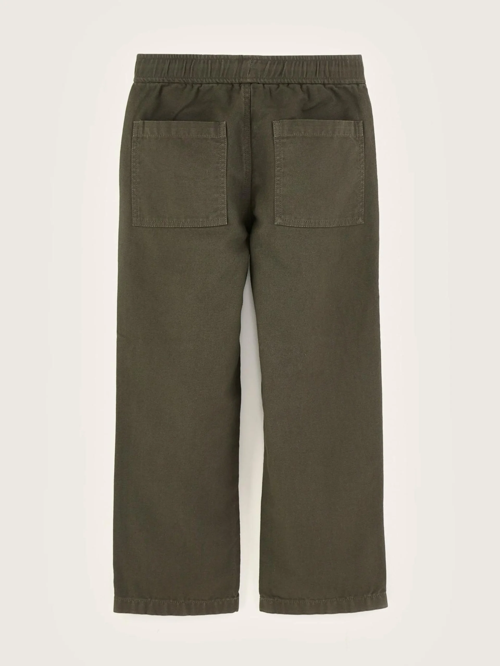 Relaxede, legergroene baggy broek met wijde pijpen en fatigue zakken, van katoencanvas.