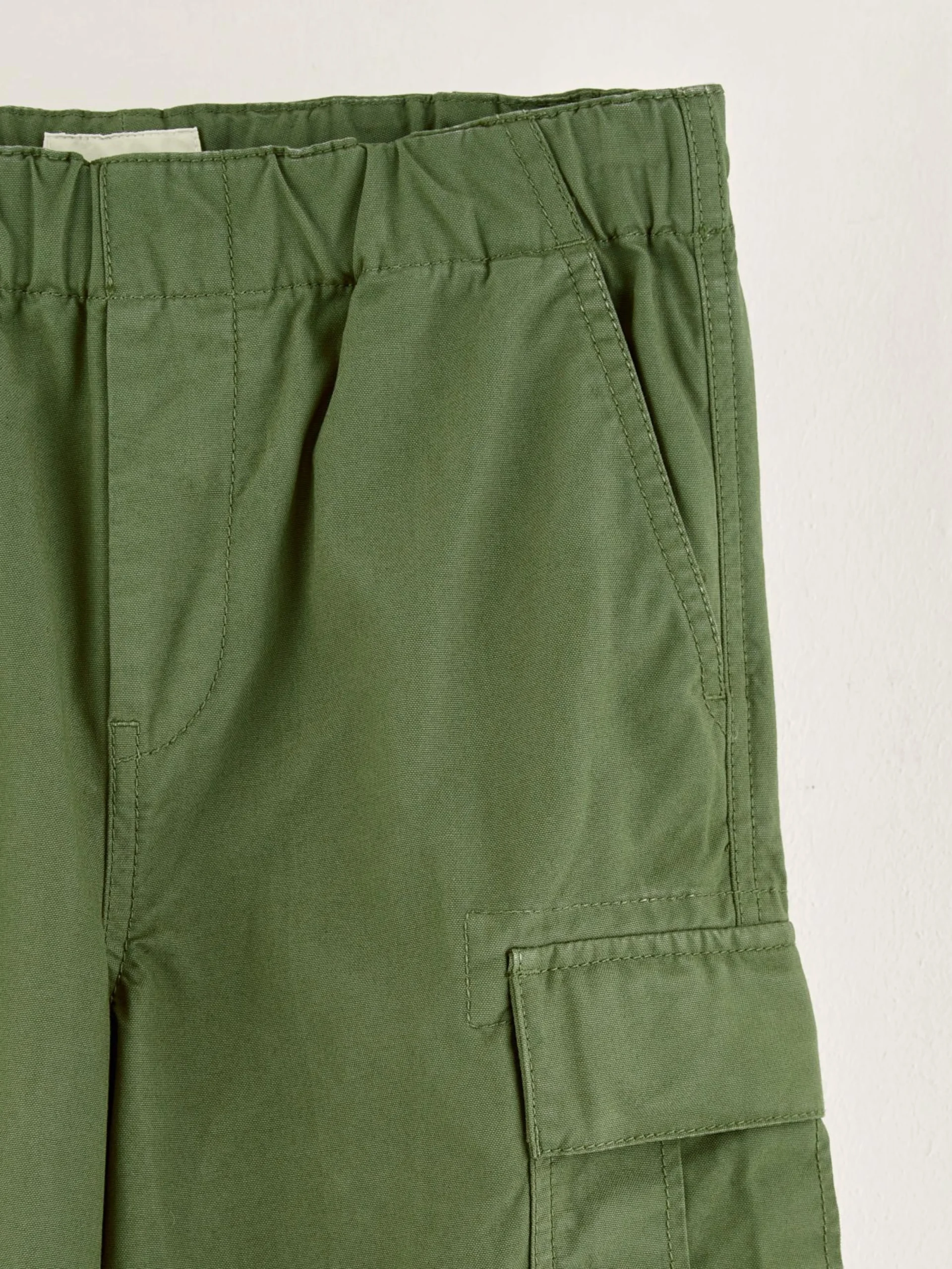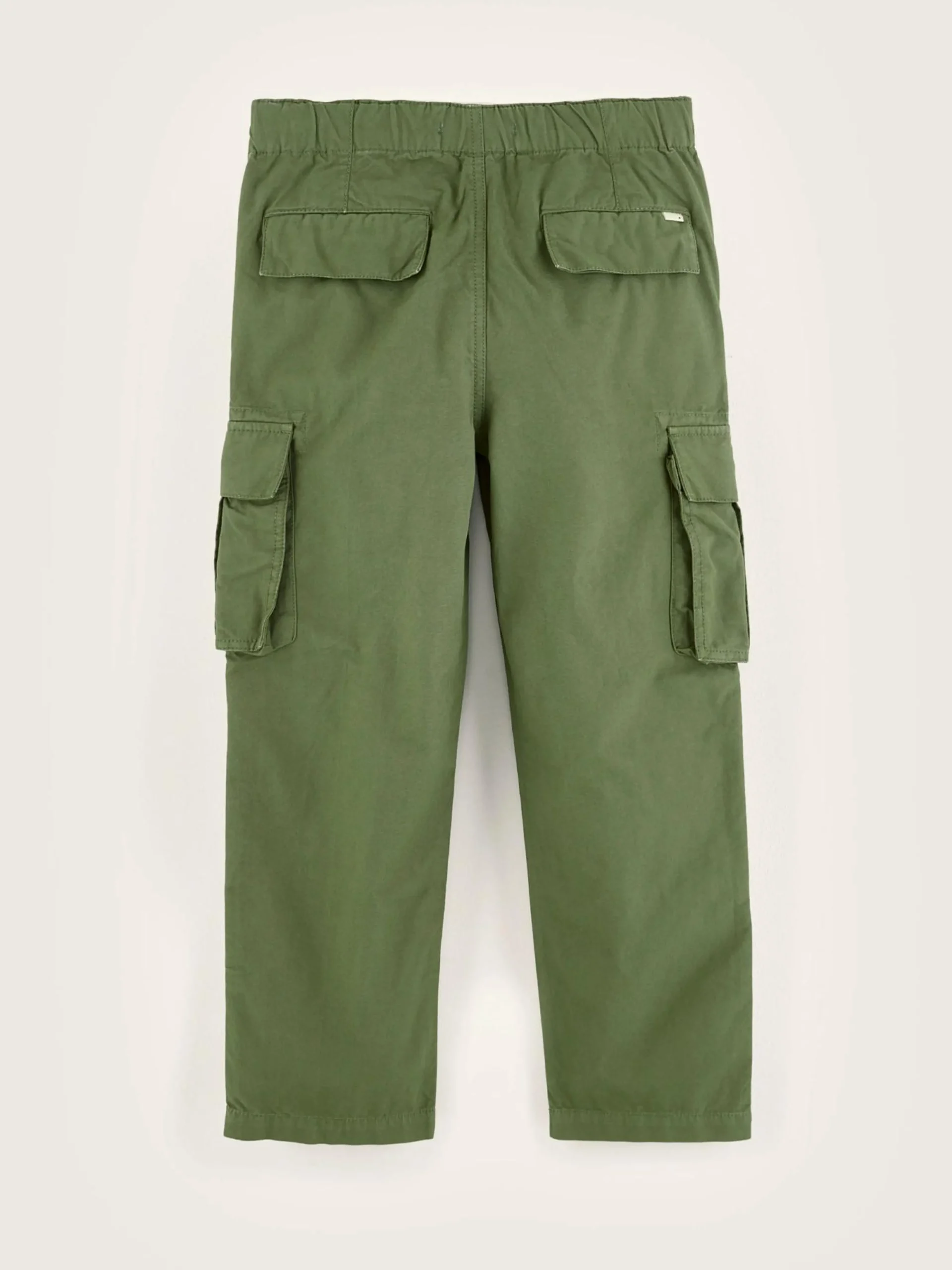 Relaxede kakigroene cargobroek met wijde pijpen, van ripstop katoen.
