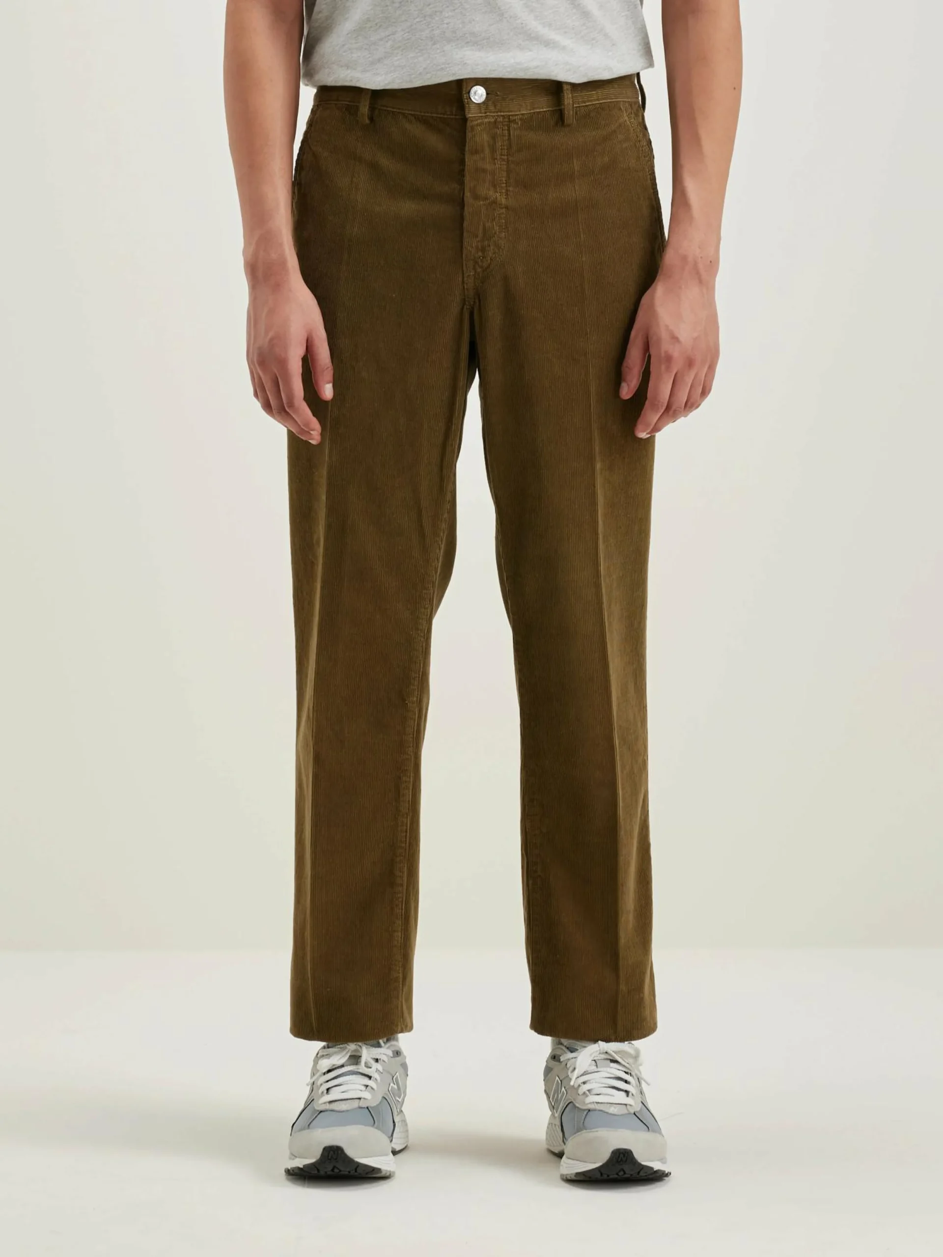 Regular fit, broek met rechte pijpen, van kakigroen baby corduroy katoen.