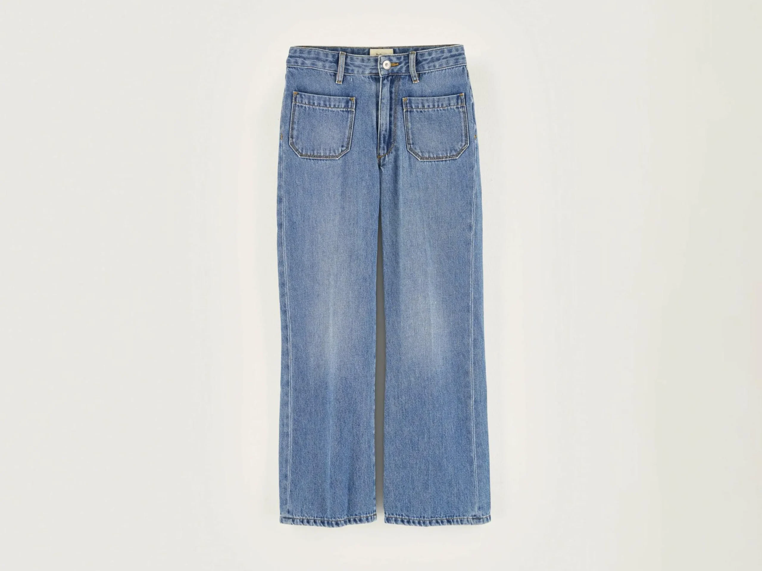 Flared jeans met een normale taille, in een bleached medium blauw denim.