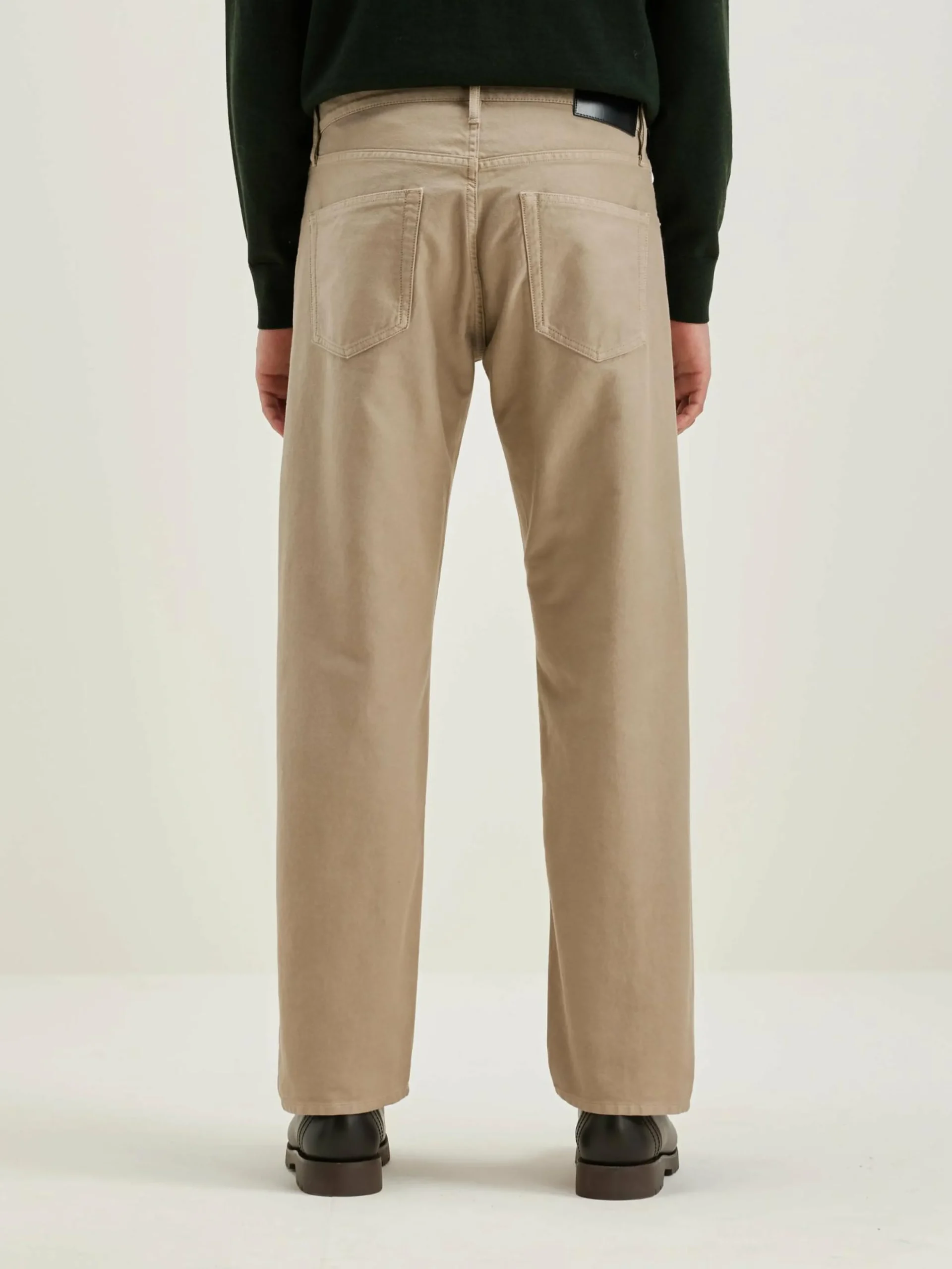 “Dad-style” broek met lage taille en rechte pijpen, in five-pocket uitvoering, van grijze katoen.