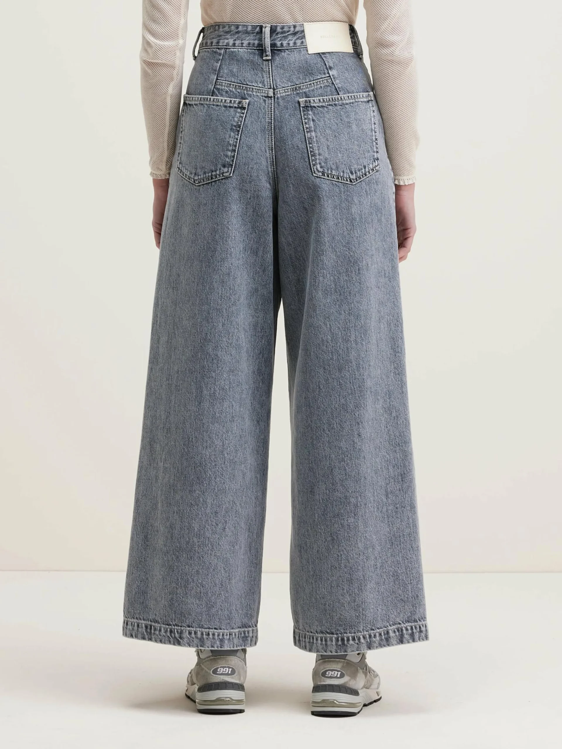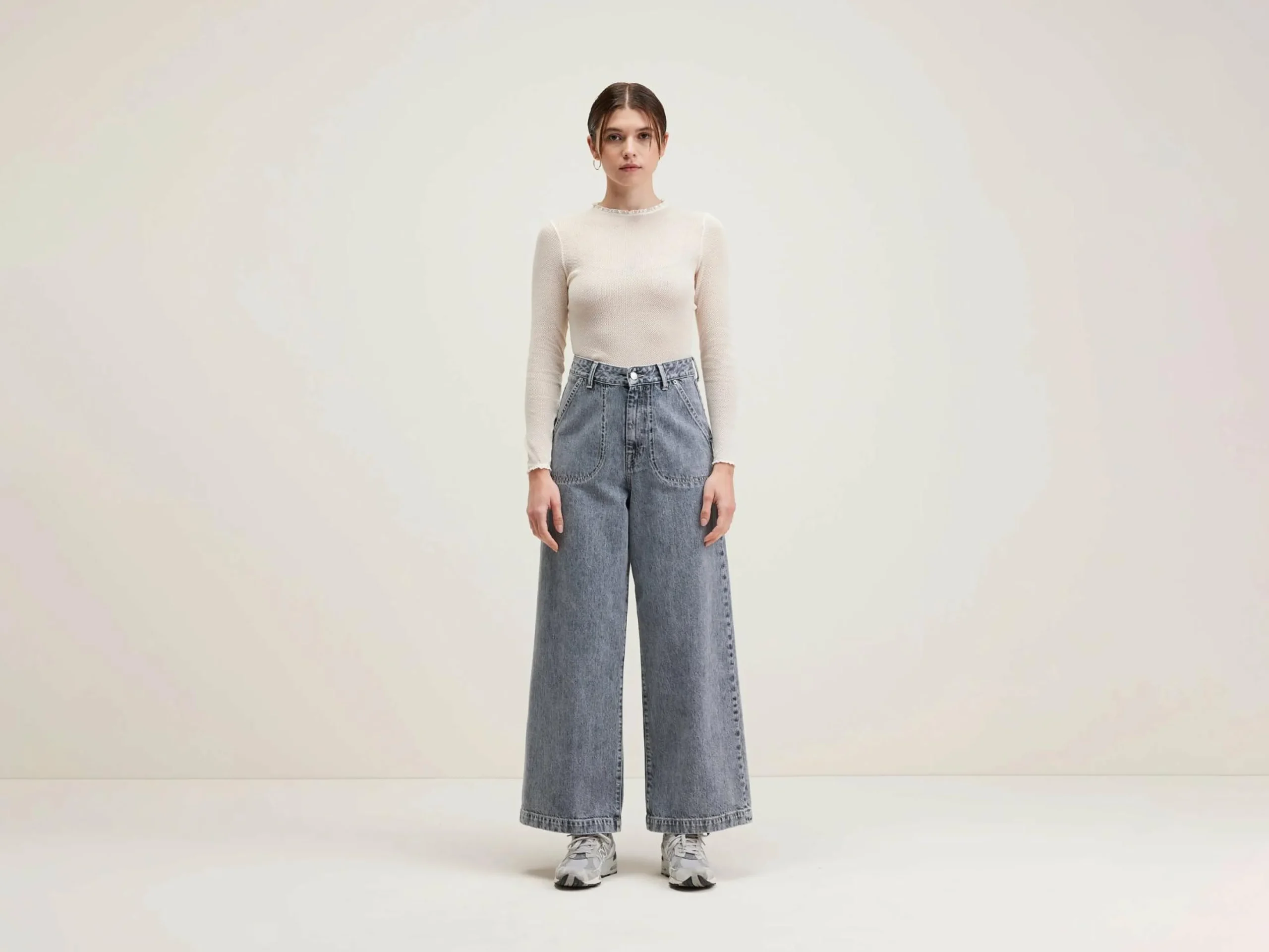 High-waist jeans met wijde pijpen, van katoendenim.