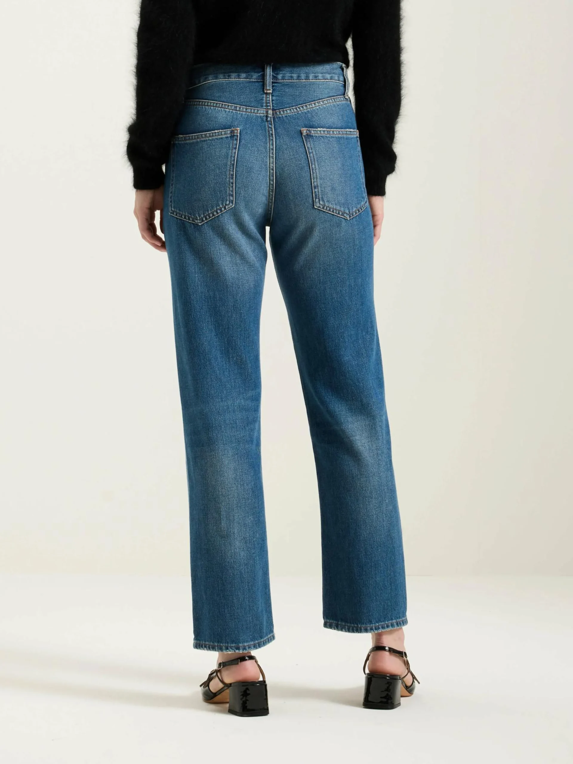 - Hoge taille, rechte cropped pijpen