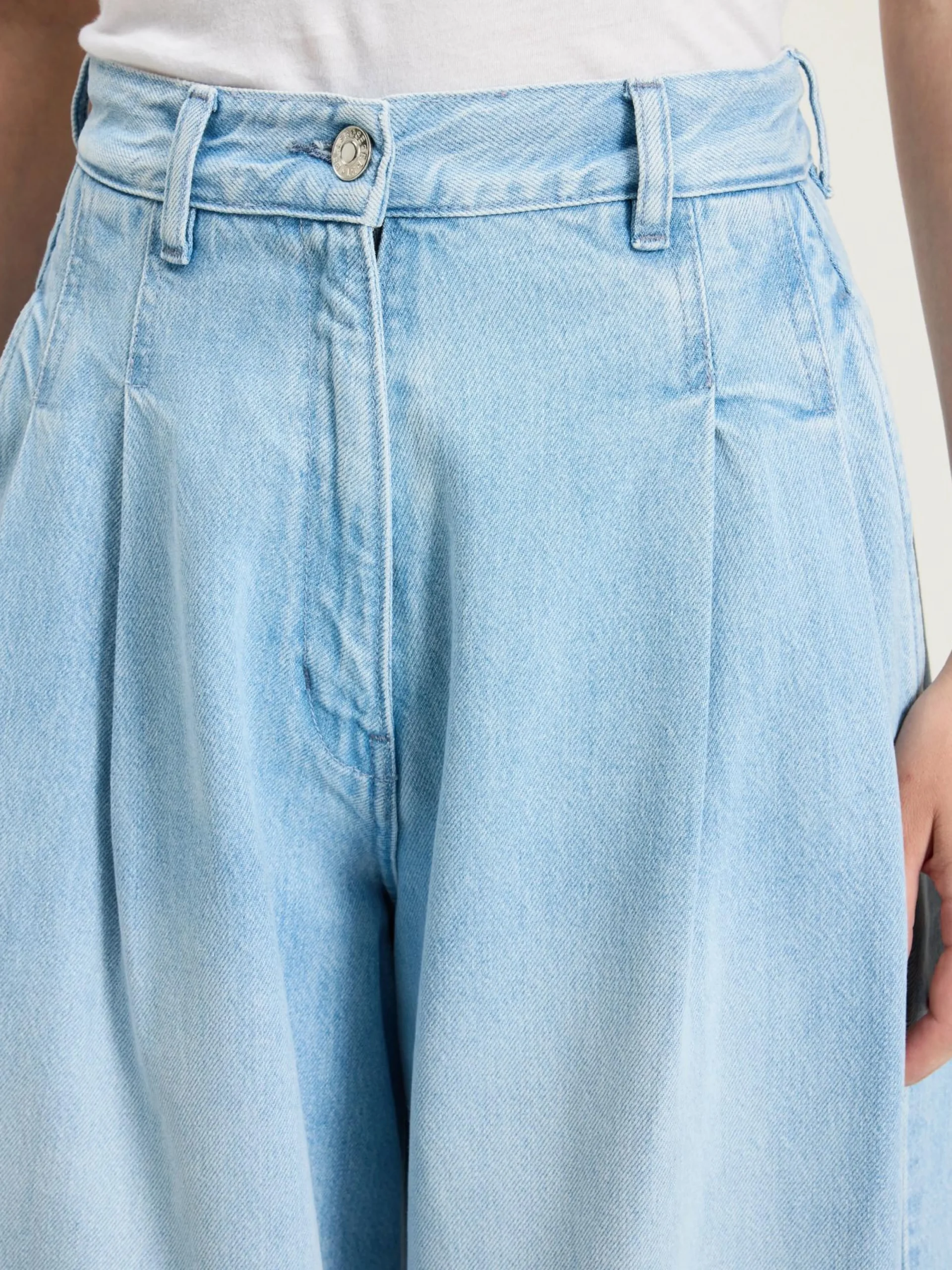 Geplooide jeans met hoge taille en super wijde pijpen in lichtblauw denim met een gedragen look, dat zacht en soepel aanvoelt.