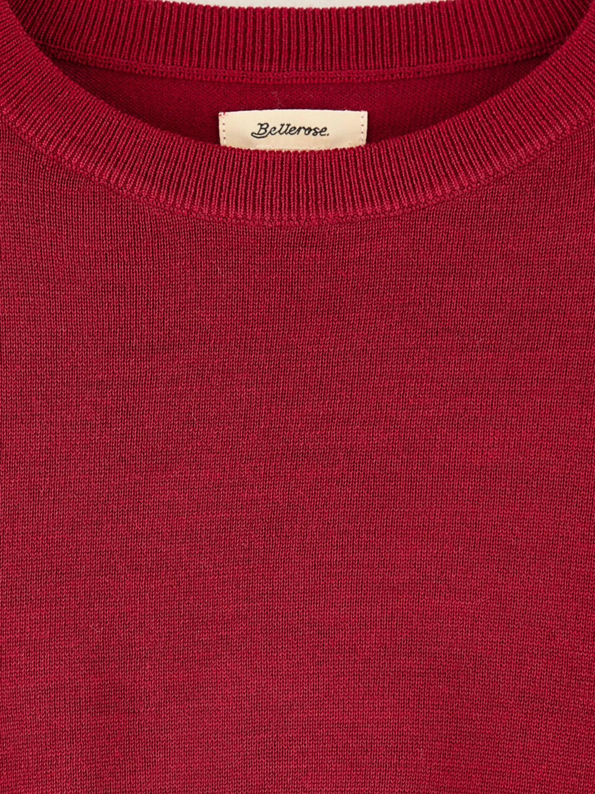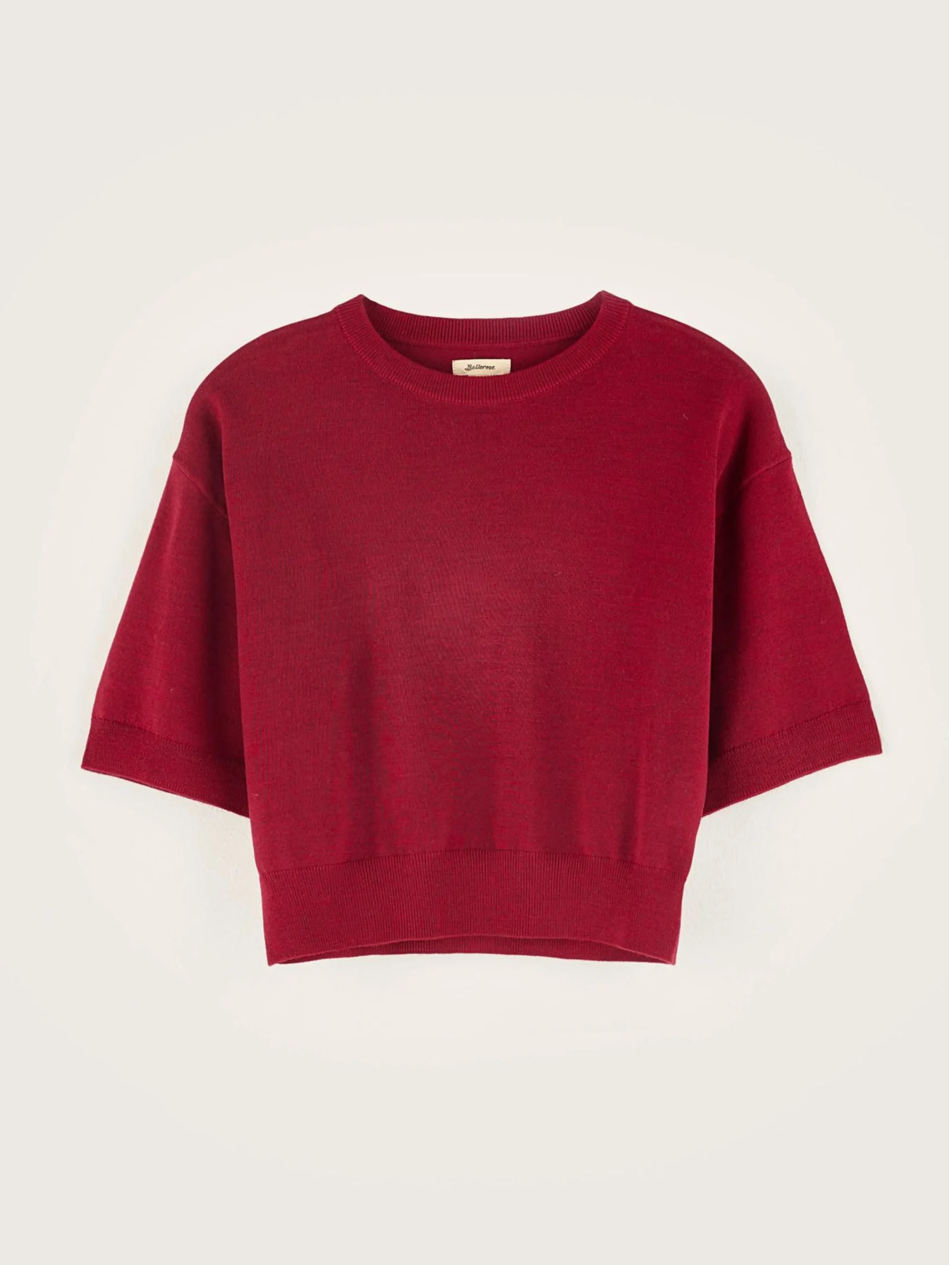 Wijnrode, cropped trui met korte mouwen, van merinowol.